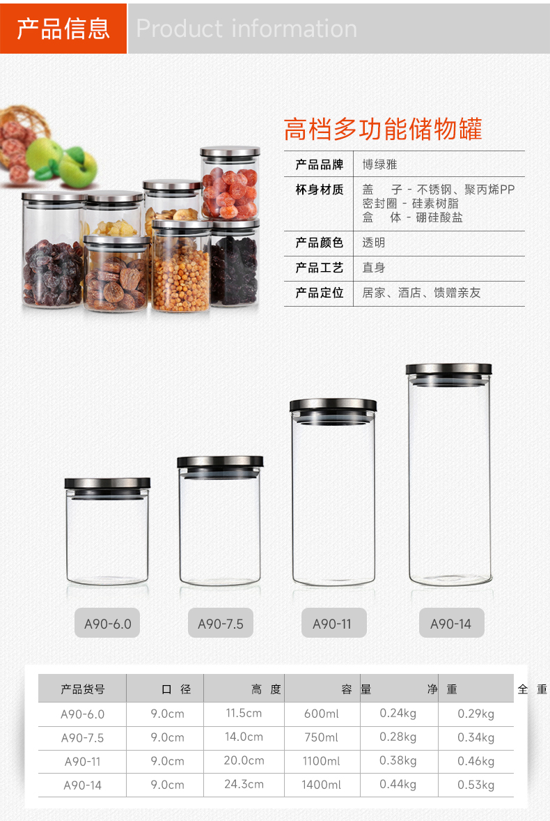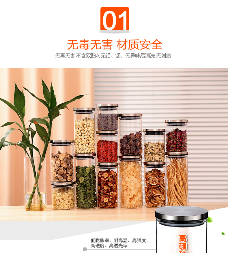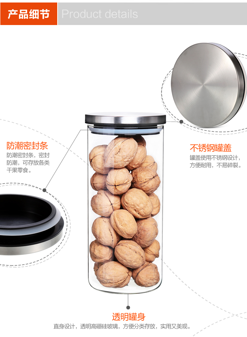 【高硼硅储物罐】不锈钢胶盖密封零食糖果坚果杂粮储藏罐耐热玻璃罐密封罐玻璃家用厨房带盖现代简约五谷罐防腐防潮不串味