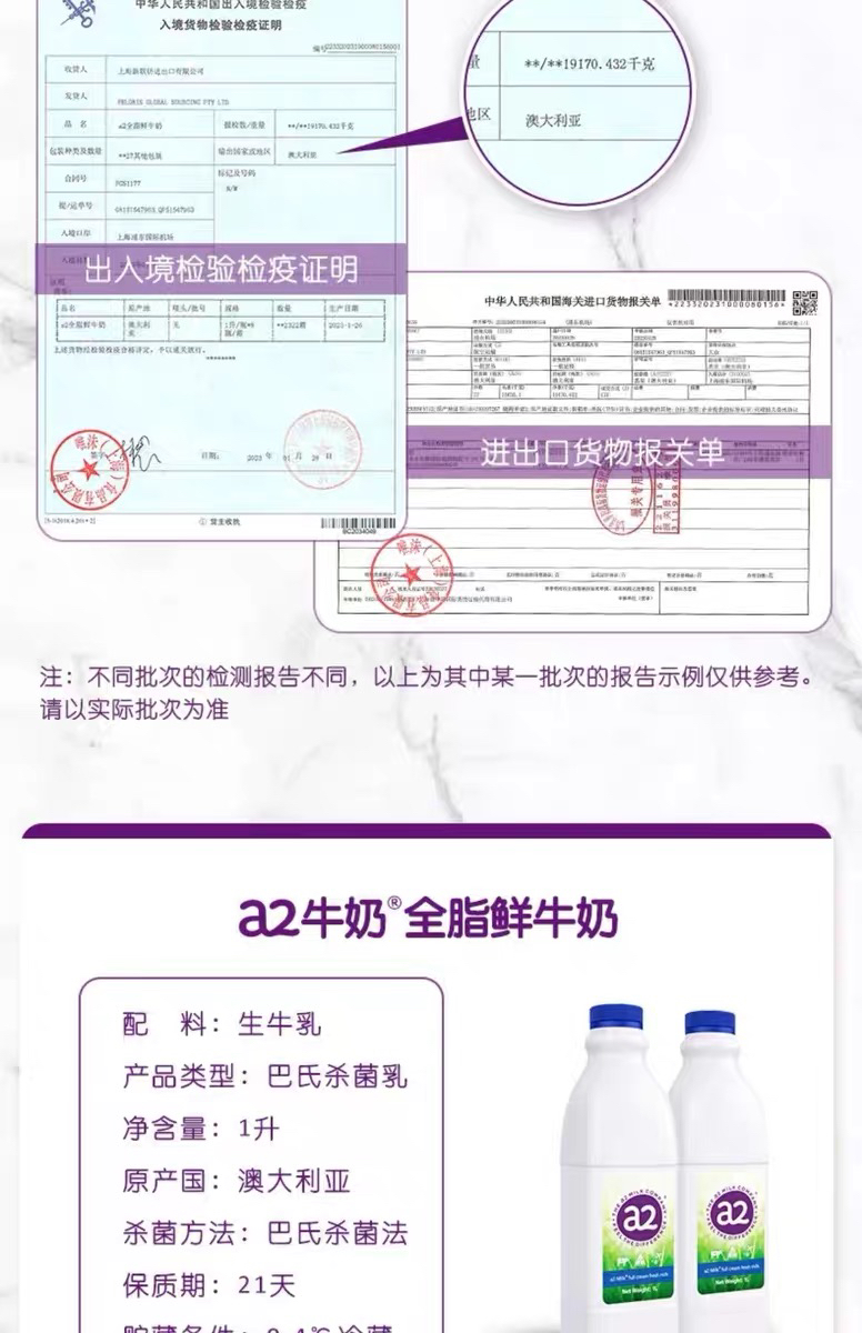 澳洲进口a2牛奶鲜牛奶低温全脂营养鲜奶儿童早餐奶*2瓶