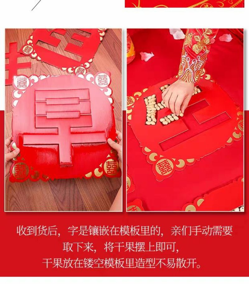 结婚婚庆用品早生贵子模具婚房婚床装饰创意模板男女方压床模型