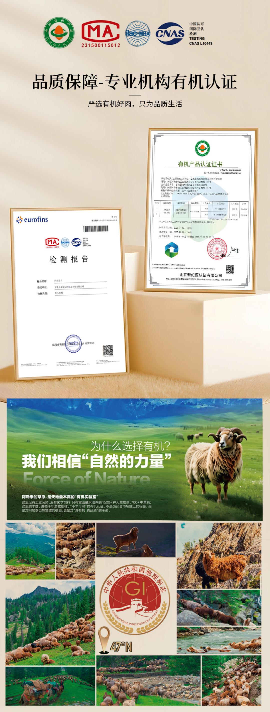 阿勒泰 有机散养羔羊 部位原切组合(4斤装)