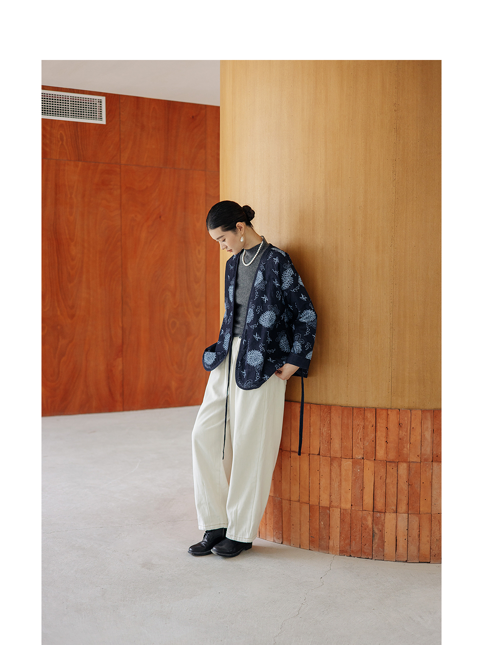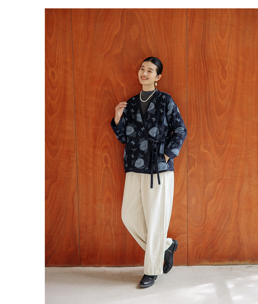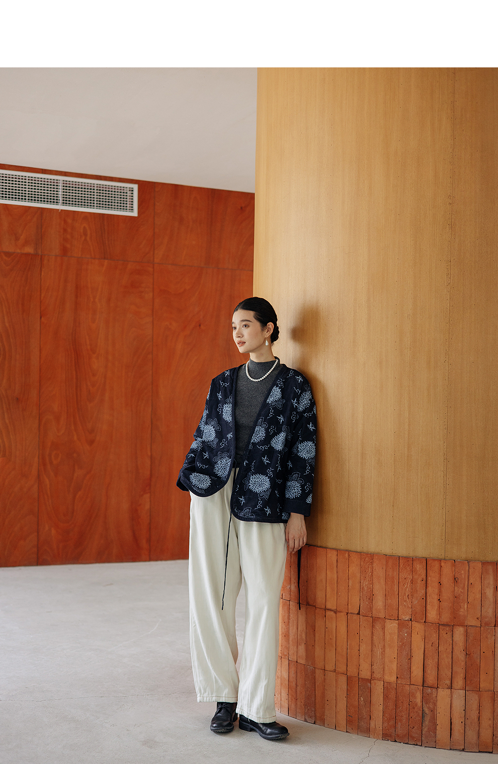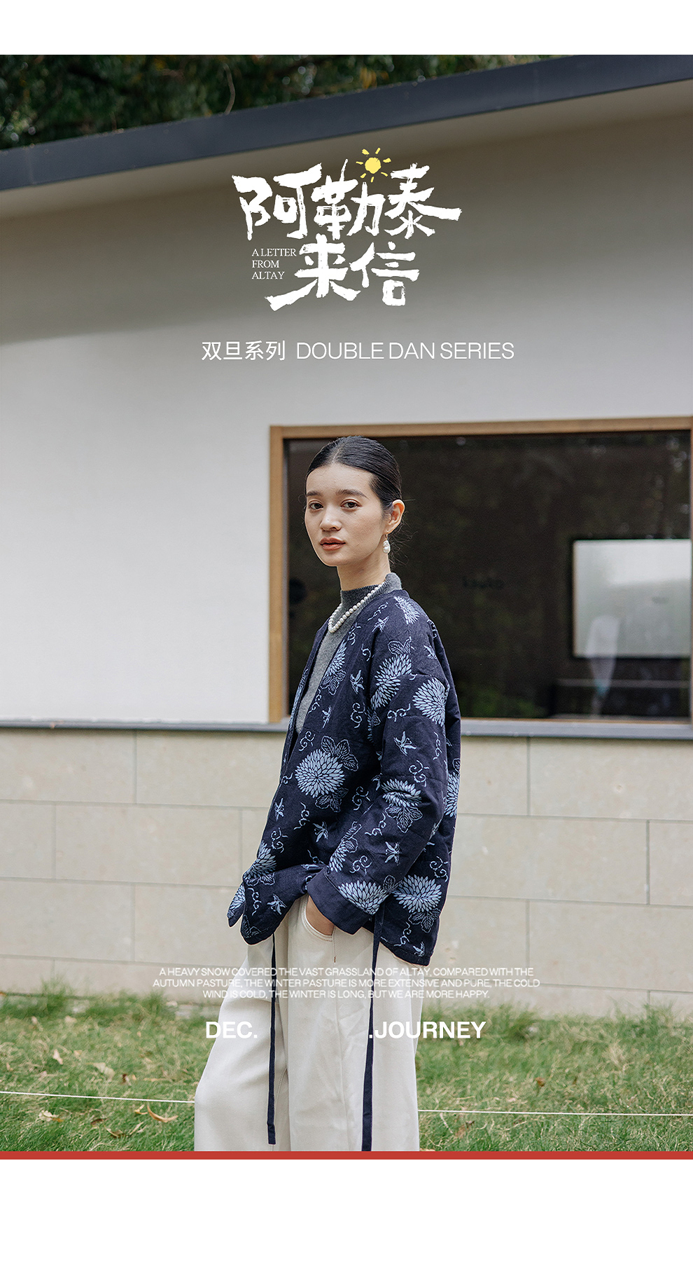 绽放850朵/轻古典中式风细条灯芯绒全棉印花v领夹棉短外套棉袄