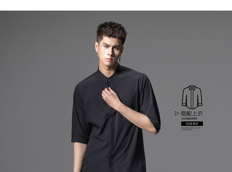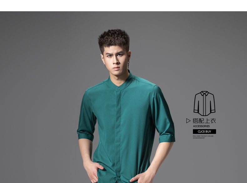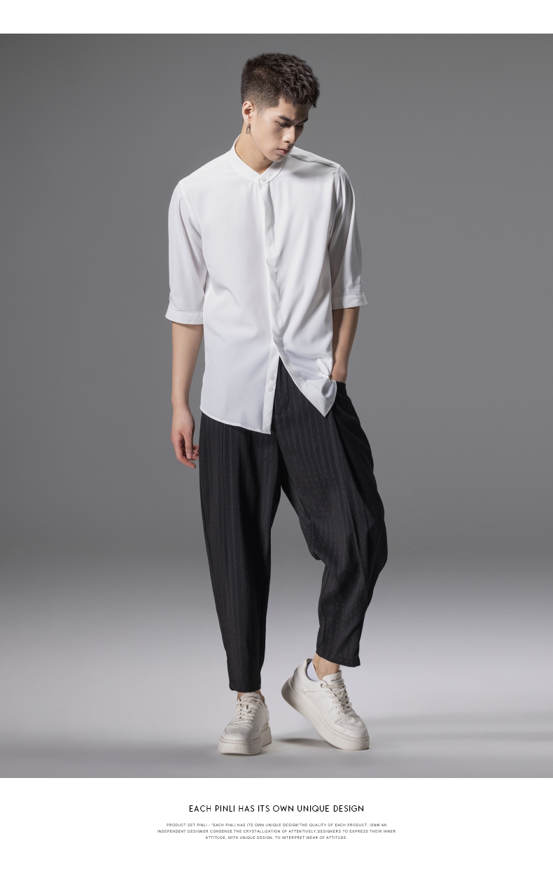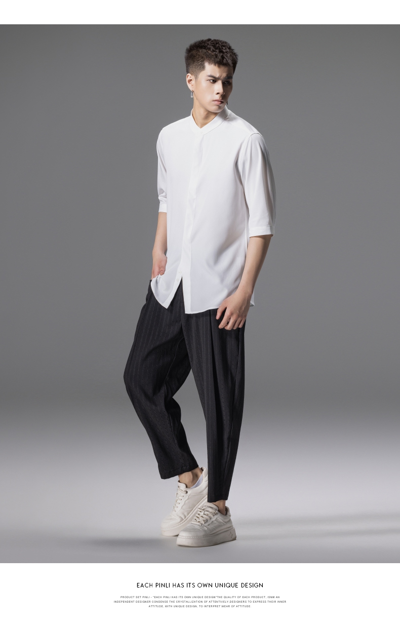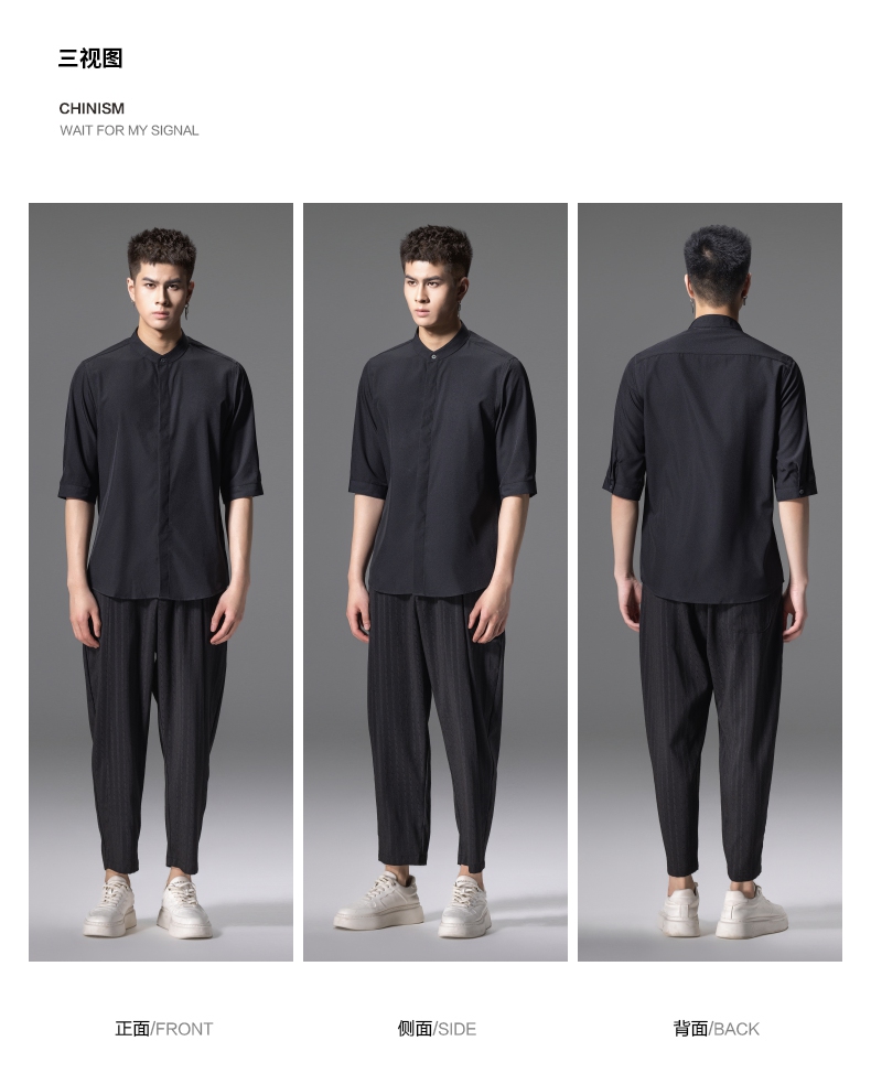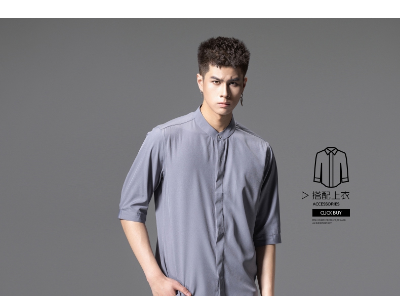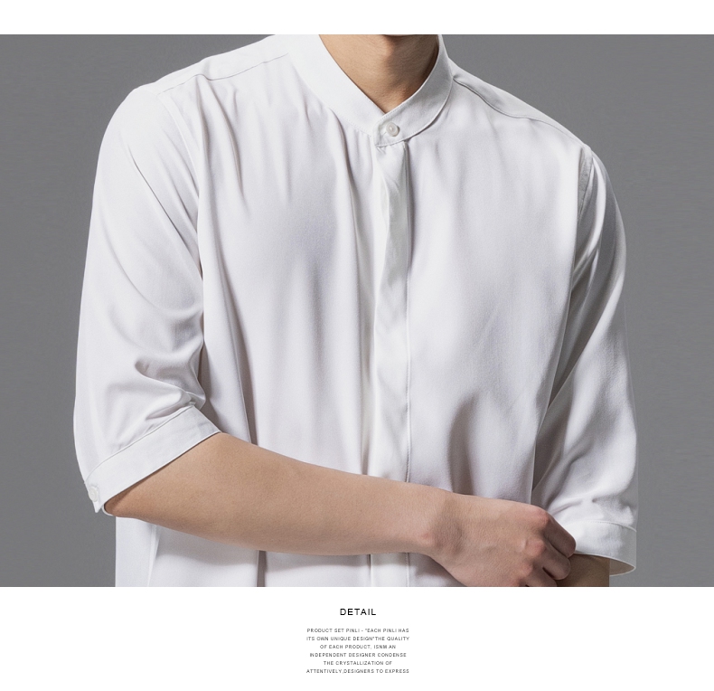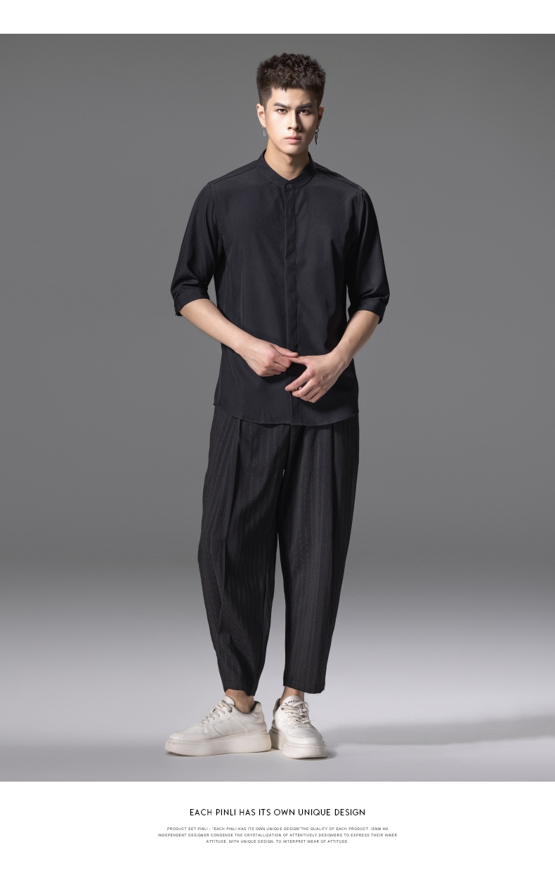 PINLI品立秋季新款纯色立领中袖衬衫男士免烫休闲五分袖衬衣GD242213296