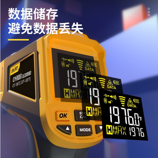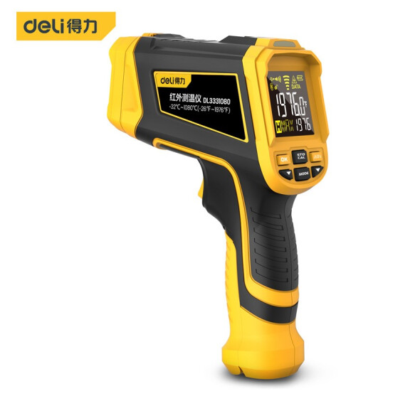 得力DL3331080红外测温仪彩屏-32℃~1080℃(黄)