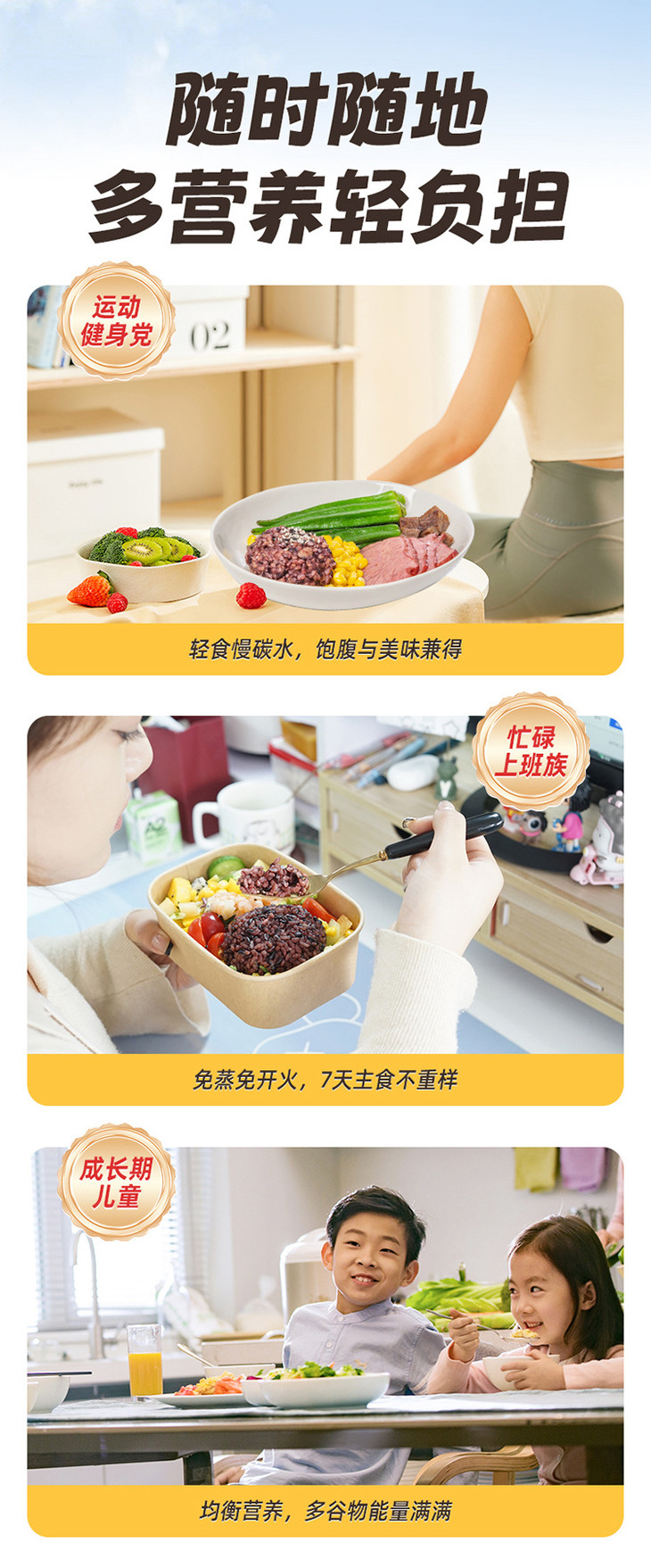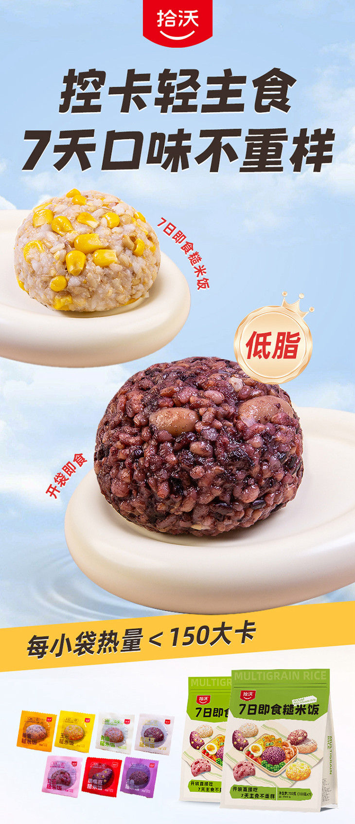 拾沃又来啦!他家的扁粮和免泡七色糙米饭,我都超爱,是已经按配比搭好的,直接煮,方便还好吃!现在更卷了,又有了7日即食糙米饭,连煮的步骤都省了,开袋即食!当然,喜欢热热糯糯,可以直接微波炉叮个一分钟,还可以用来炒饭,煮粥,几分钟搞定,真是懒人的饭了!减脂人更需要,每团都标了卡路里,太好算了,加上鸡蛋瘦肉和蔬菜就是完美的快手餐!