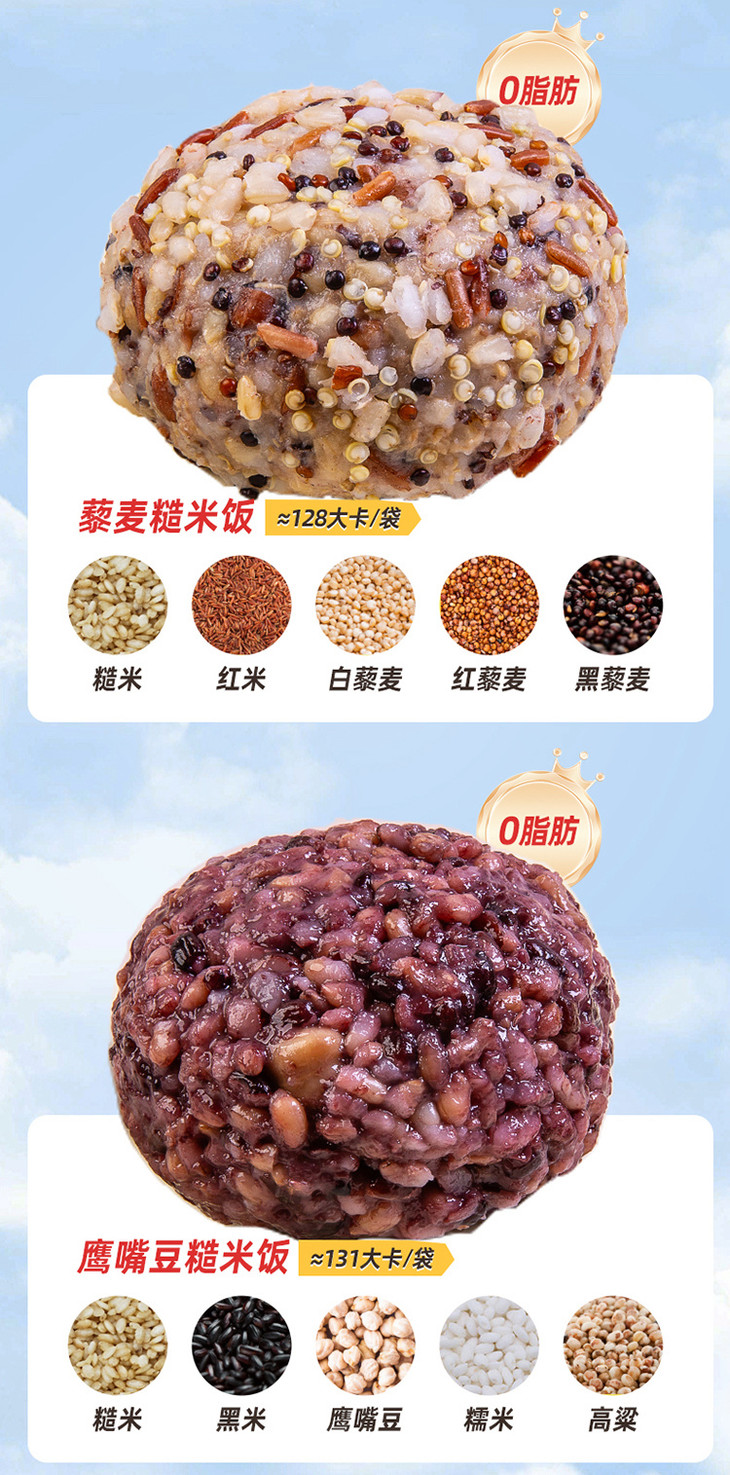 即食糙米饭,袋袋都是独立包装,不论是上班、出差、旅行,带上它替代精制白米面,直接吃就已经很不错,但更推荐拆袋后用微波炉加热,1分钟搞定,谷香四溢,口感好很多,让减脂更轻松!玉米清甜爽脆,藜麦青稞Q弹,鹰嘴豆微甜豆香,红豆软糯回甘...像最硬的鹰嘴豆、芸豆,都像高压锅压出来一样,沙沙软软的!再加上食材丰富,糙米黑米红米等增添不少谷物香气,比寡淡的白米饭更香甜健康!