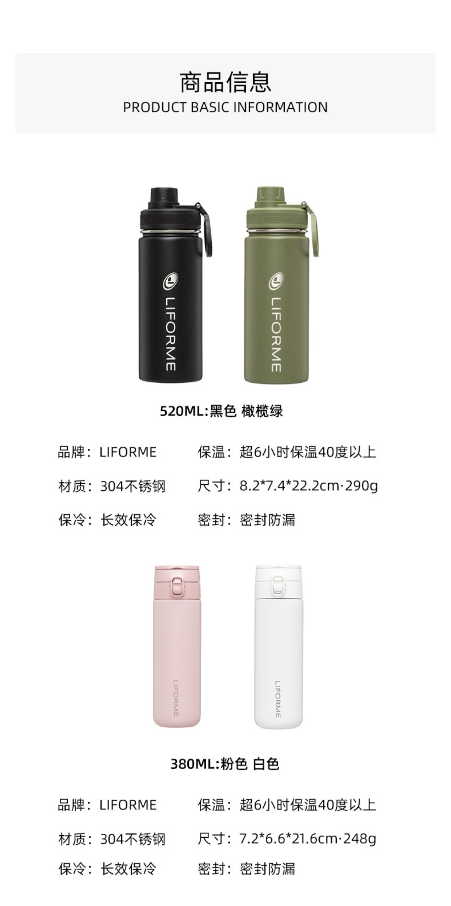 LIFORME 运动水杯 不锈钢