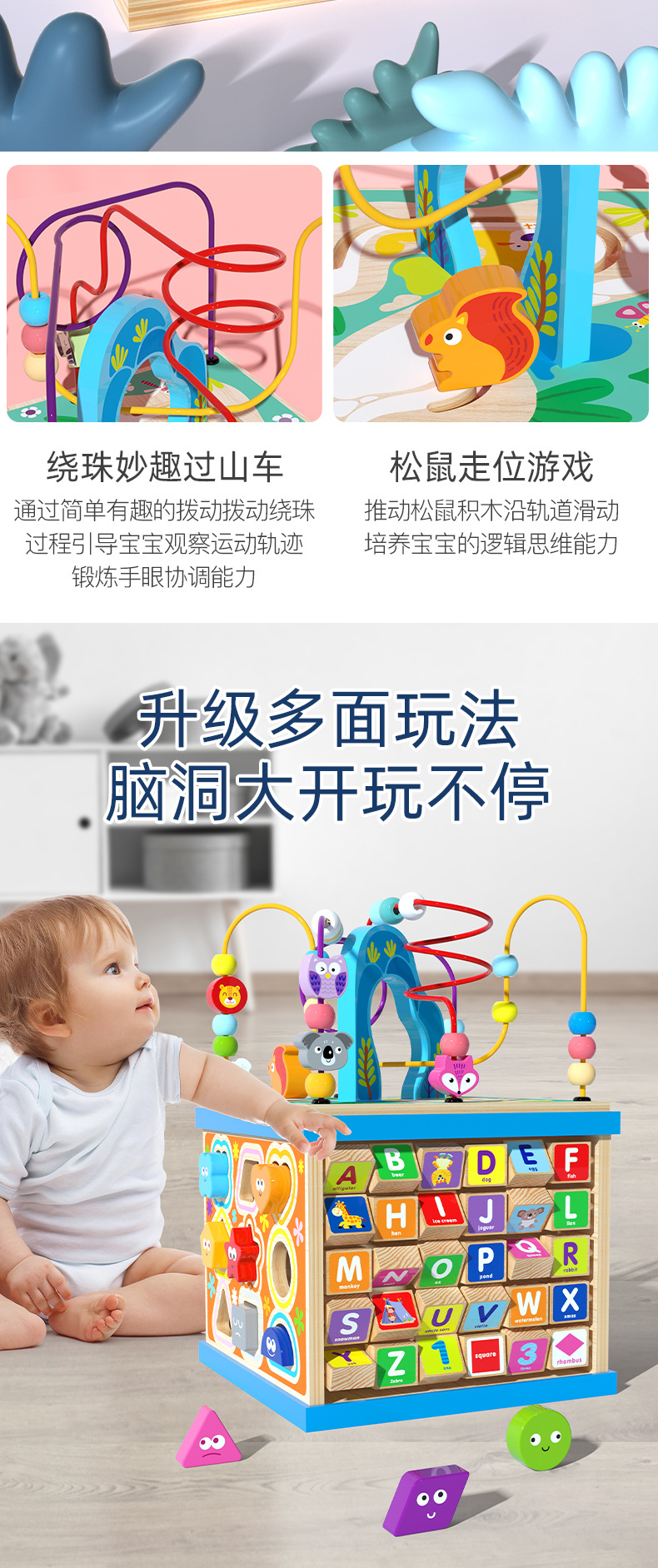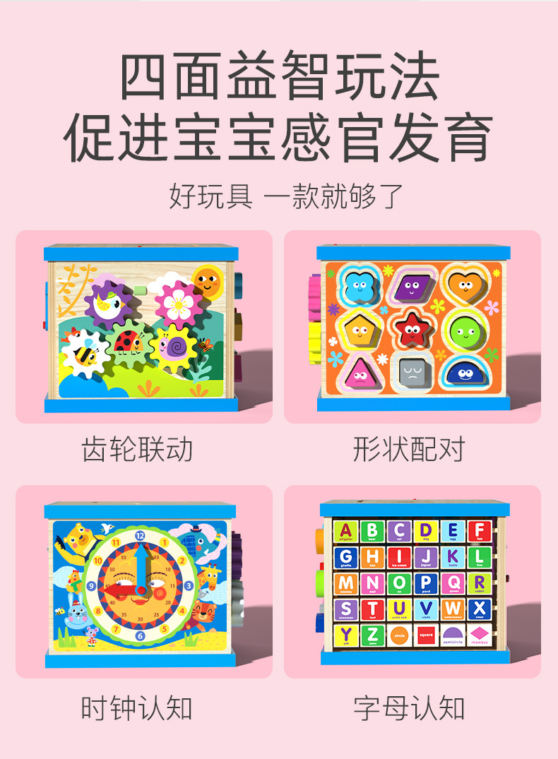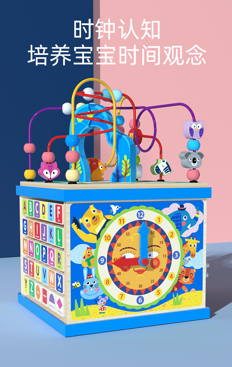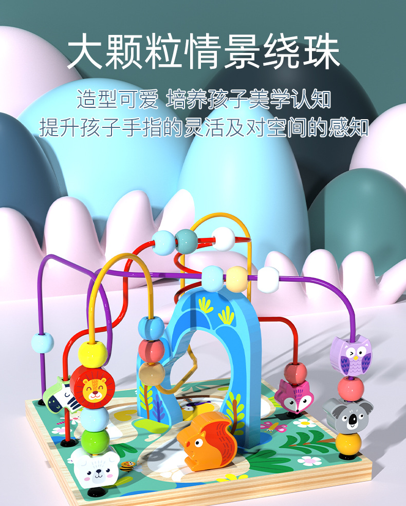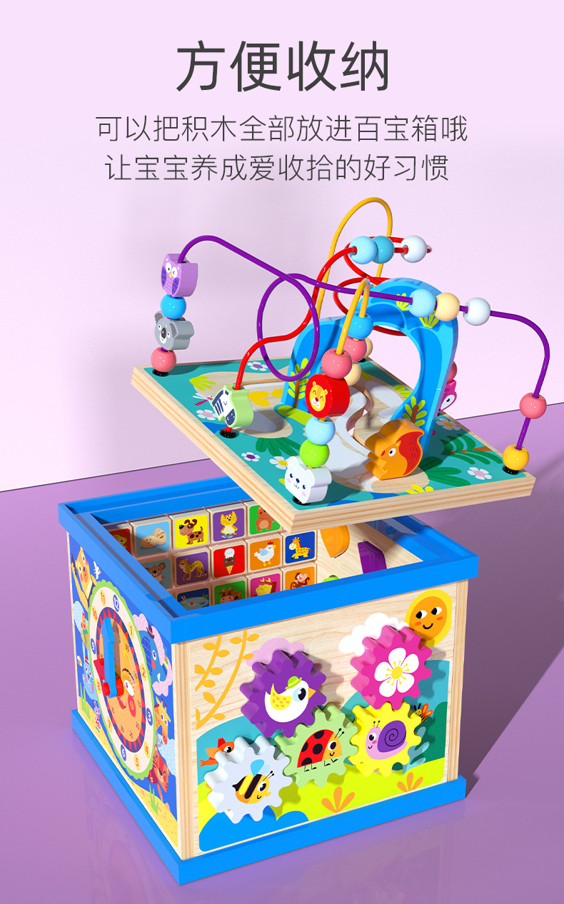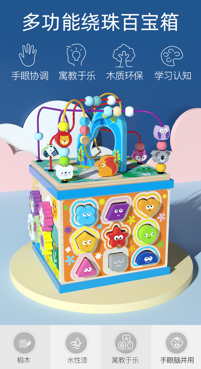 儿童木制大号多功能益智大绕珠百宝箱早教智力配对场景智力盒玩具
