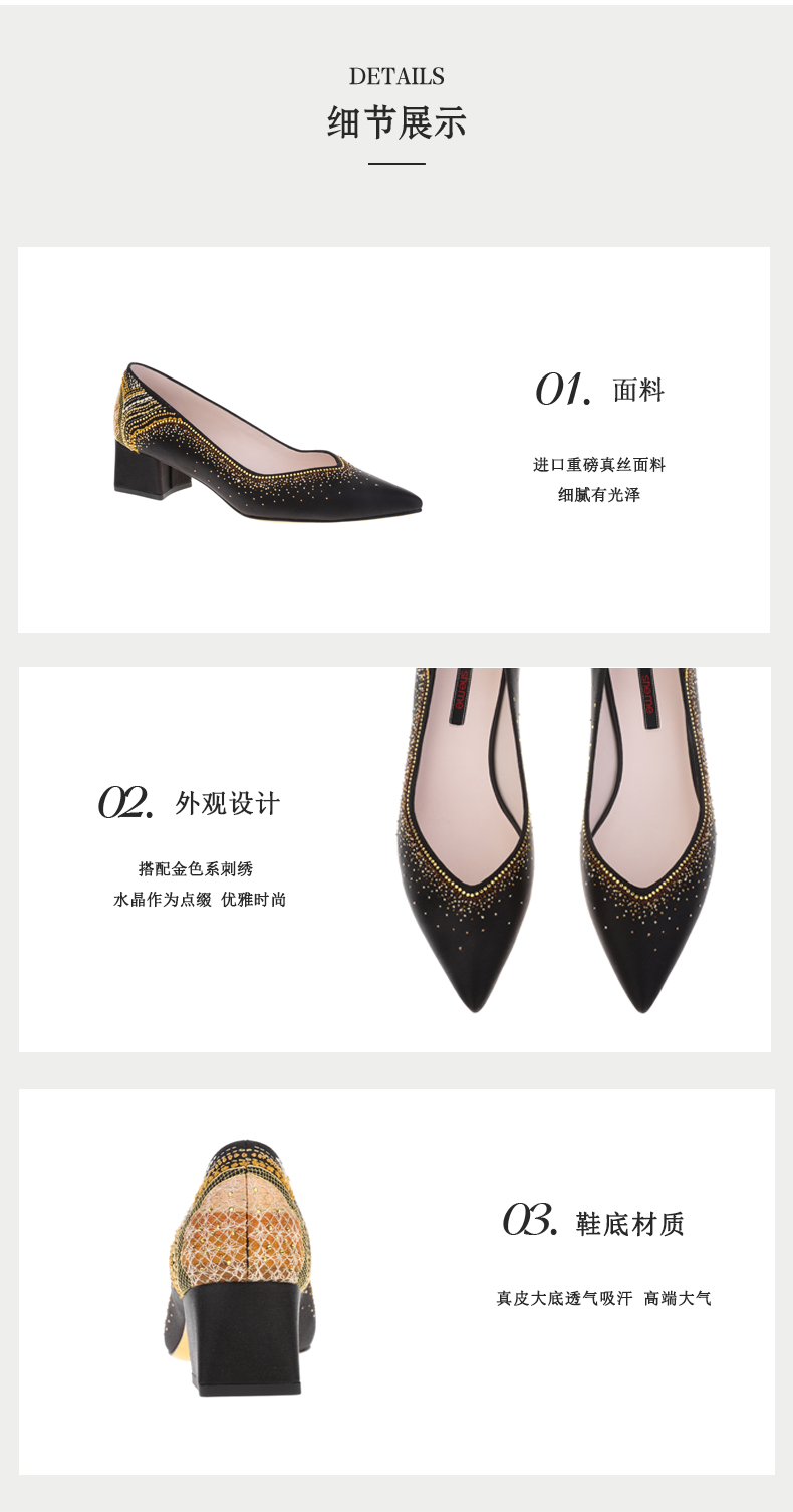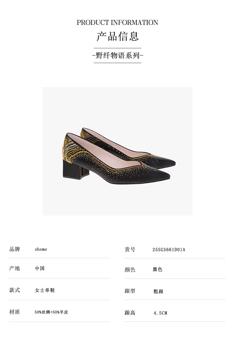 sheme野纤物语系列重磅真丝刺绣水晶点缀优雅时尚中跟女士单鞋可定制