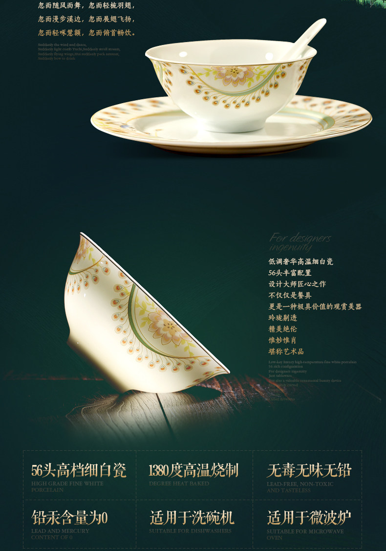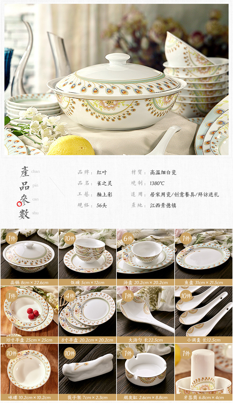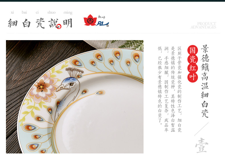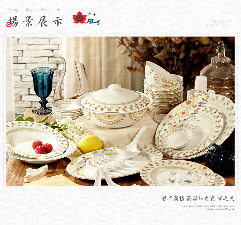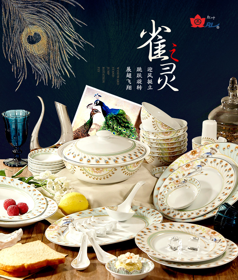 景德镇陶瓷 国瓷红叶 36头富贵海棠中餐具