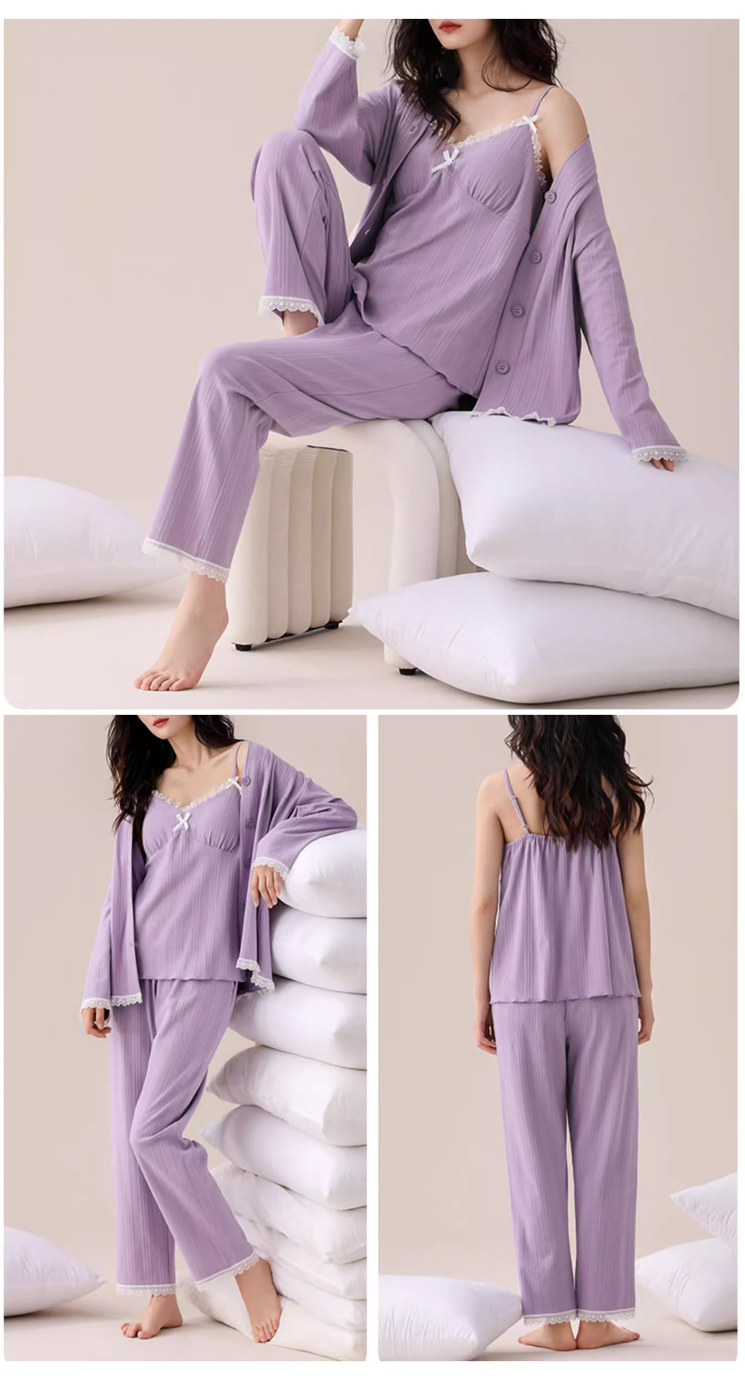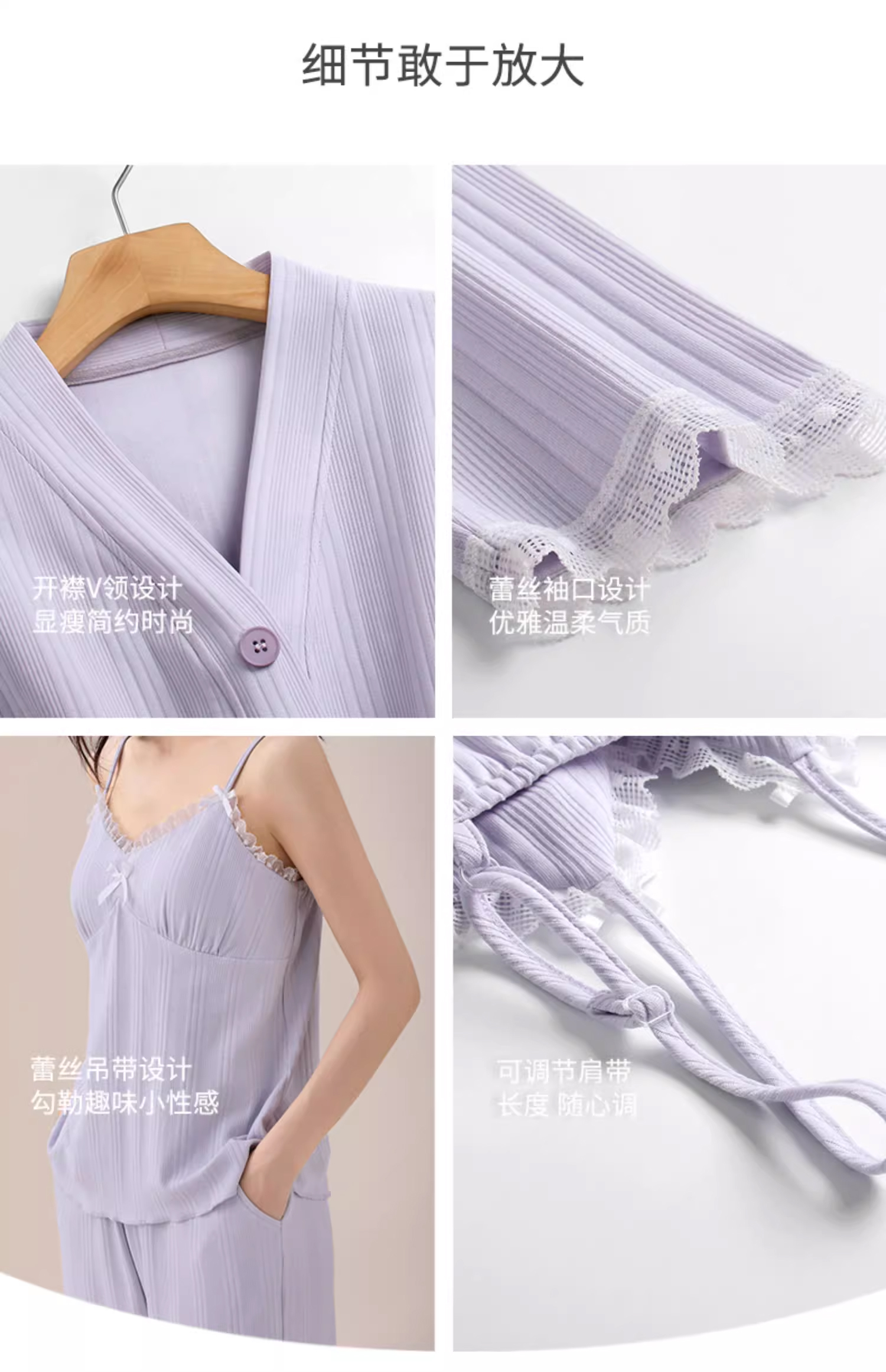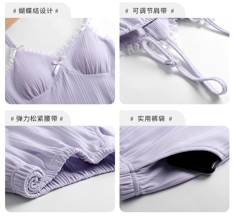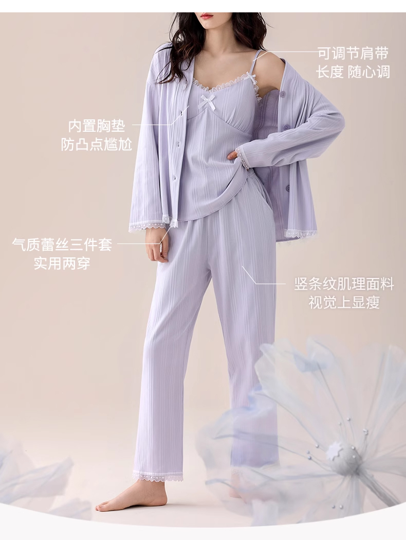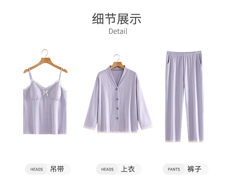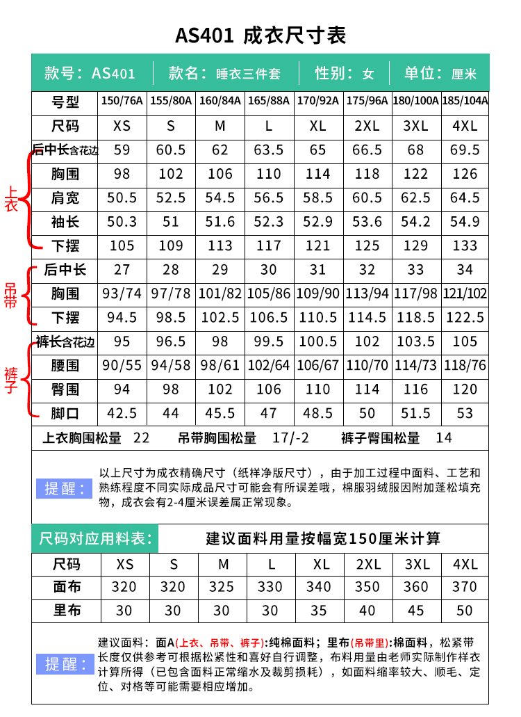 裁缝学苑AS401带胸垫吊带长袖长裤三件套家居服纸样女装睡衣样板