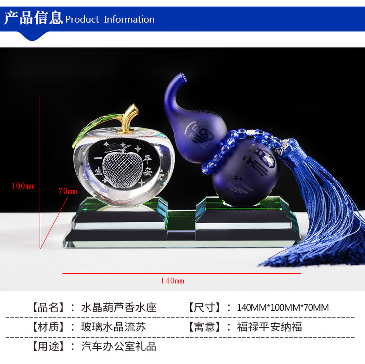 【汽车用品】水晶葫芦汽车香水座 车载香水 苹果葫芦摆件汽车摆件创意汽车用品