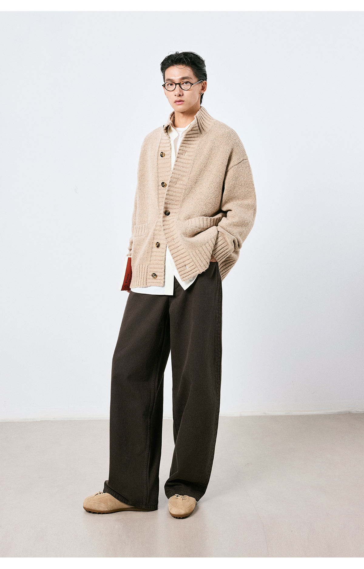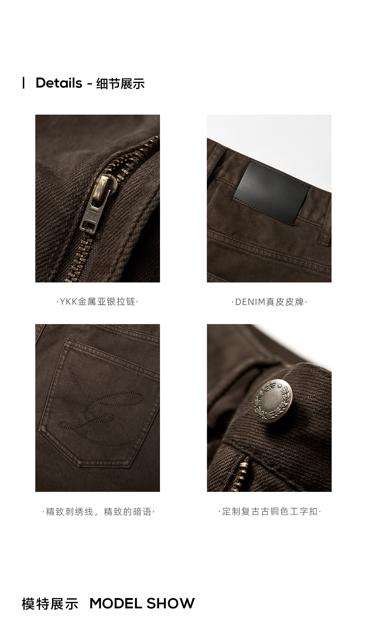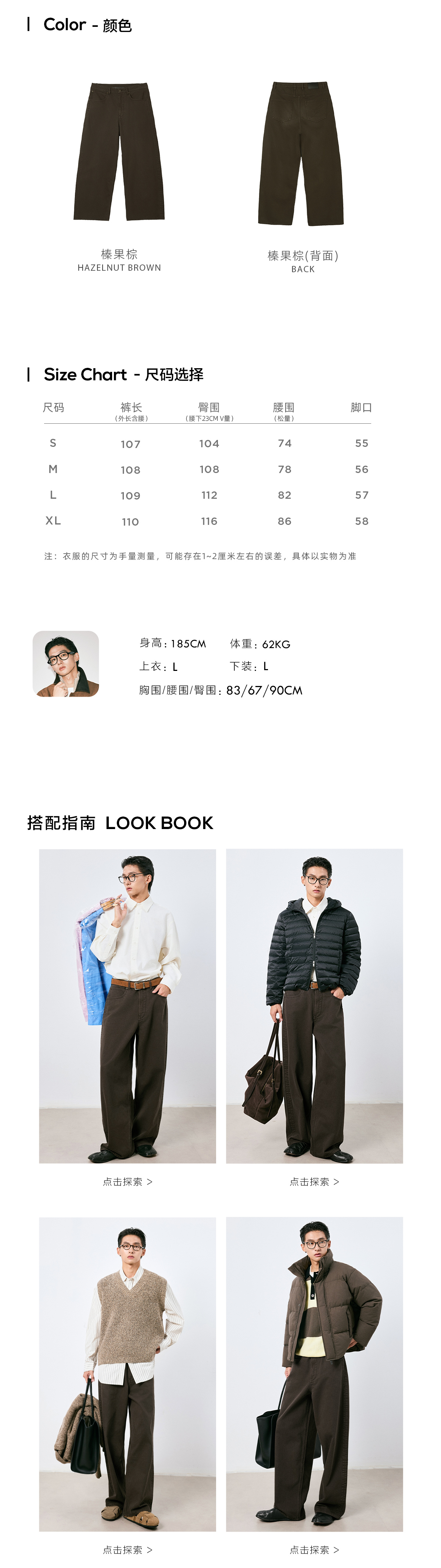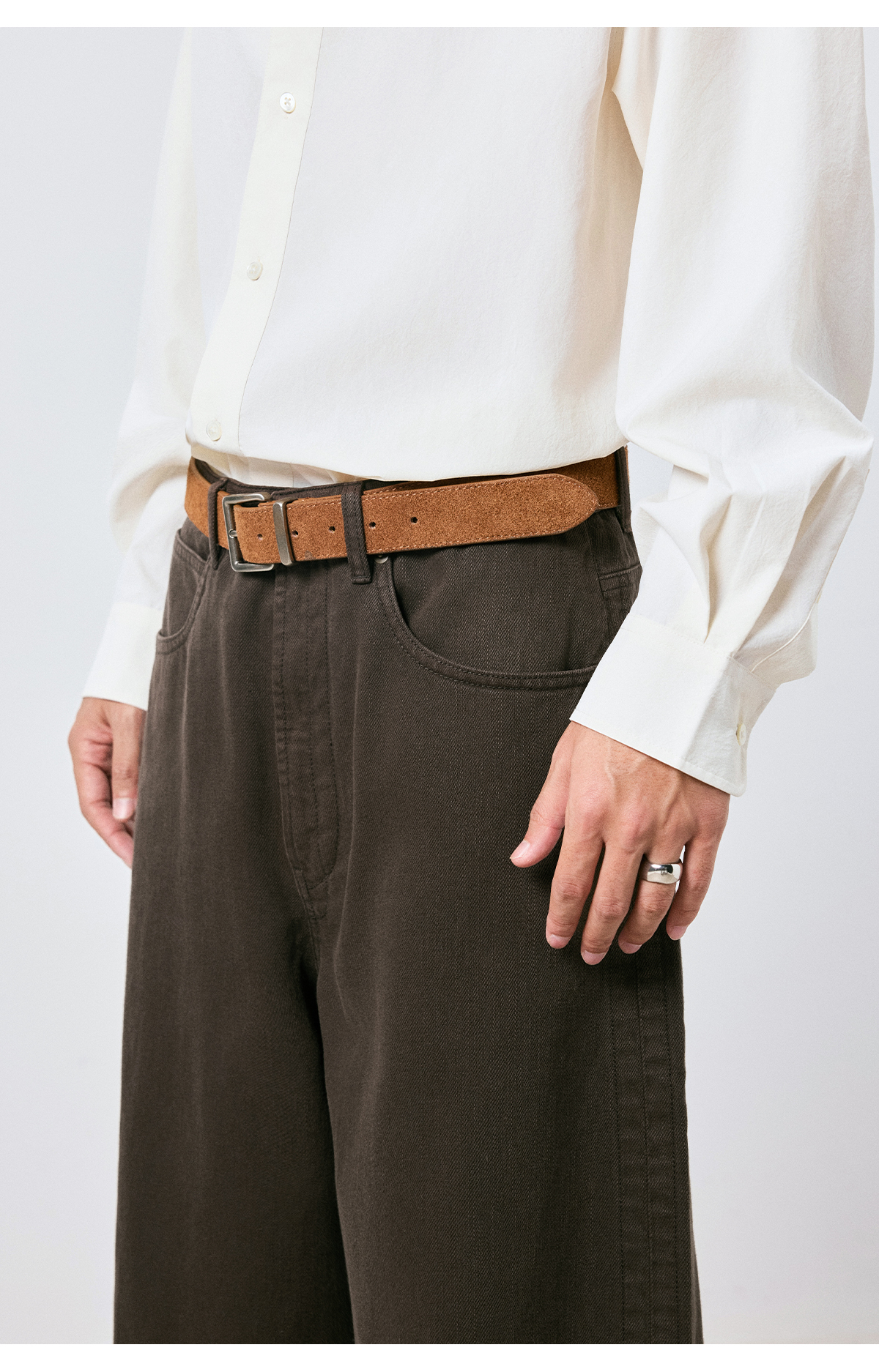 棉仓3661019001-【层序之间】复古棕色水洗宽松牛仔裤阔腿微弯刀版型