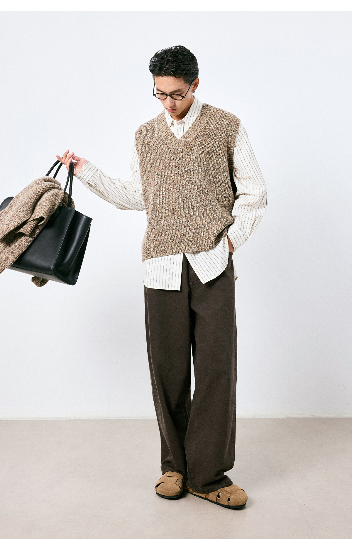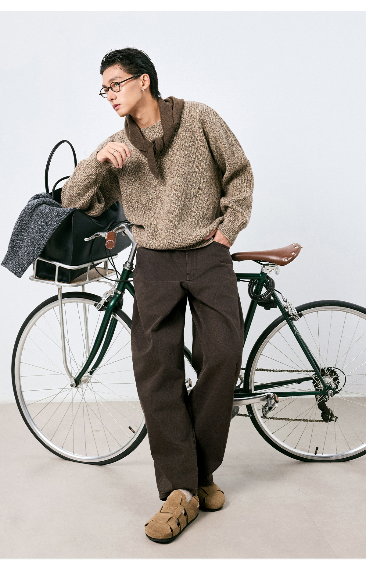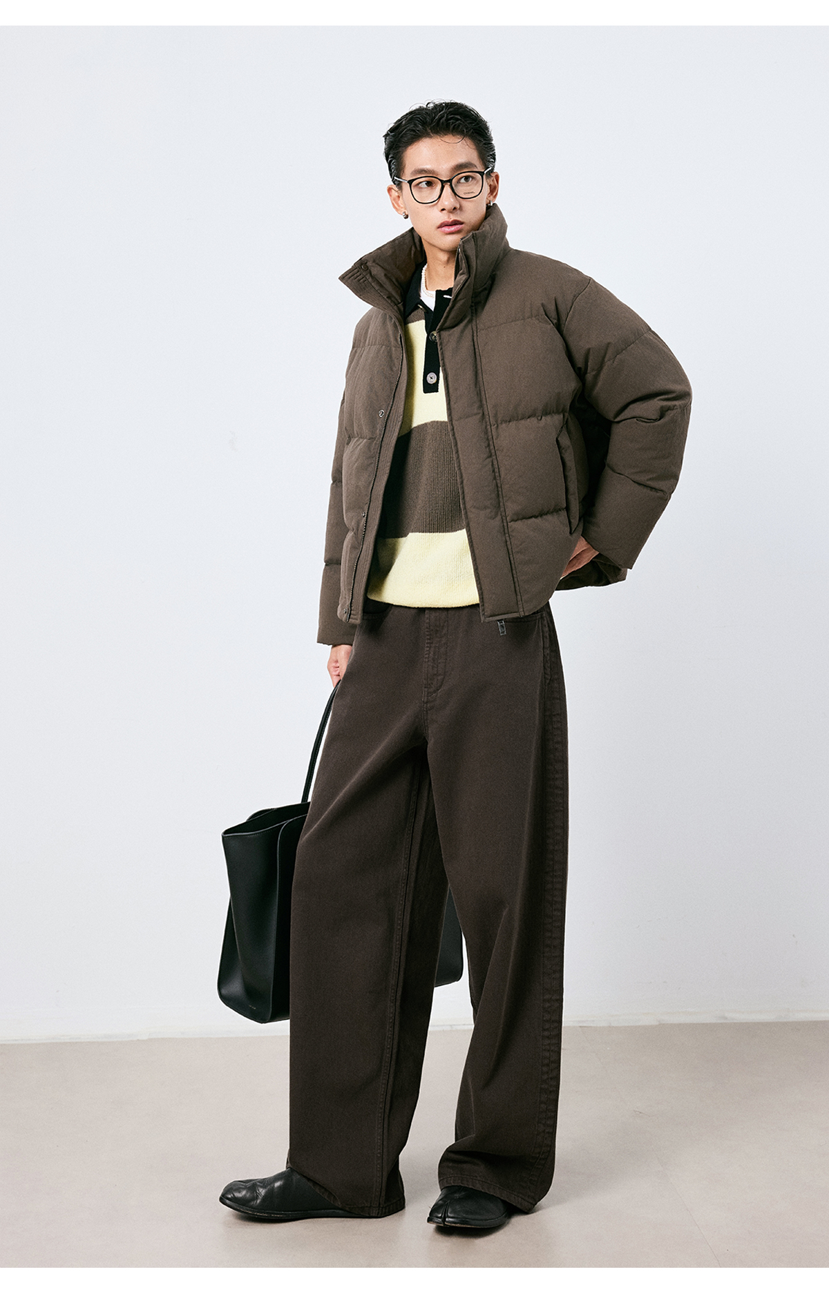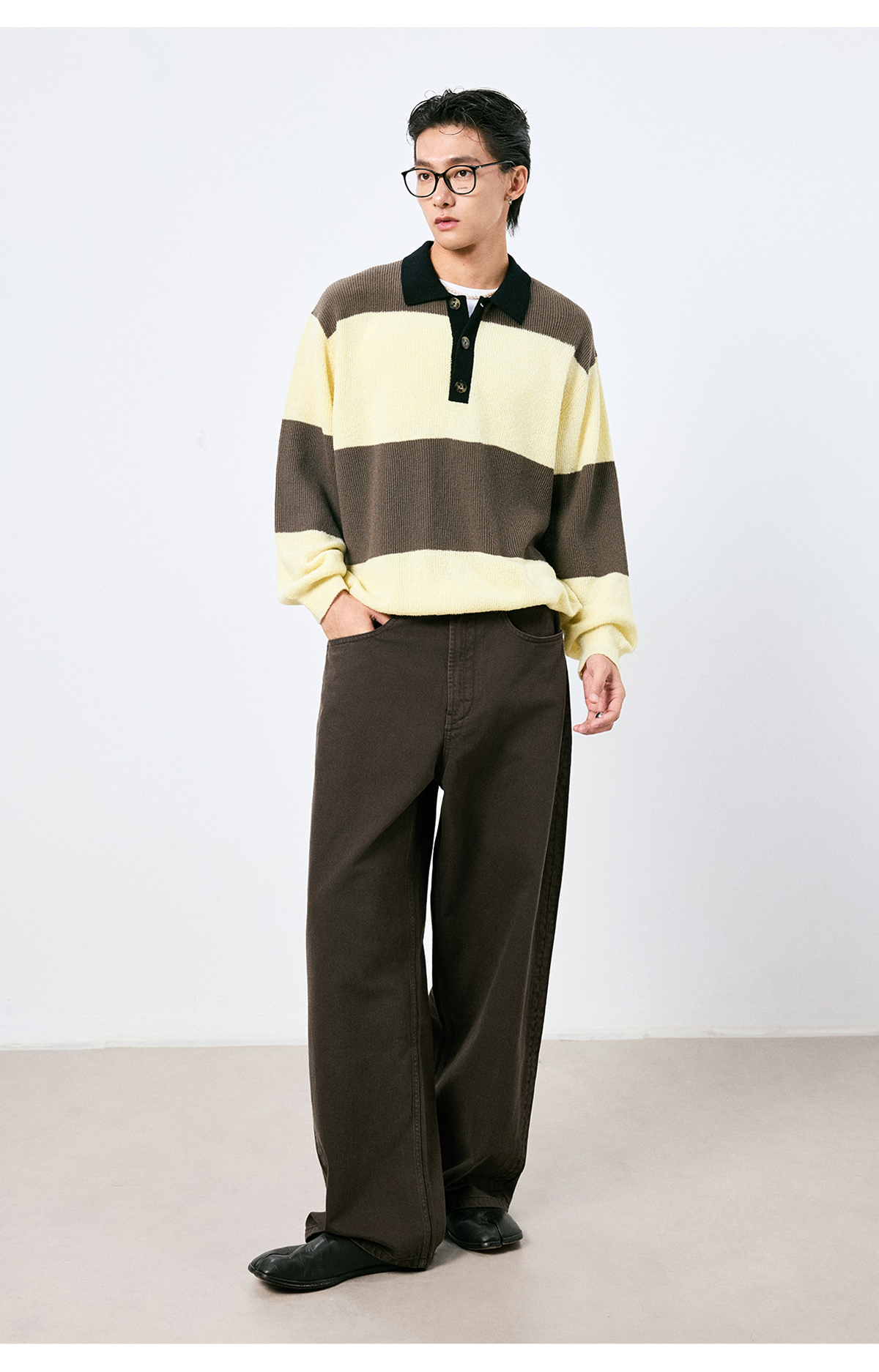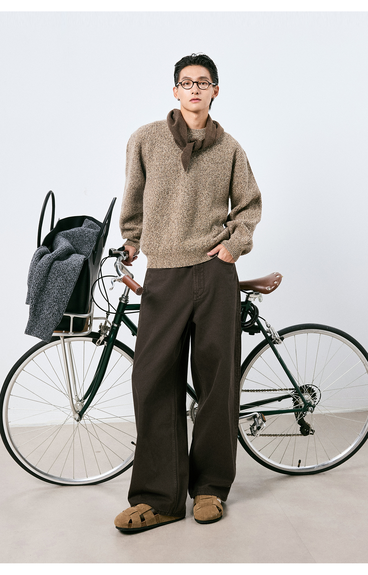 棉仓3661019001-【层序之间】复古棕色水洗宽松牛仔裤阔腿微弯刀版型