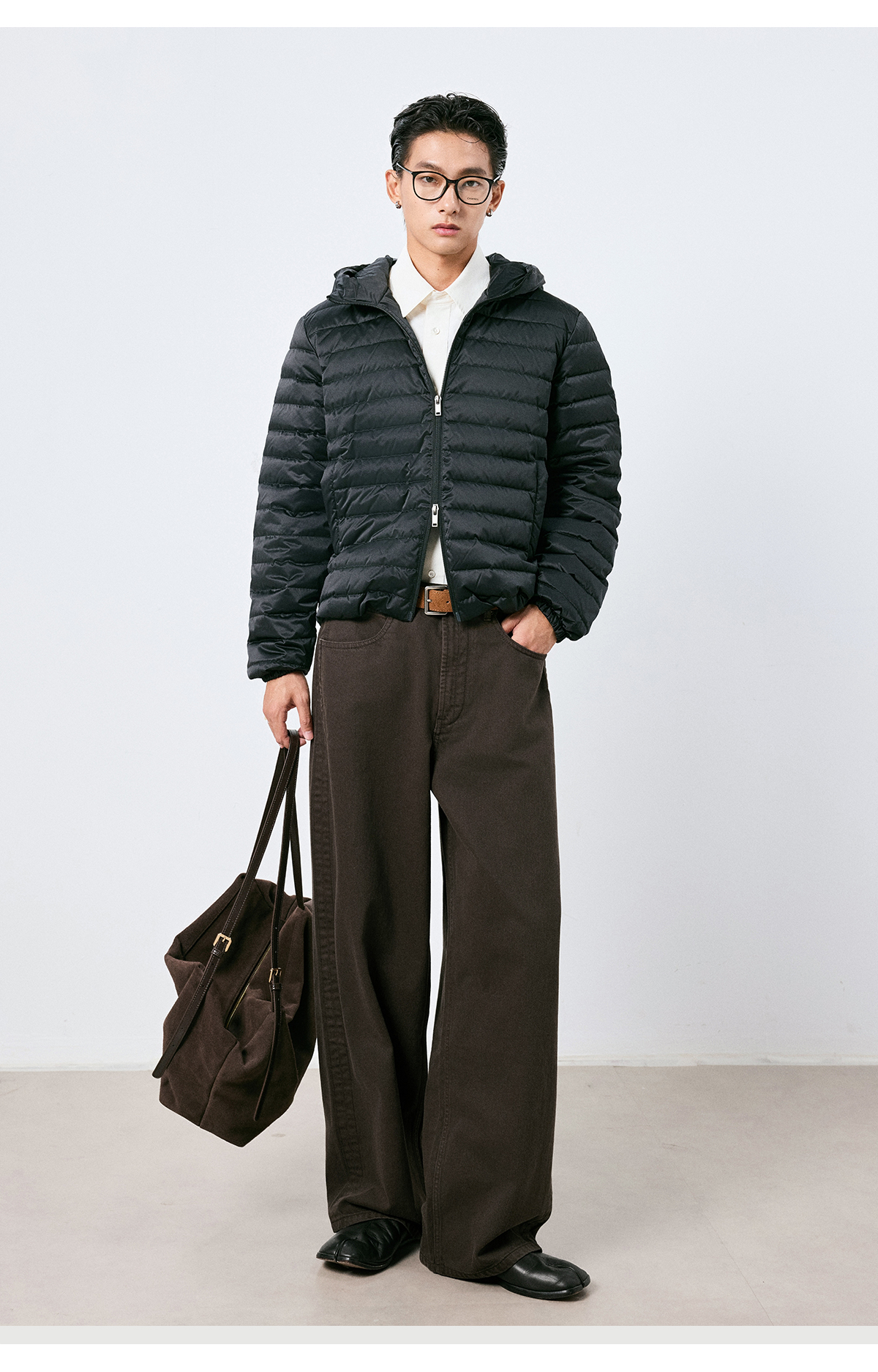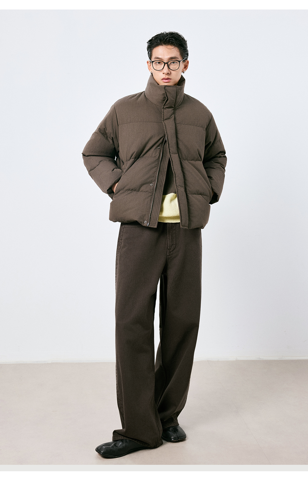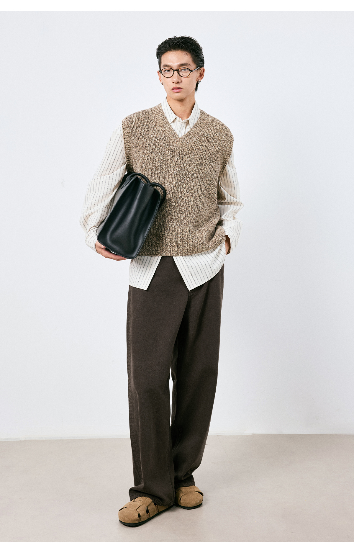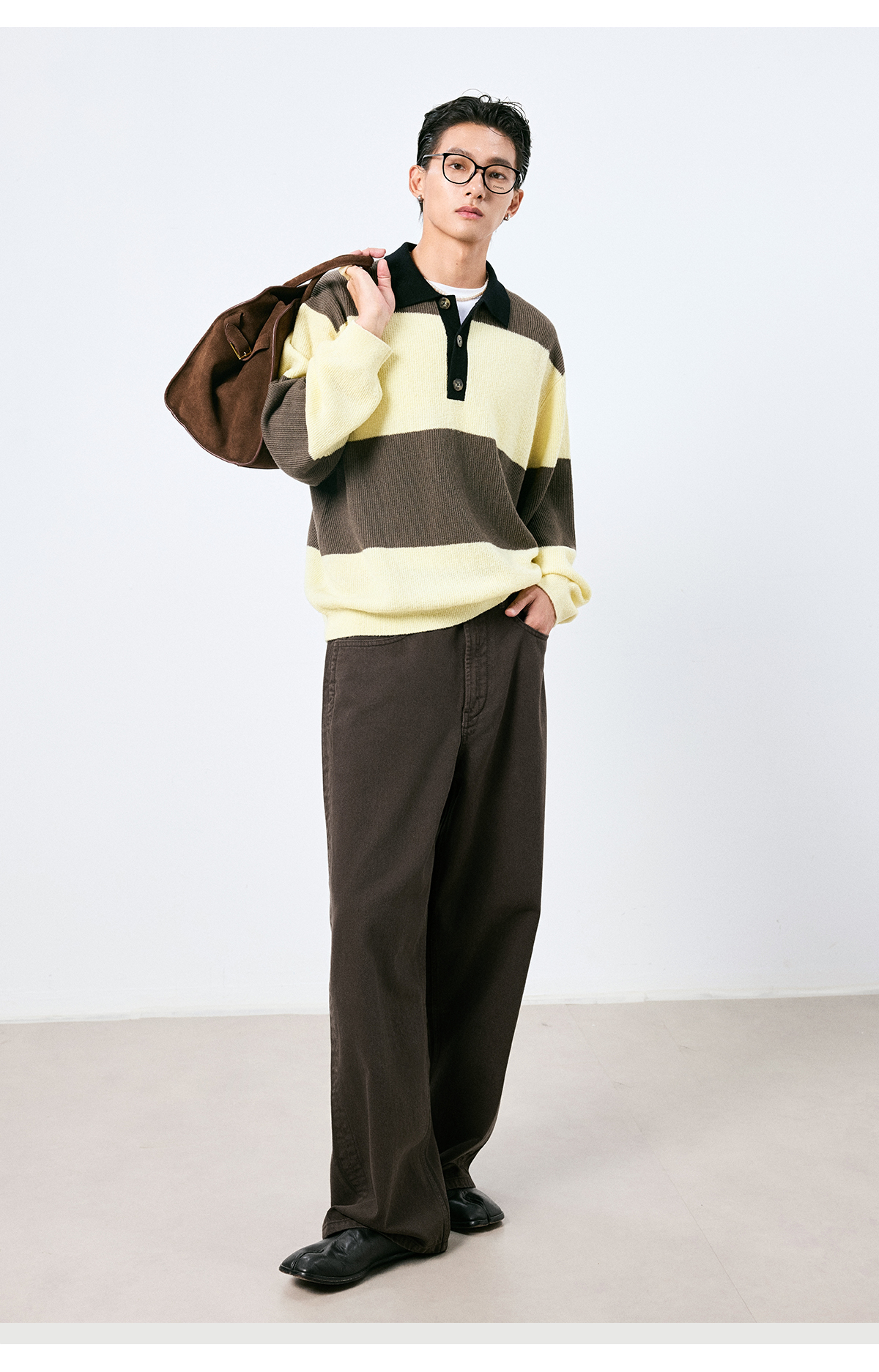 棉仓3661019001-【层序之间】复古棕色水洗宽松牛仔裤阔腿微弯刀版型