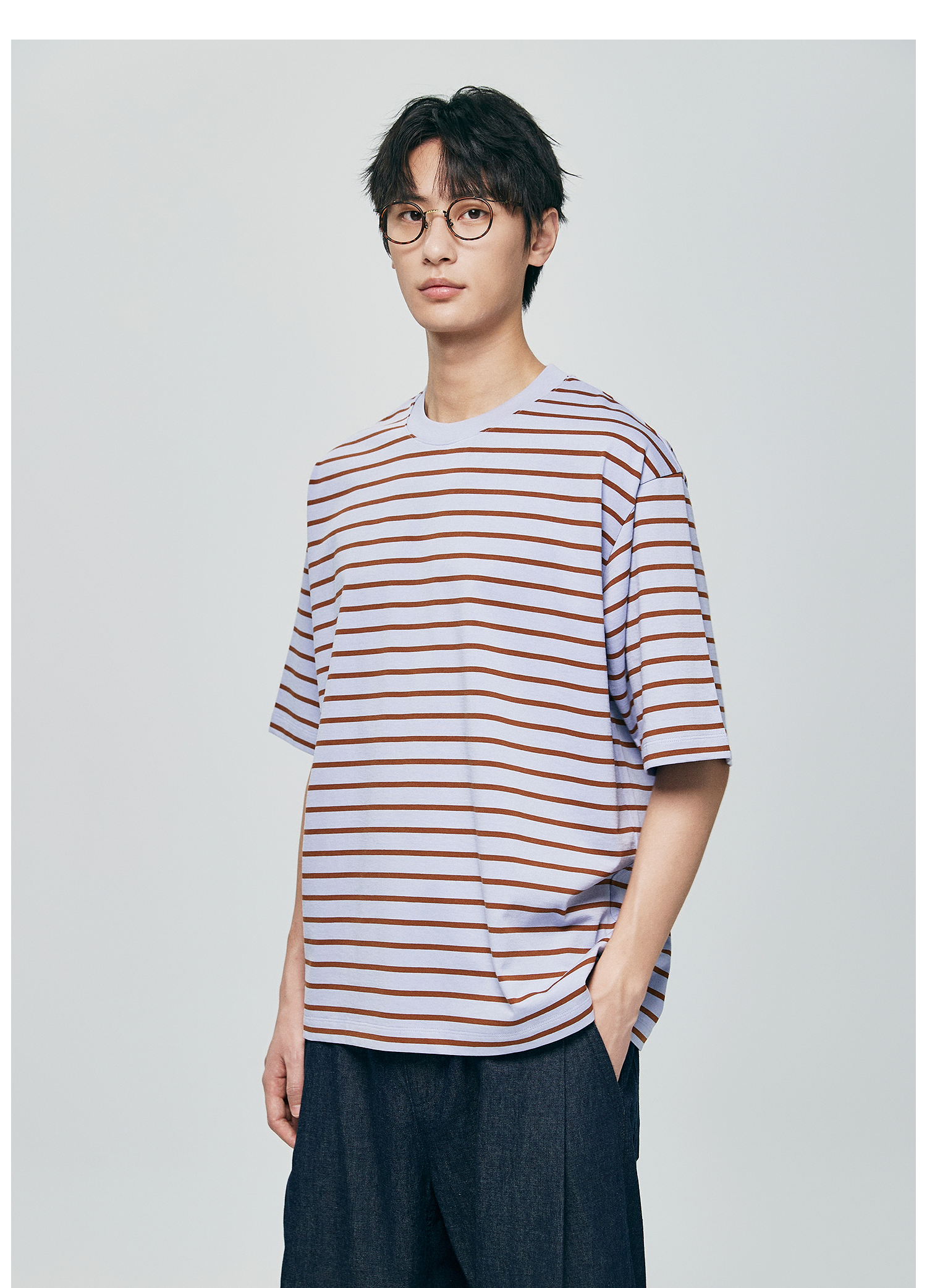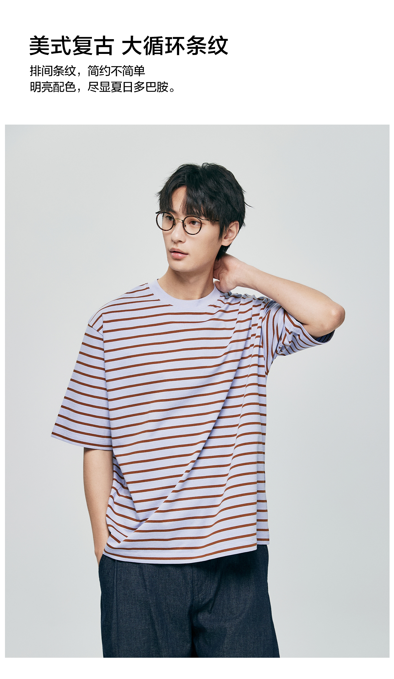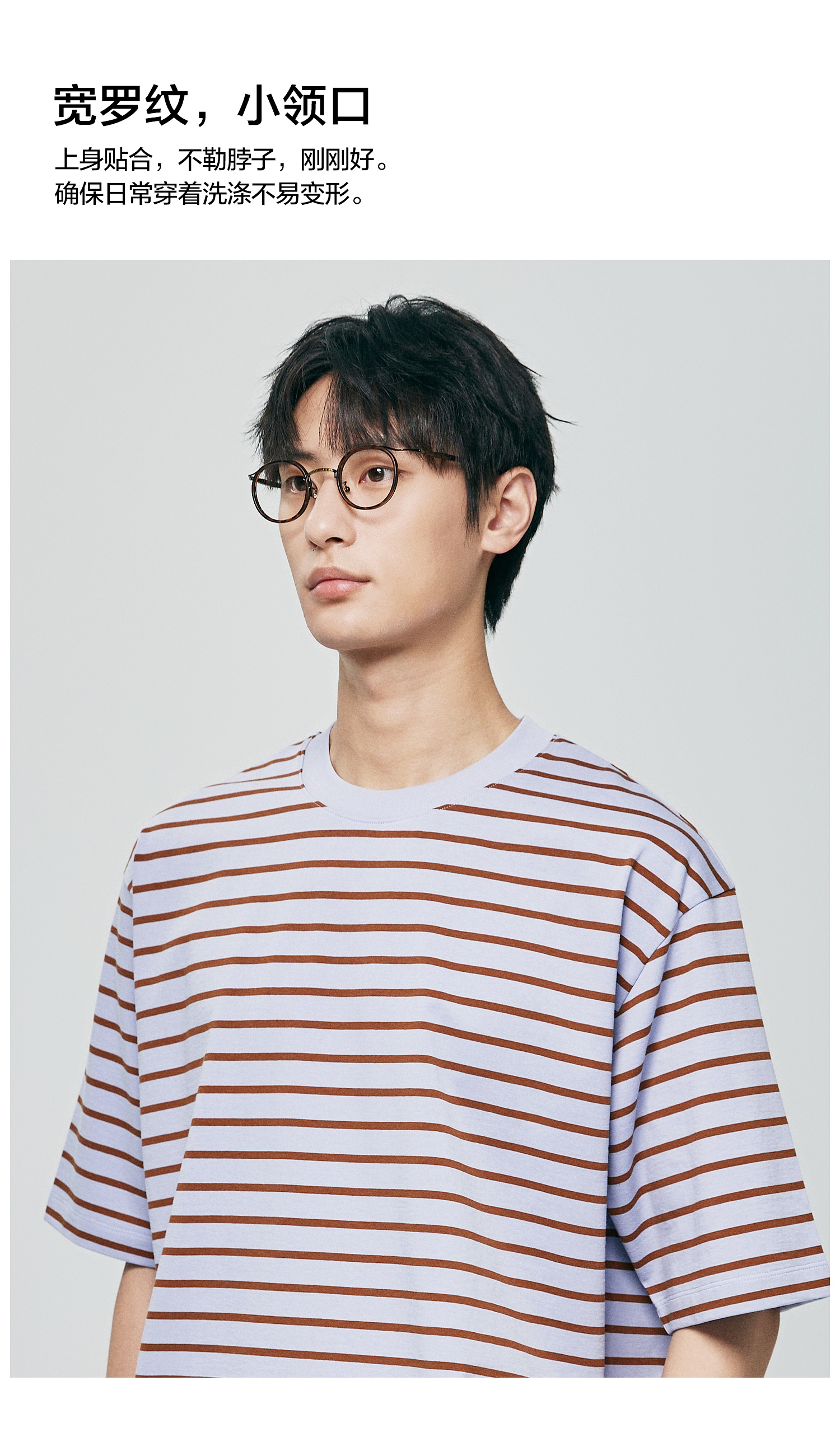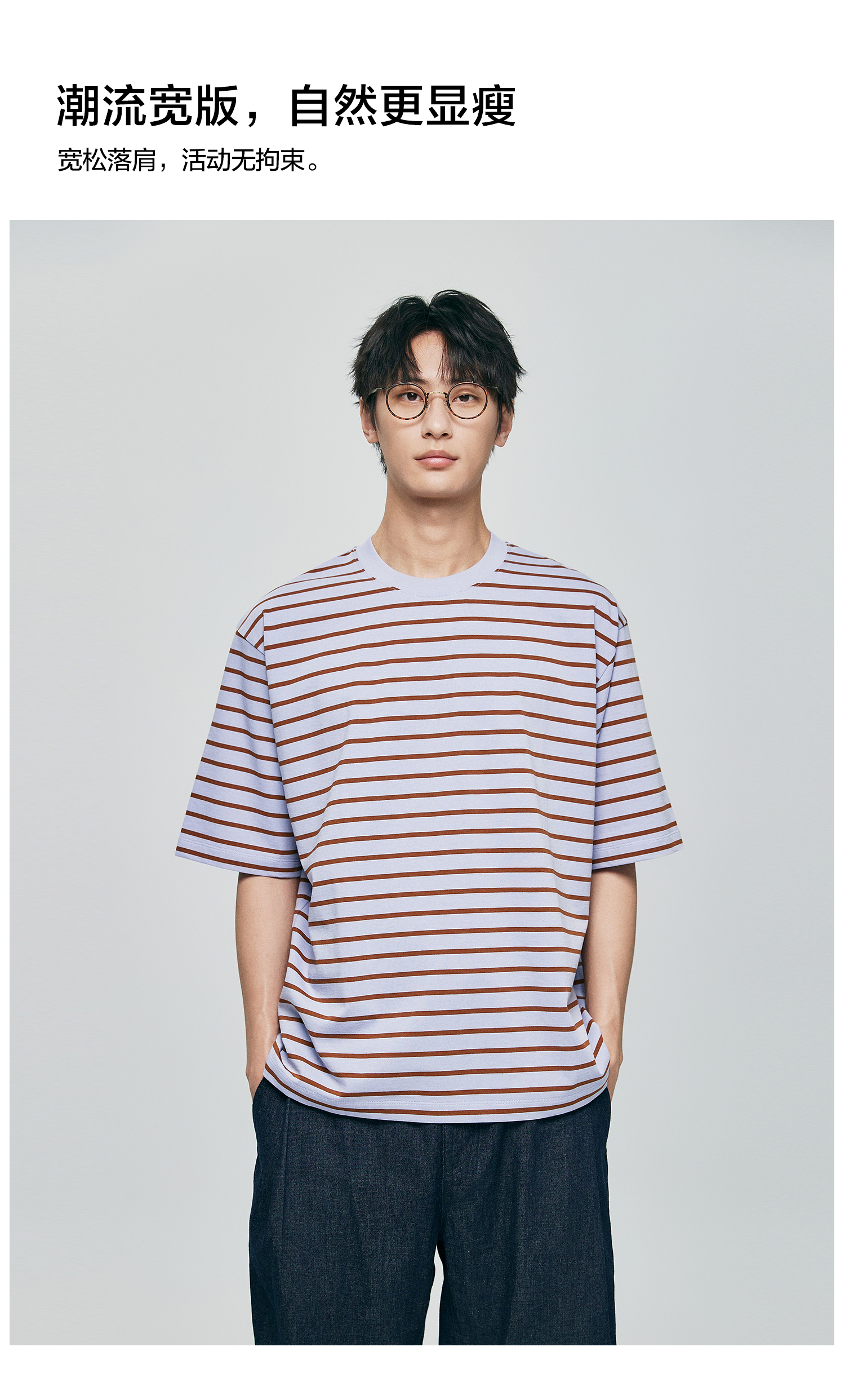 棉仓363801032-宽松落肩圆领条纹T