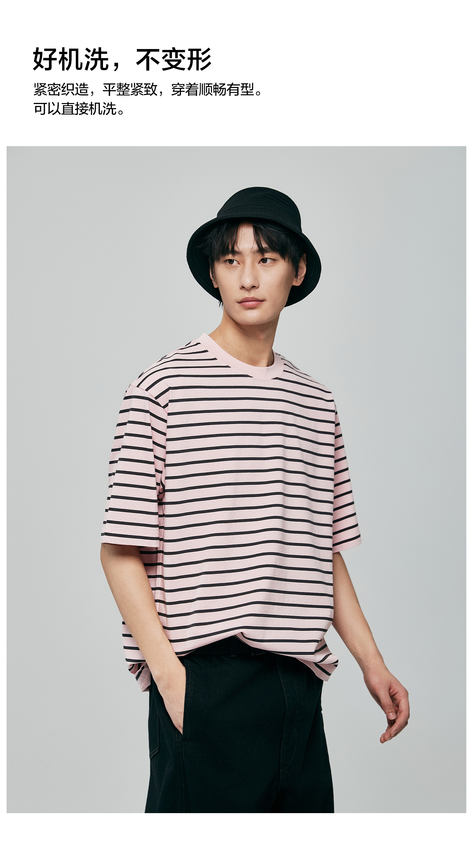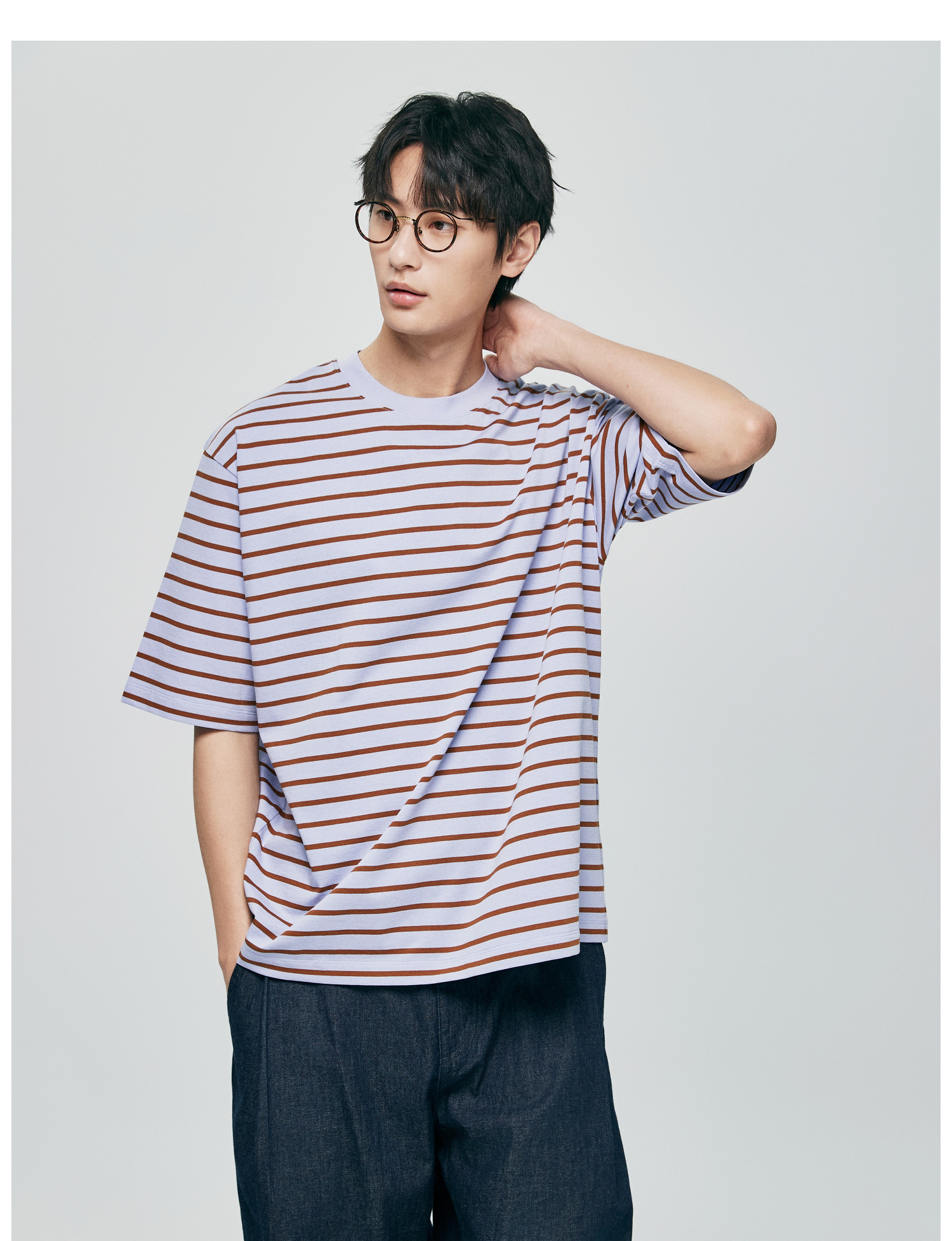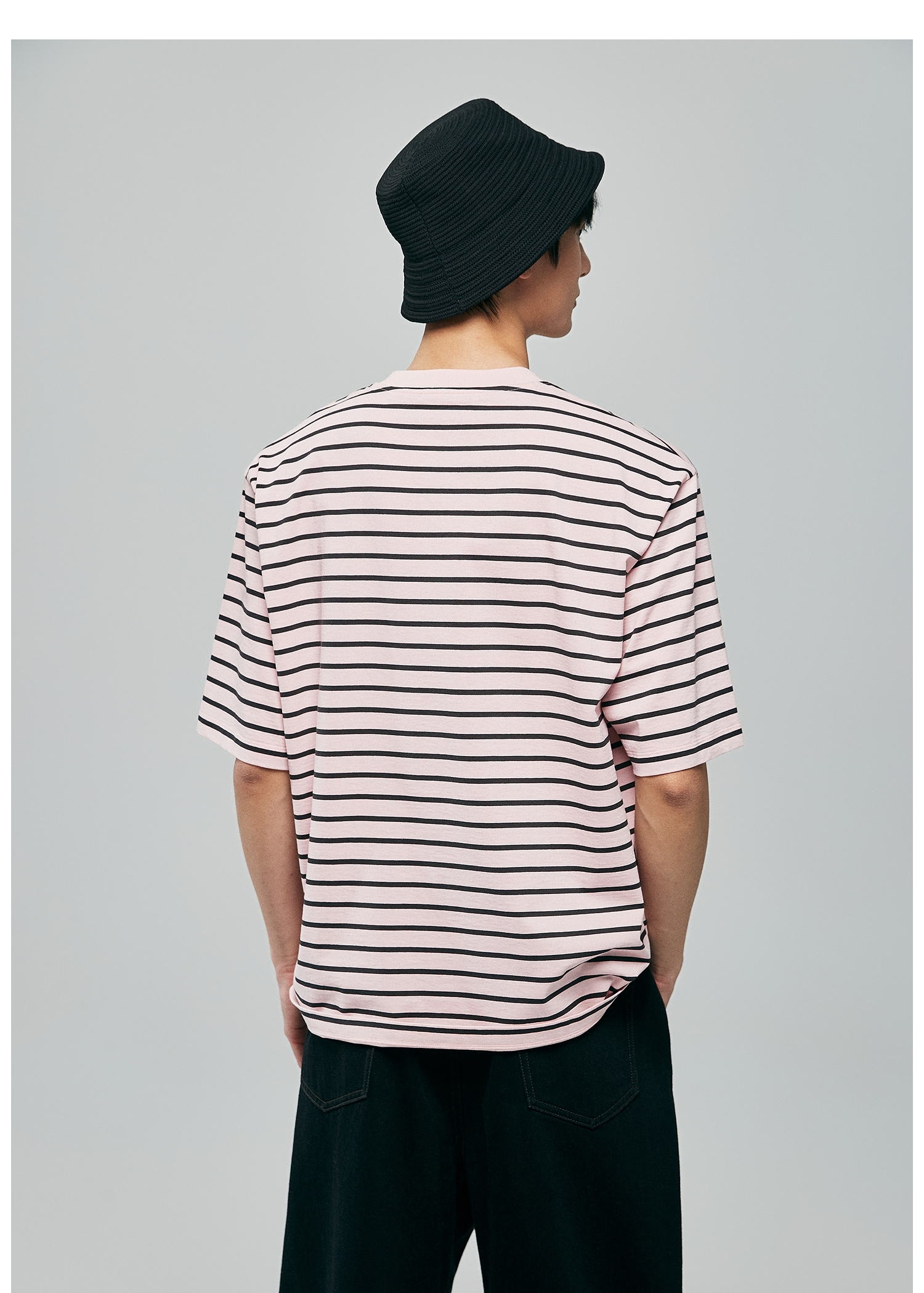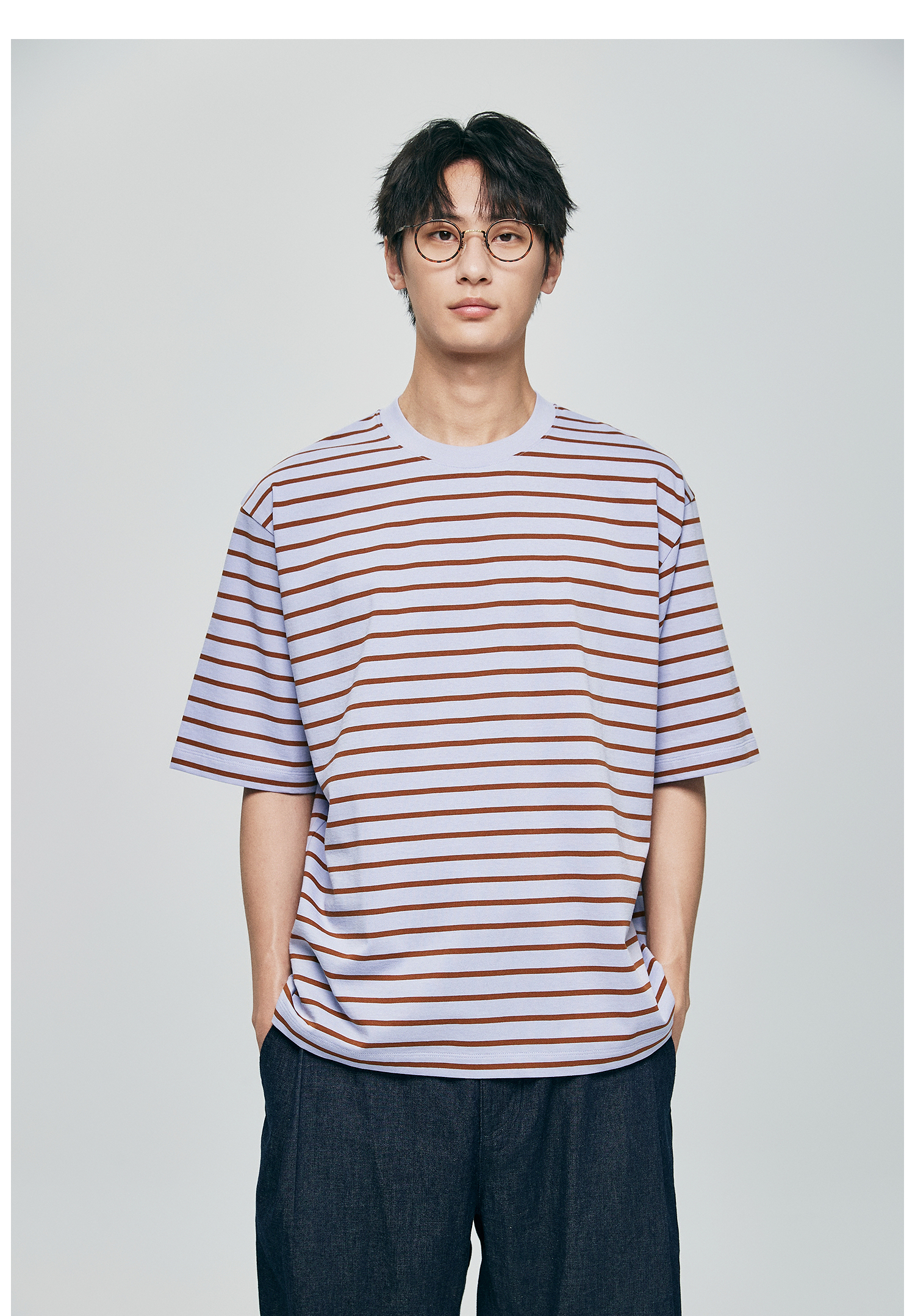 棉仓363801032-宽松落肩圆领条纹T