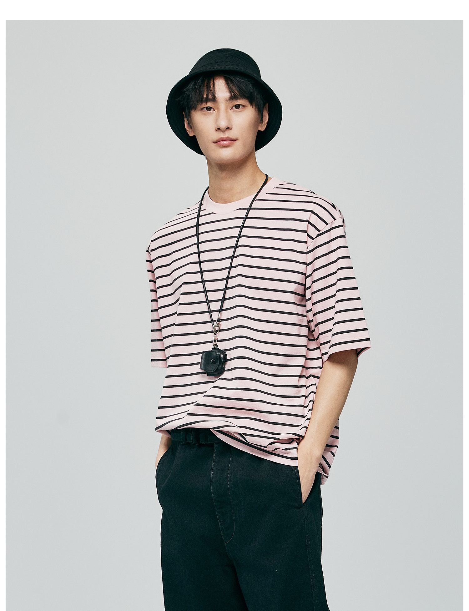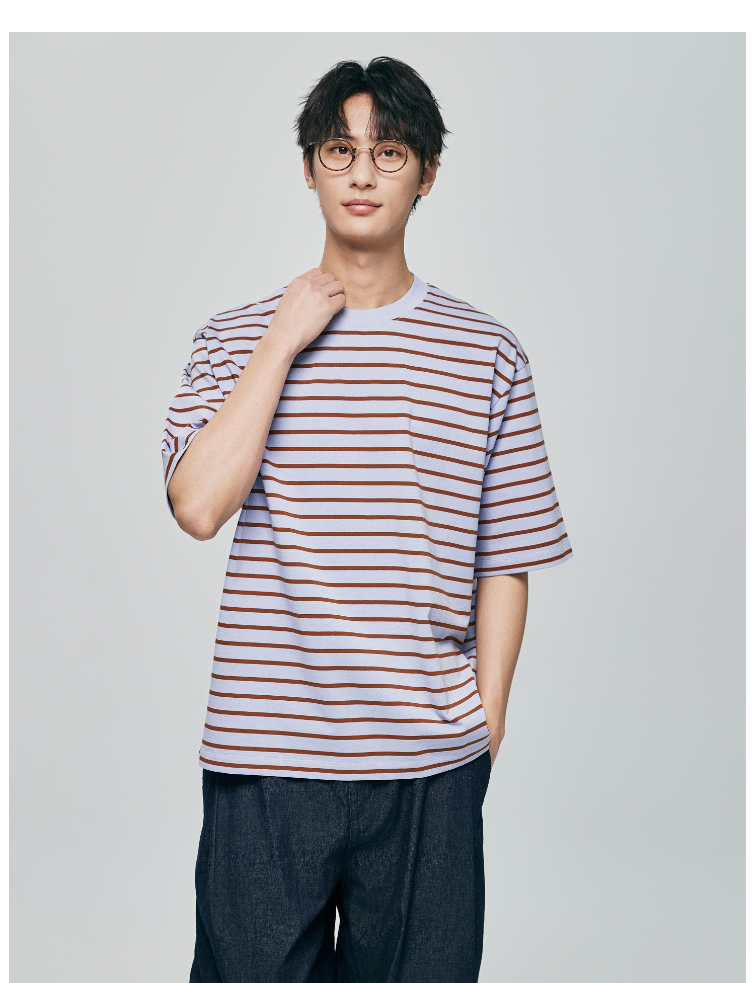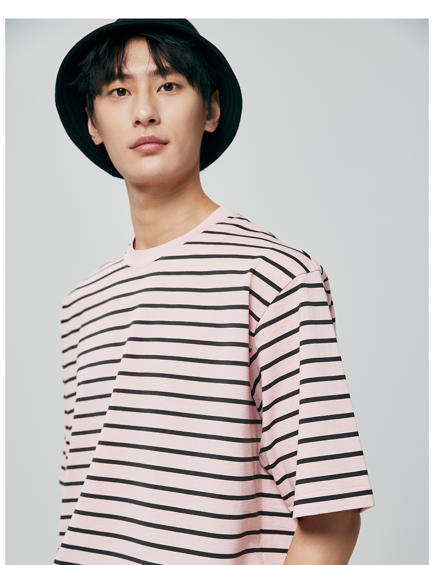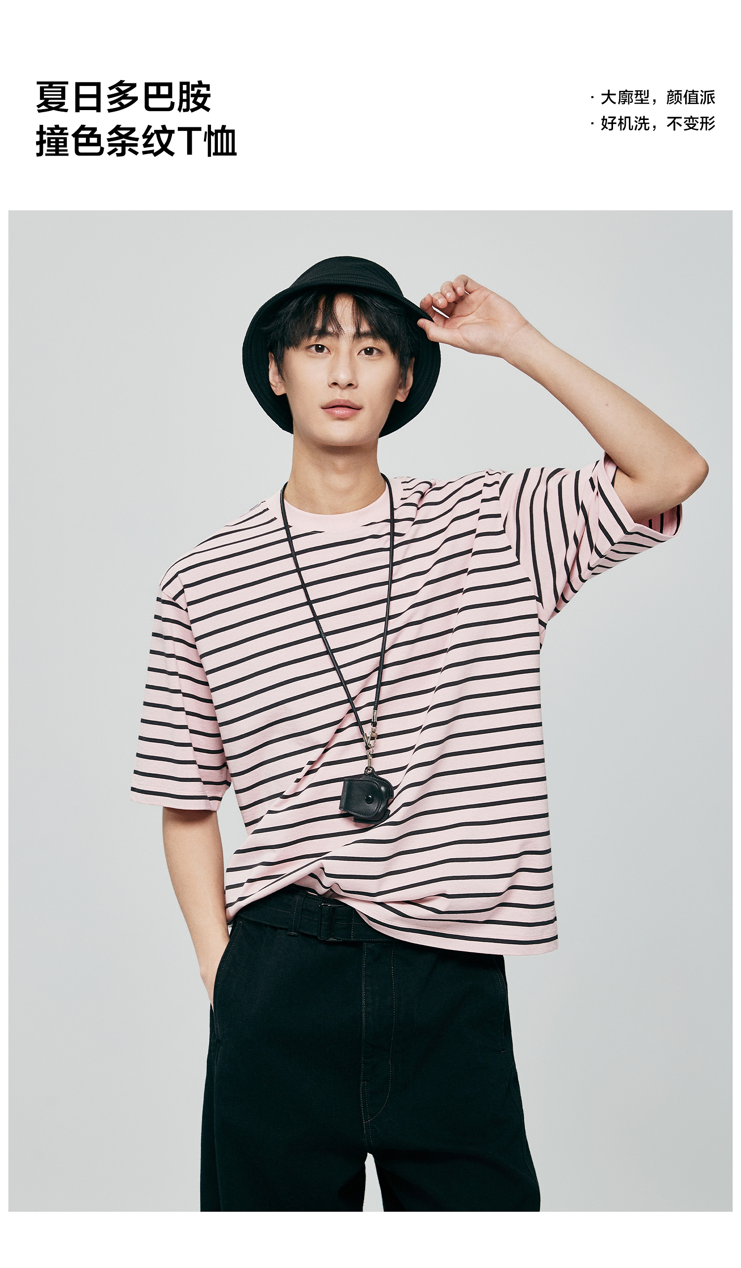 棉仓363801032-宽松落肩圆领条纹T