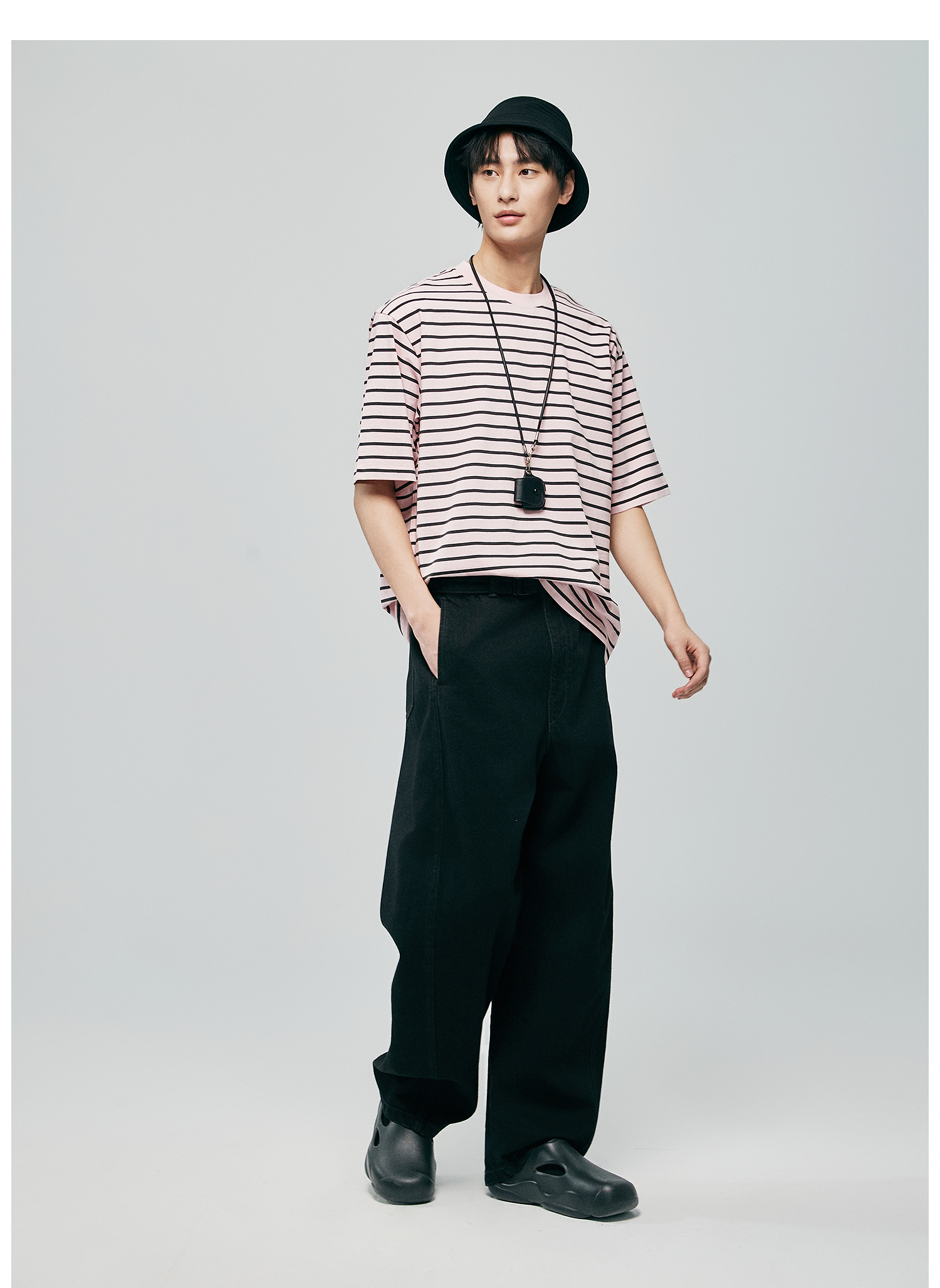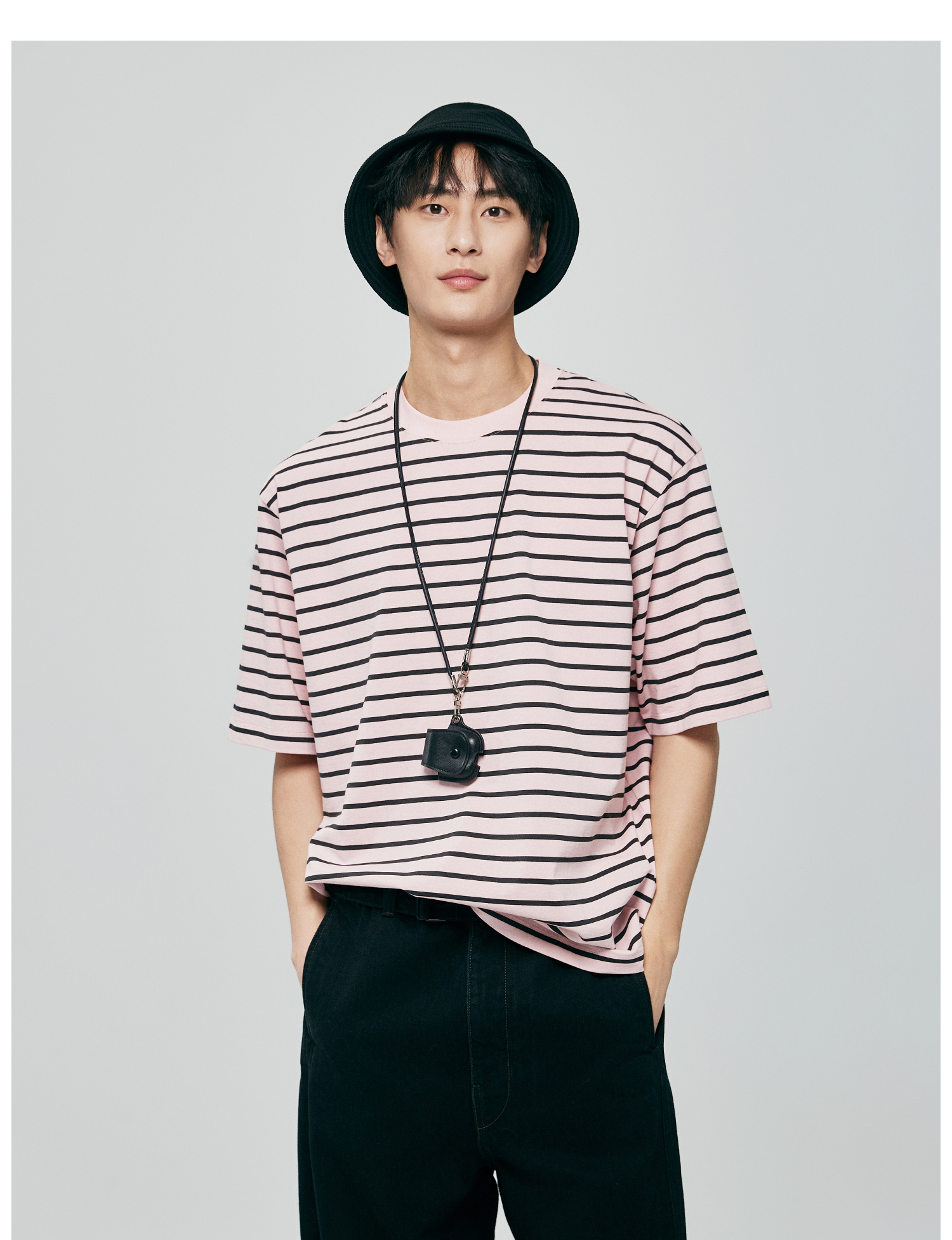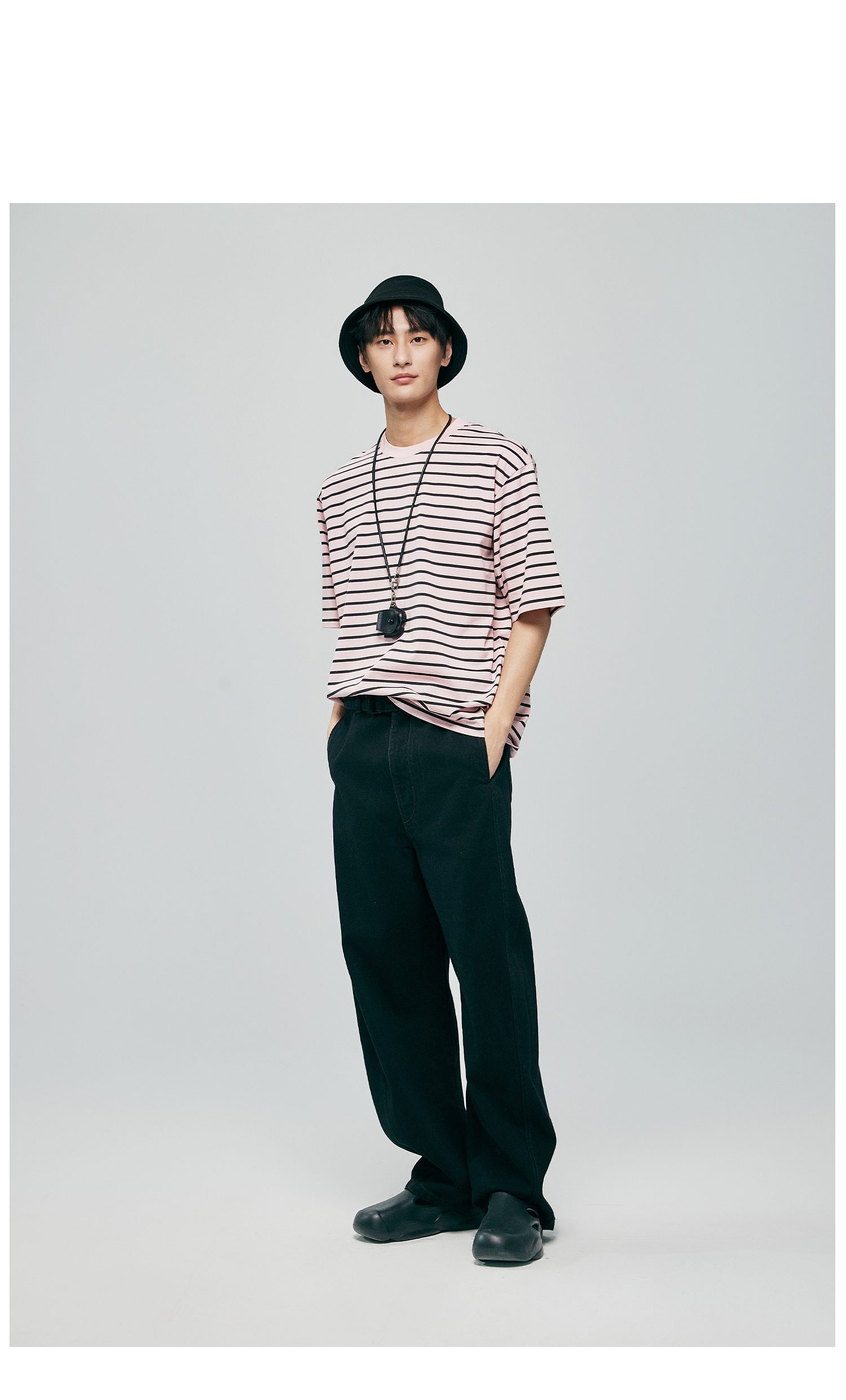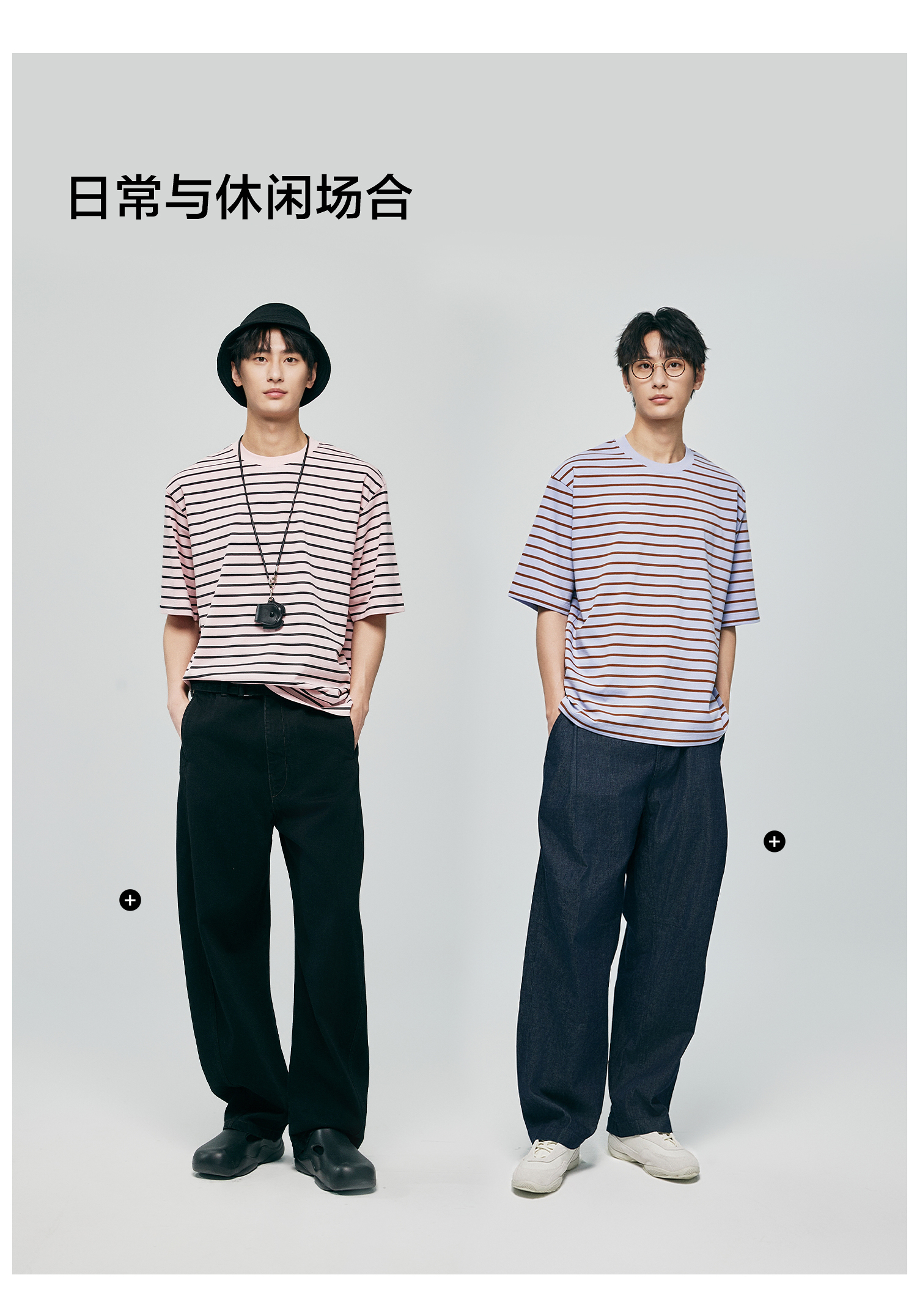 棉仓363801032-宽松落肩圆领条纹T
