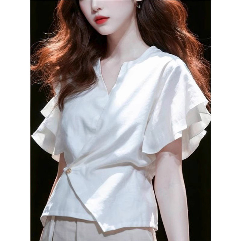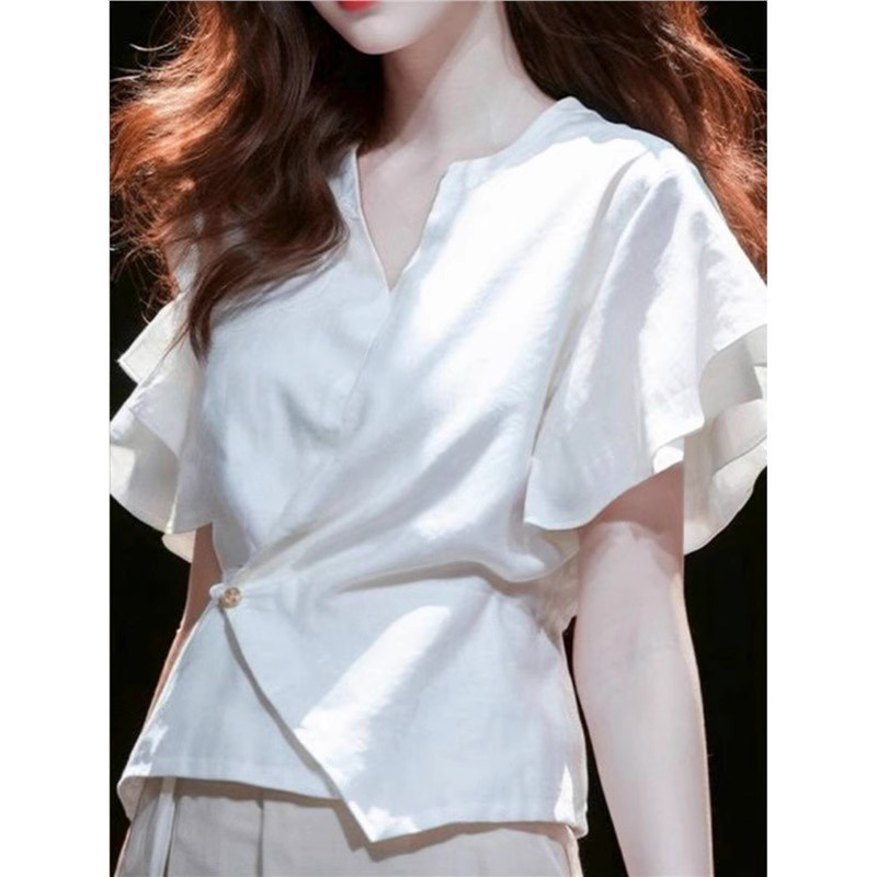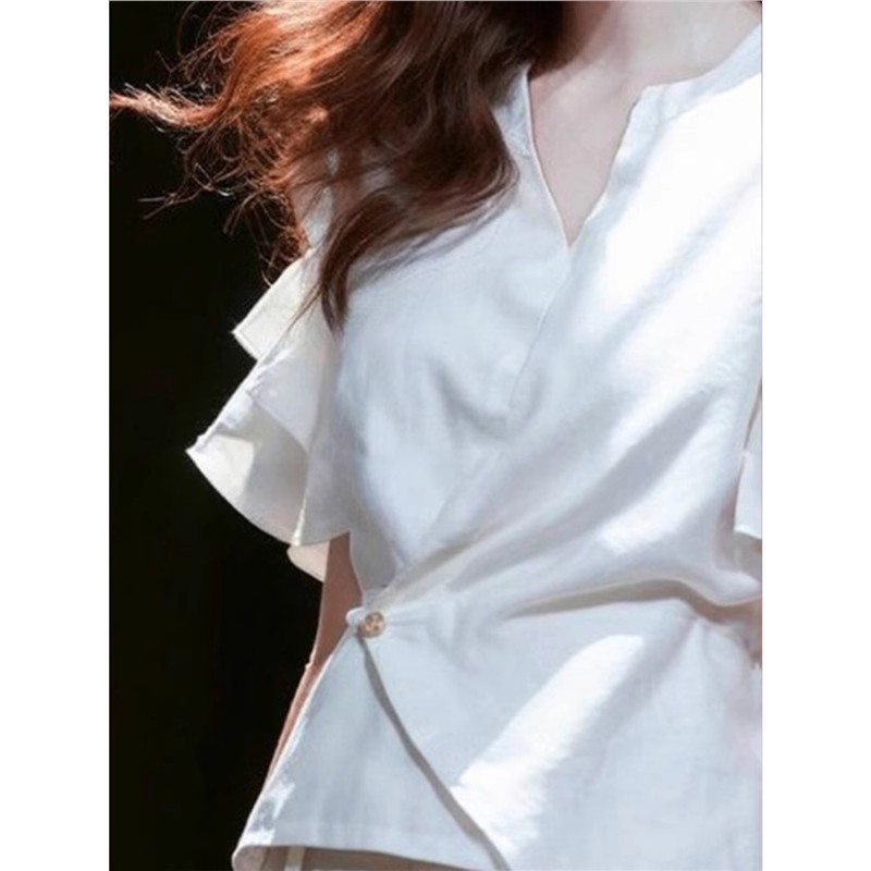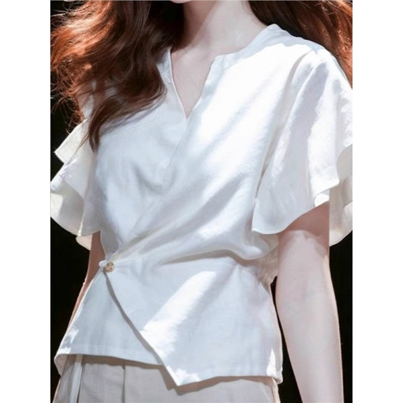 裁缝学苑AS523 法式V领短袖衬衫纸样女装棉麻短款小衫上衣样板
