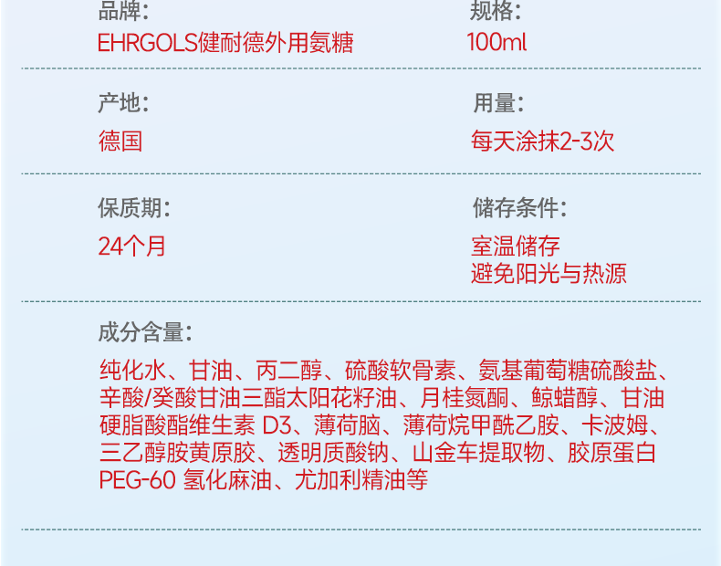 EHRGOLS外用氨糖软骨素中老年关节膝盖氨糖涂抹膏关节膏
