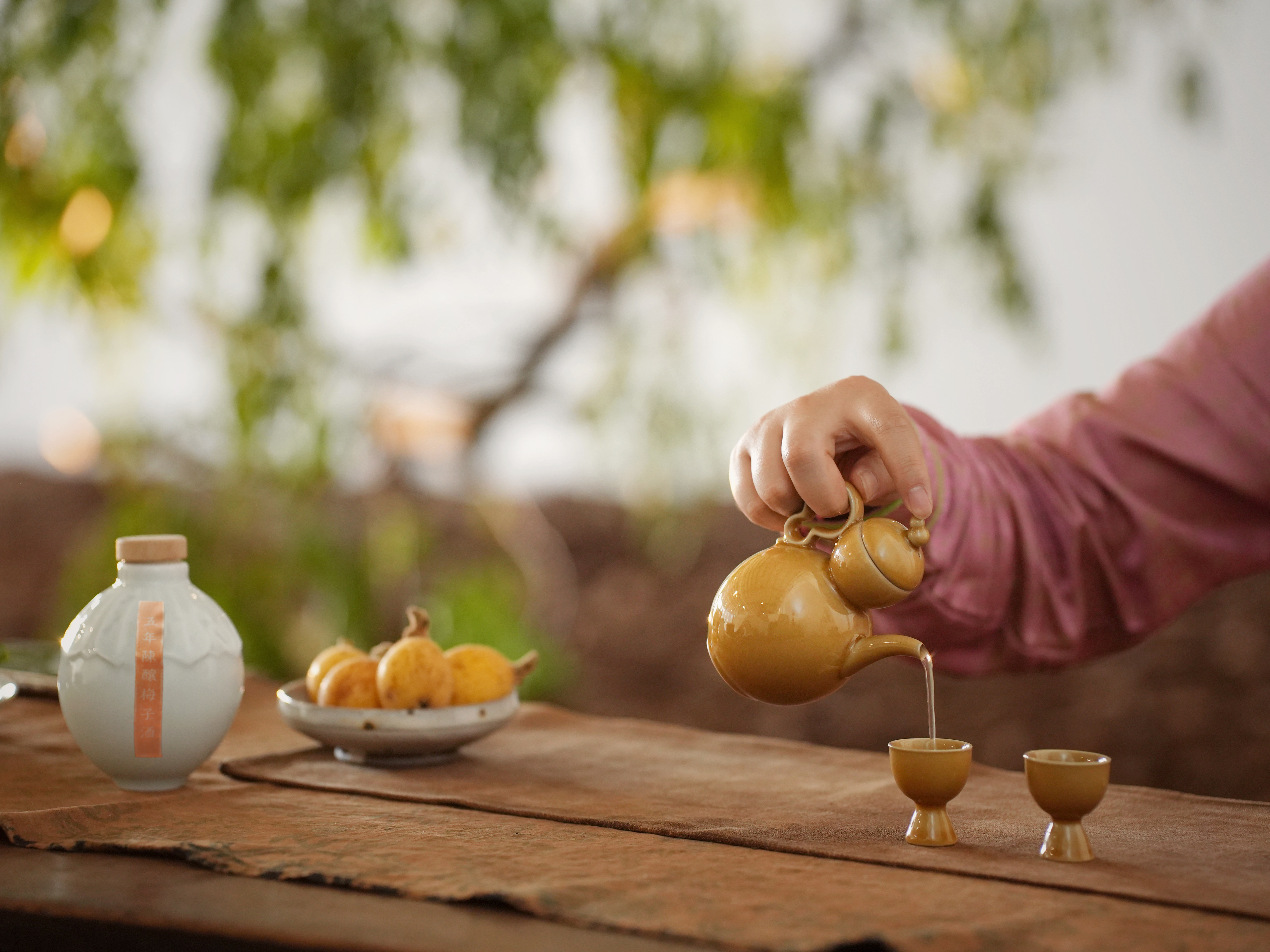 太湖西山南坡的野生青梅与原浆高粱酒,土缸浸泡五年,果香交融,层次分明,回味甘甜。