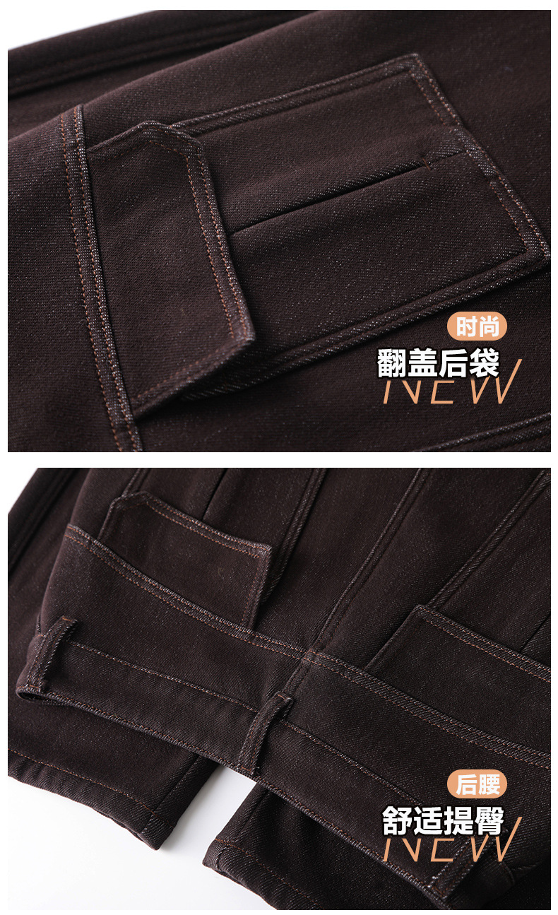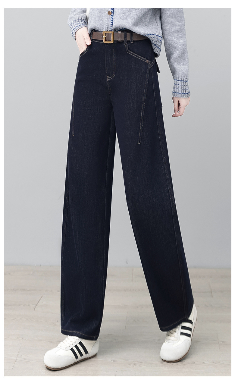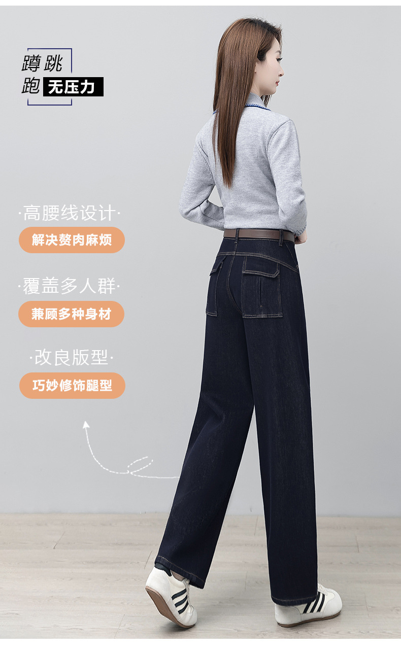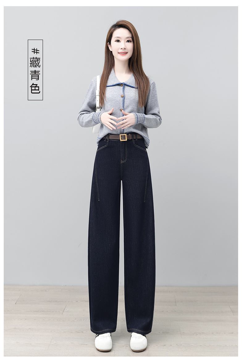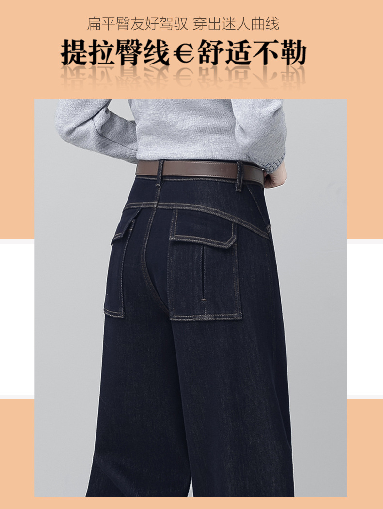 YM 2837-79高腰显瘦百搭牛仔弯刀裤时髦洋气加绒保暖阔腿裤 商品图3