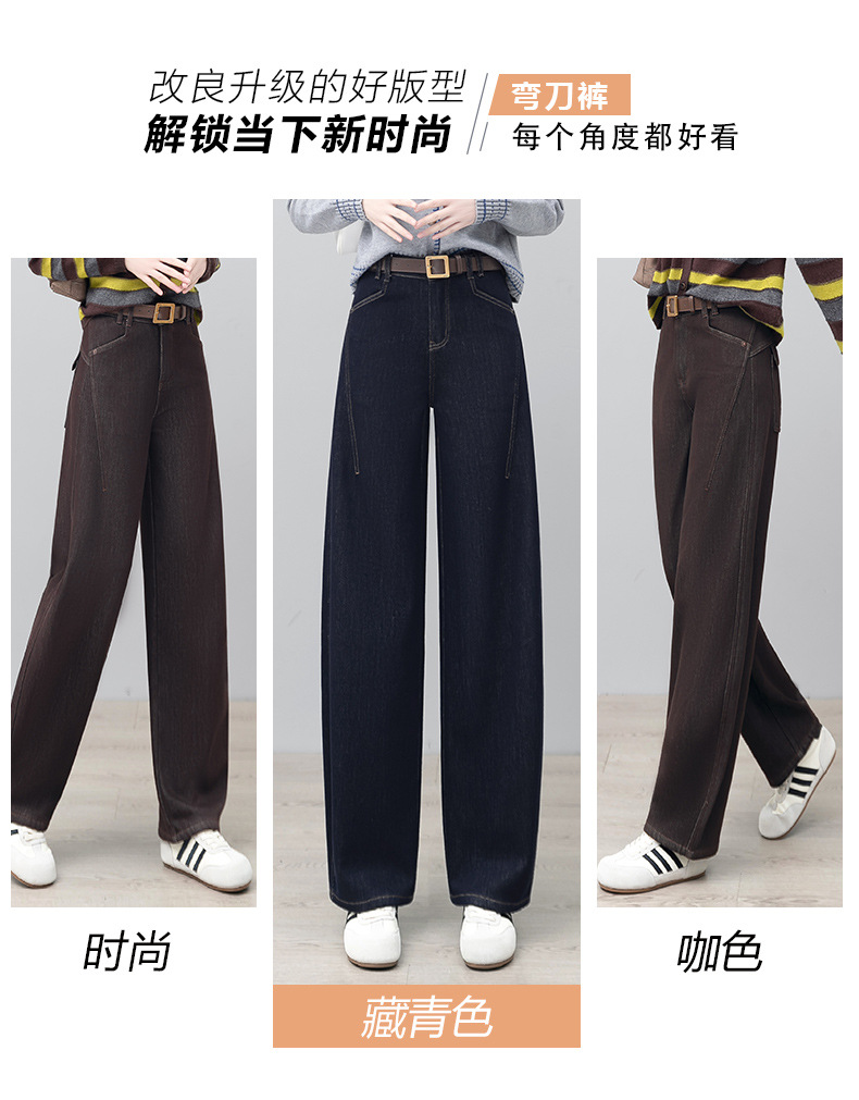 YM 2837-79高腰显瘦百搭牛仔弯刀裤时髦洋气加绒保暖阔腿裤 商品图0