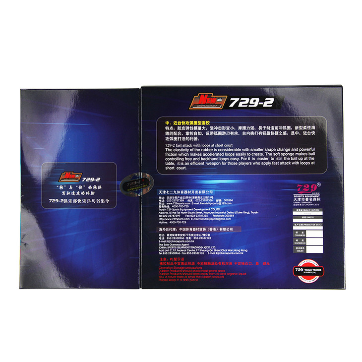 新729-2是我公司技术部门经过特殊工艺处理,耗时5年研制生产出的一款中近台快攻弧圈型套胶。特性是:胶皮弹性规模大,受冲击规模形变小,摩擦力强,易于制造前冲弧圈,新型柔性海绵的配合,,掌握自如,反带弧圈游刃有余,台内挑打有轻盈快捷之感,是中近台快攻弧圈打法的利器。
