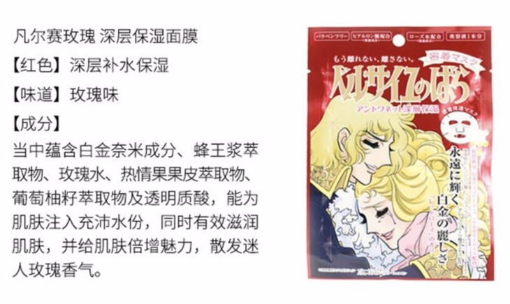 日本凡尔赛Creer Beaute面膜红色玫瑰味深层补水保湿面膜10片