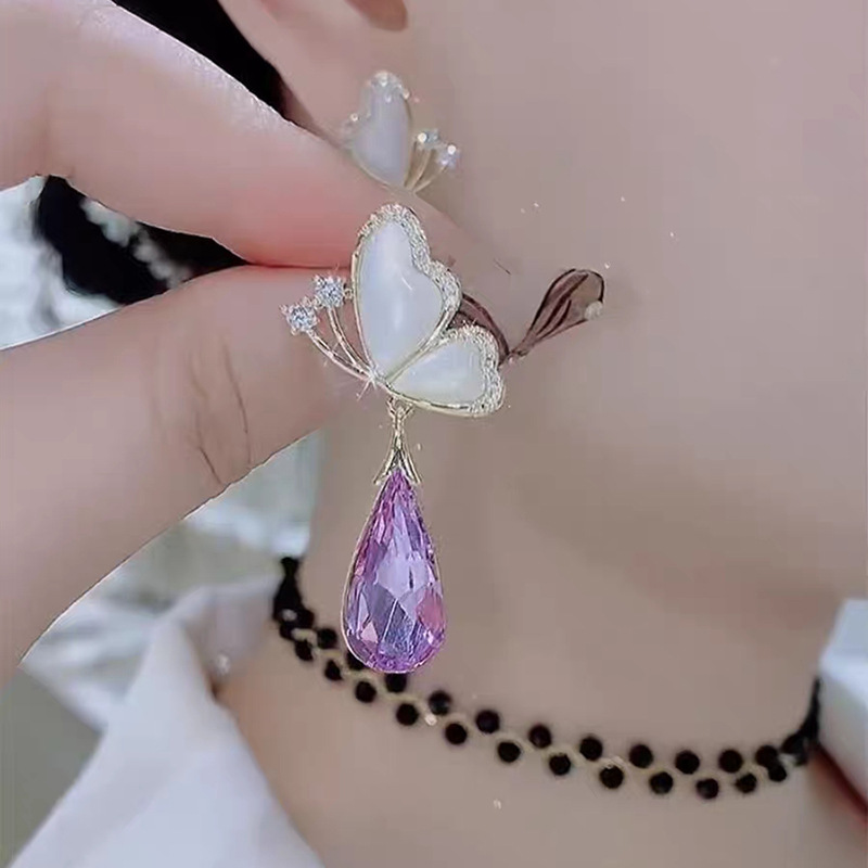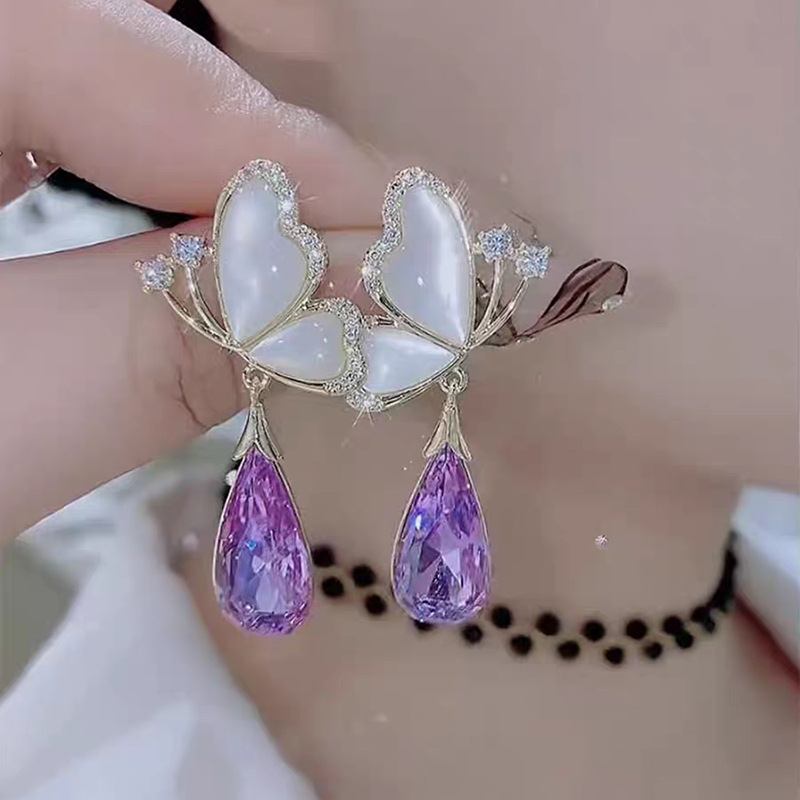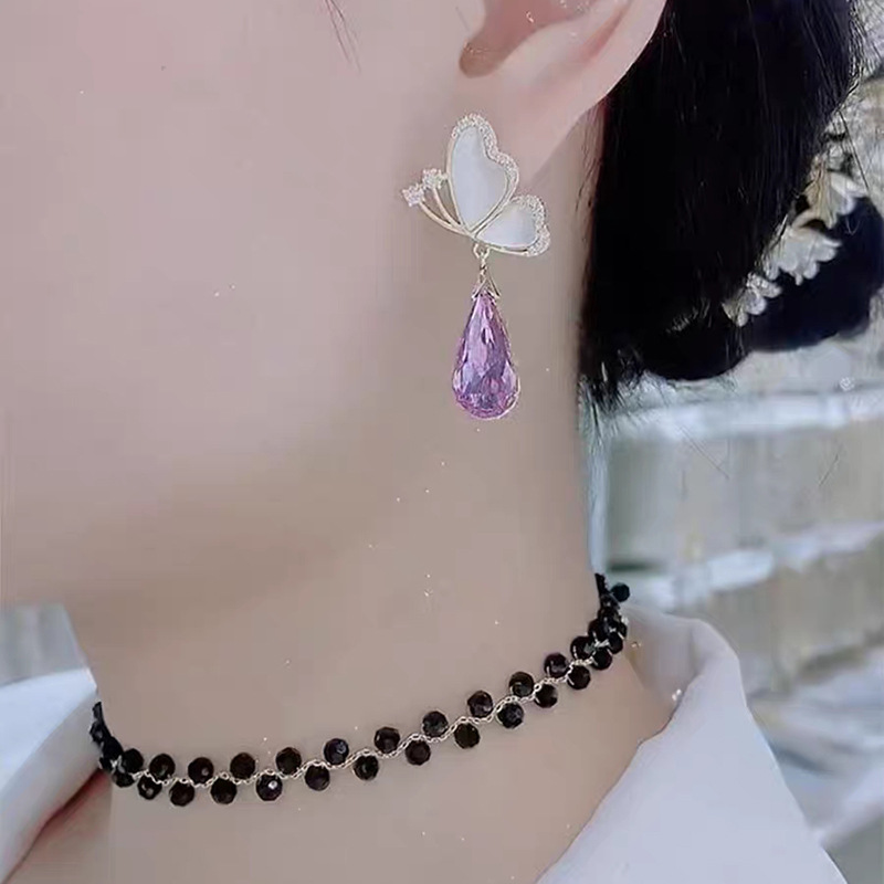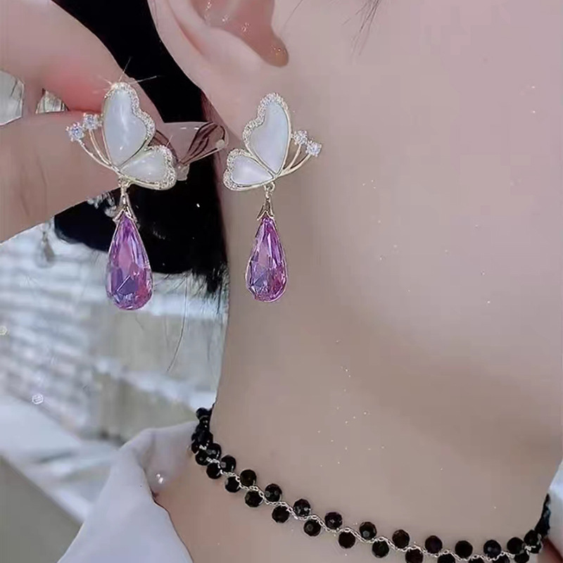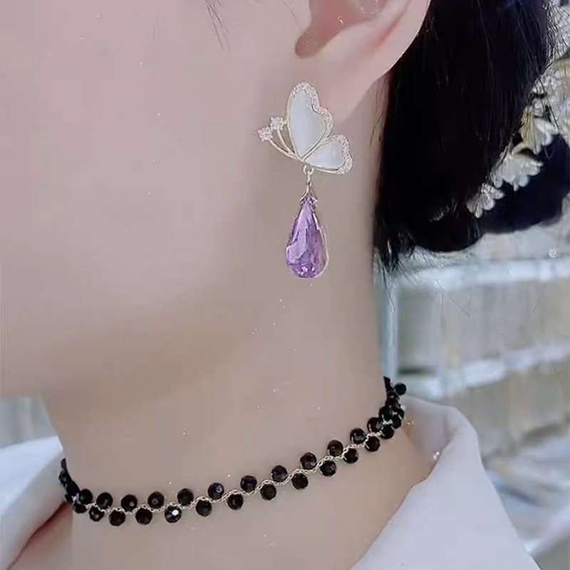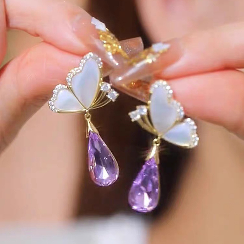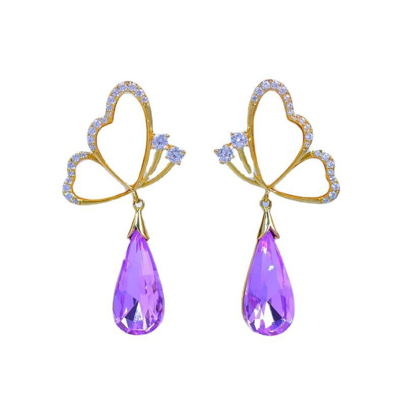 JU-C0016夏季设计甜美蝴蝶紫色水晶耳环女小众感时尚气质百搭耳钉耳饰