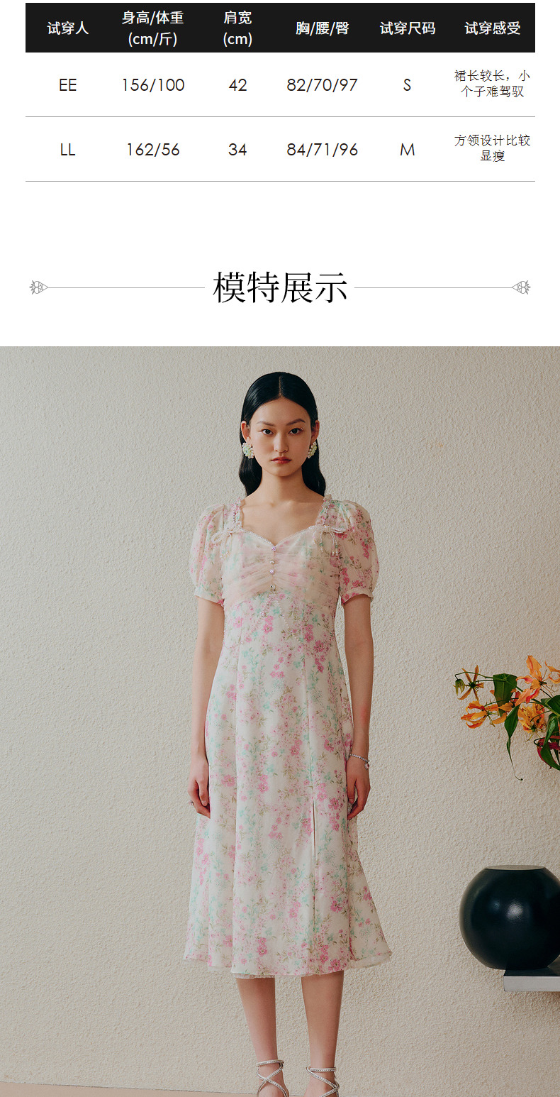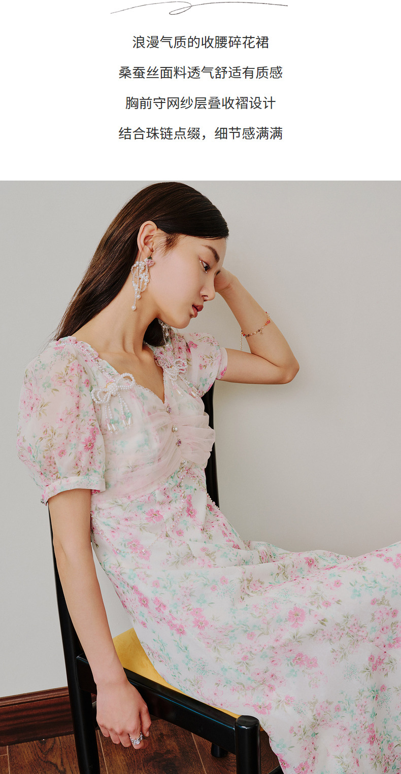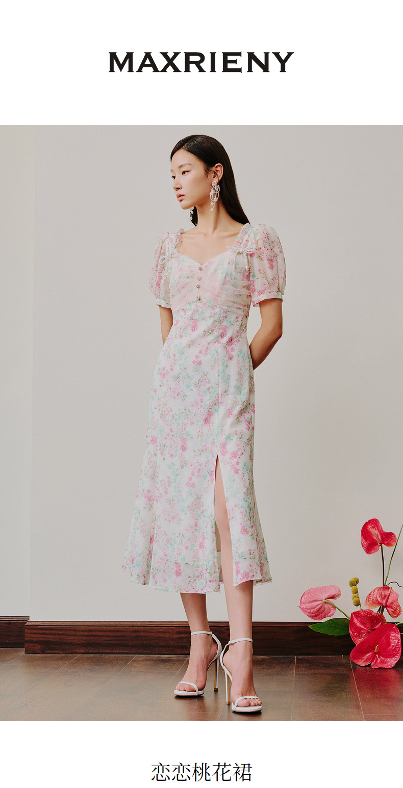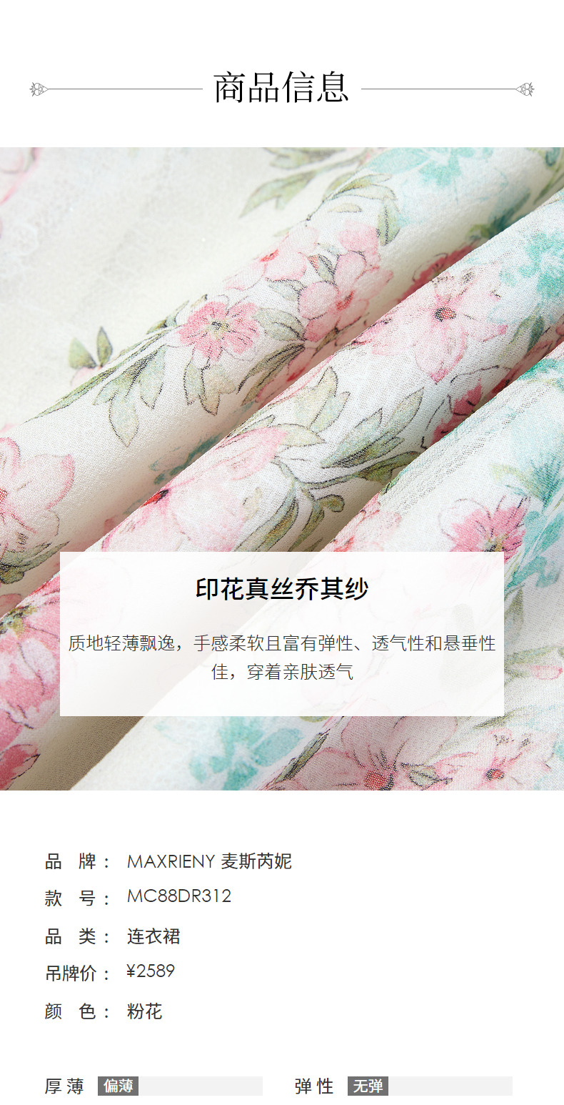 【商场同款】MAXRIENY恋恋桃花裙浪漫碎花裙桑蚕丝连衣裙茶歇裙(货号:MC88DR312)