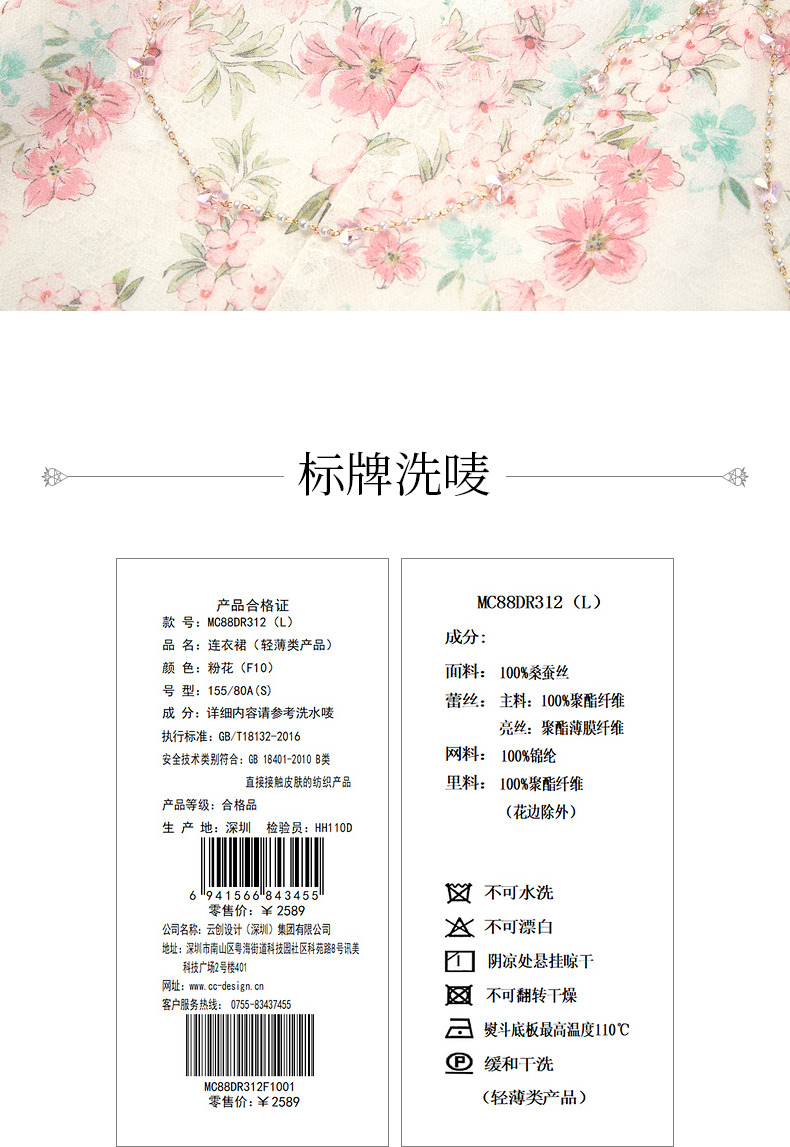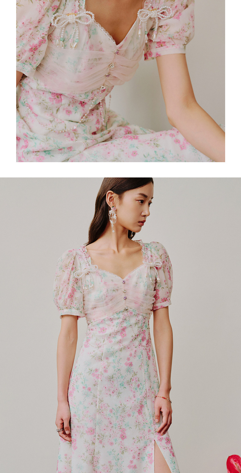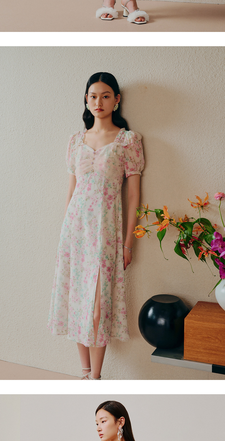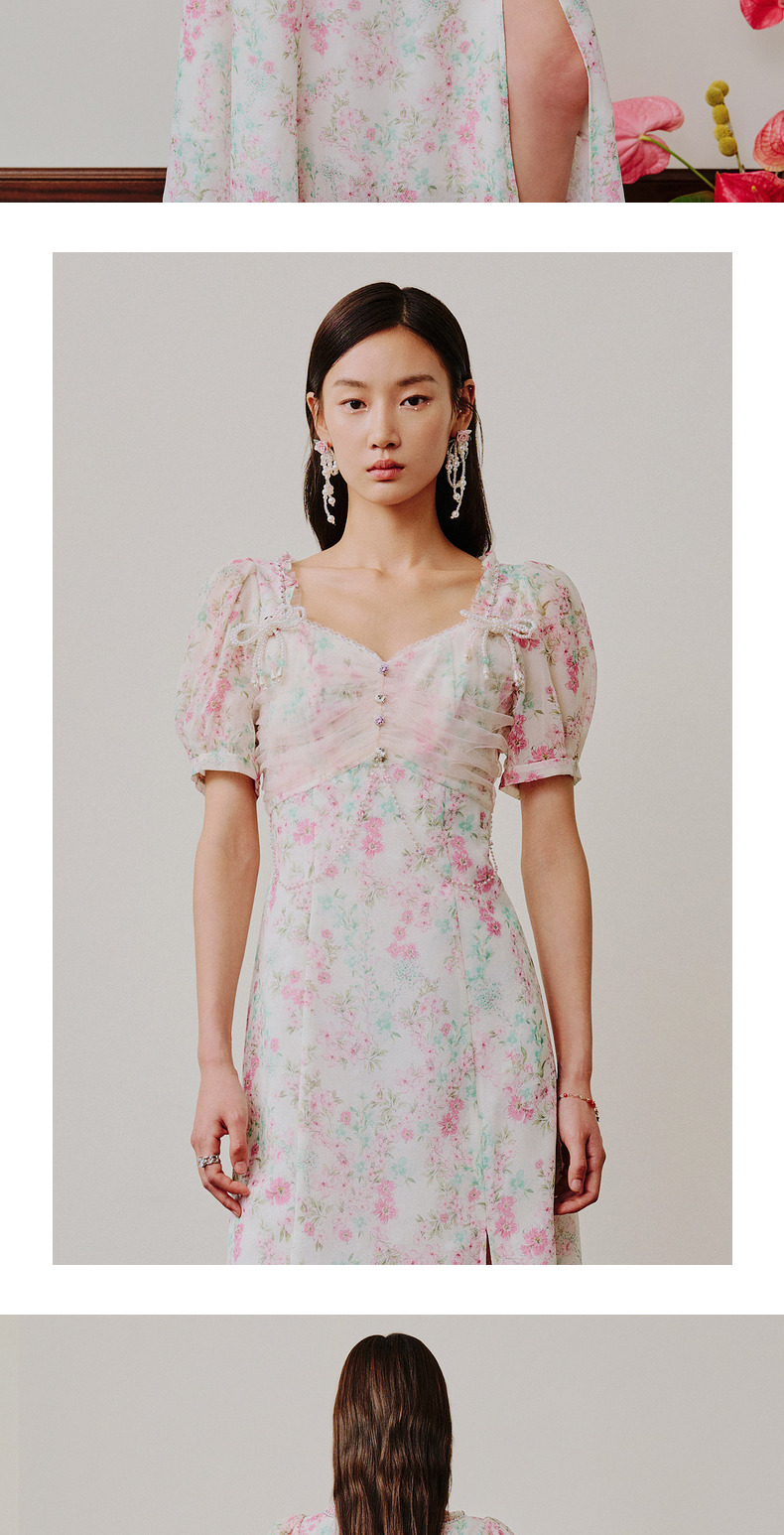 【商场同款】MAXRIENY恋恋桃花裙浪漫碎花裙桑蚕丝连衣裙茶歇裙(货号:MC88DR312)