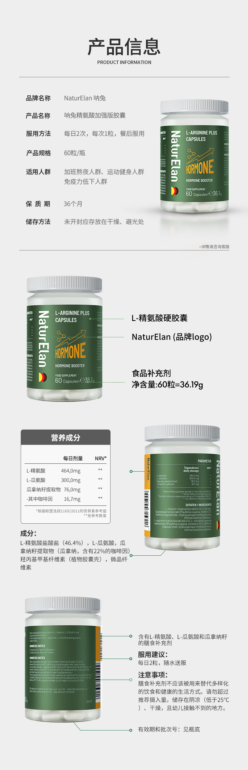 精氨酸 送维C泡腾片 | 心脑血管 提高专注度 提升运动机能 促进肌肉内蛋白质合成 改善耐力 NaturElan呐兔 60粒-yw
