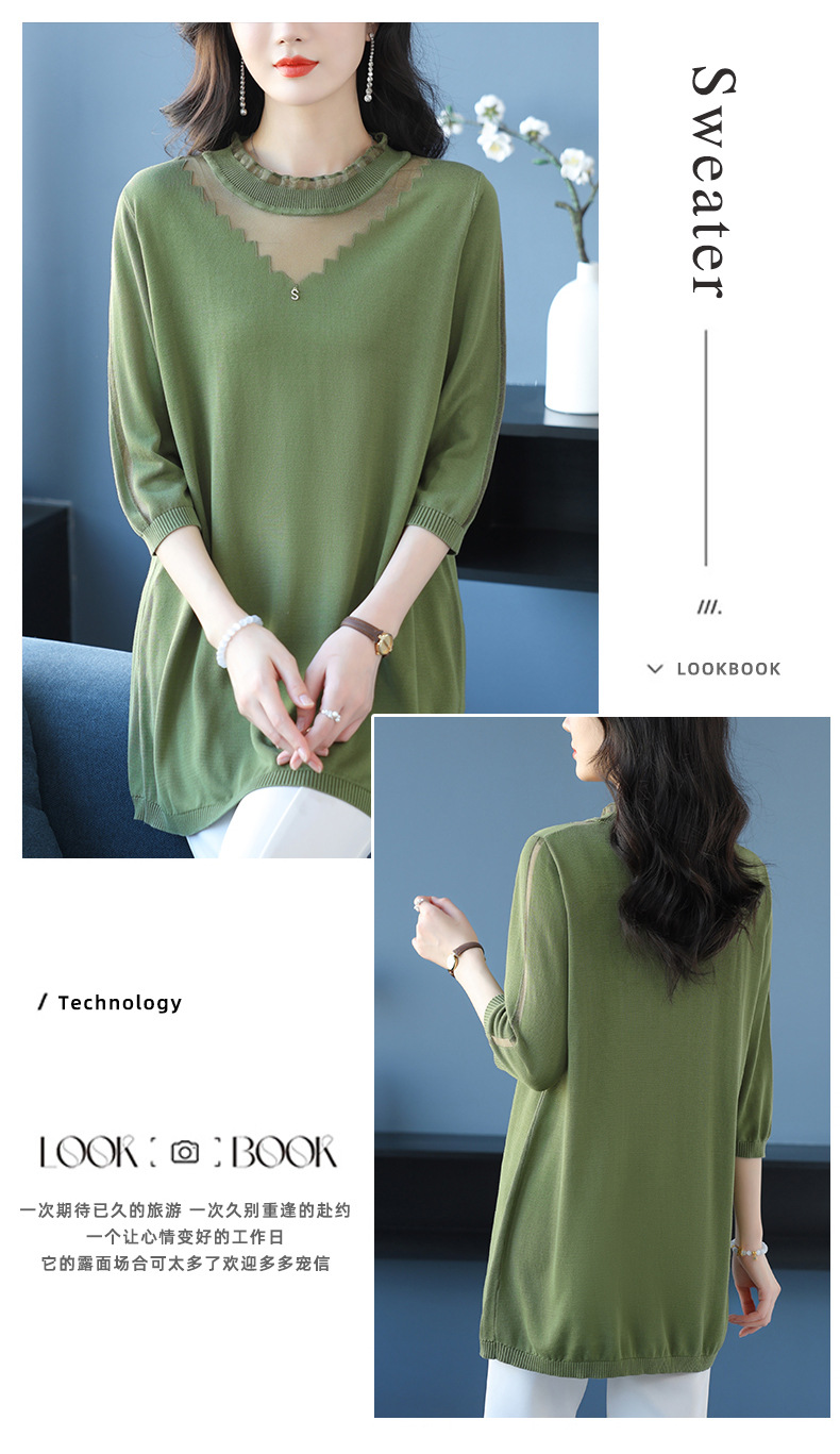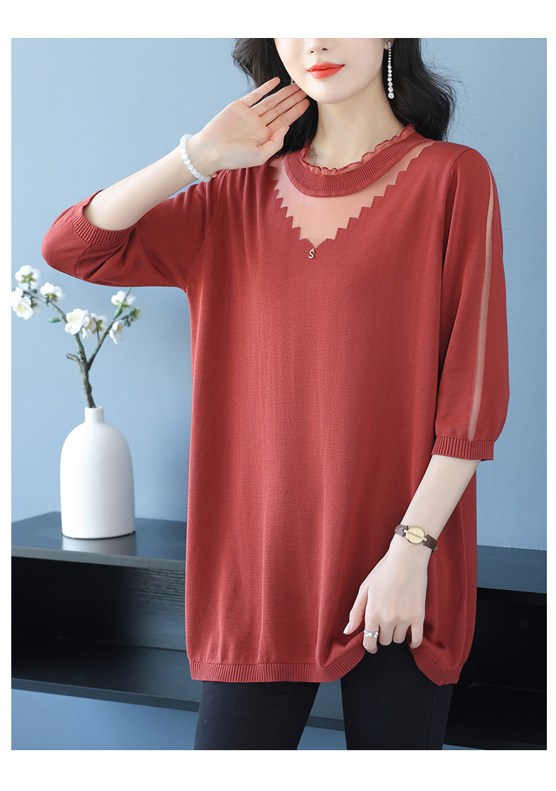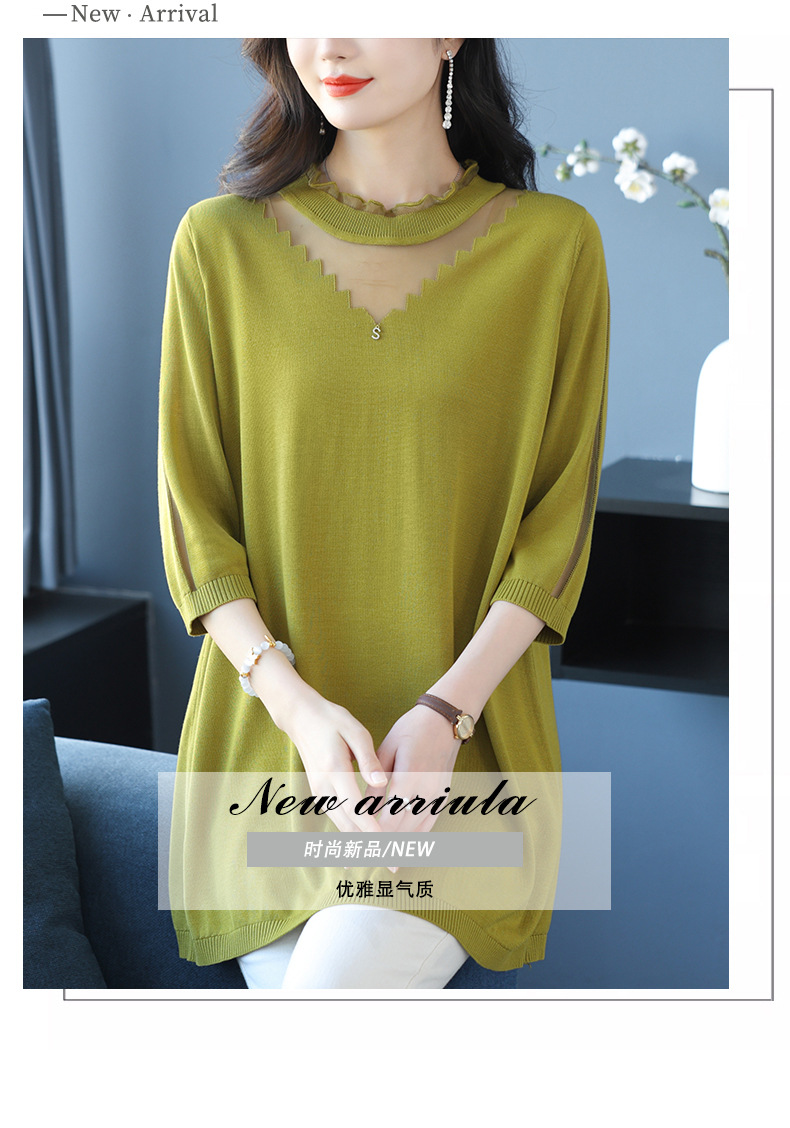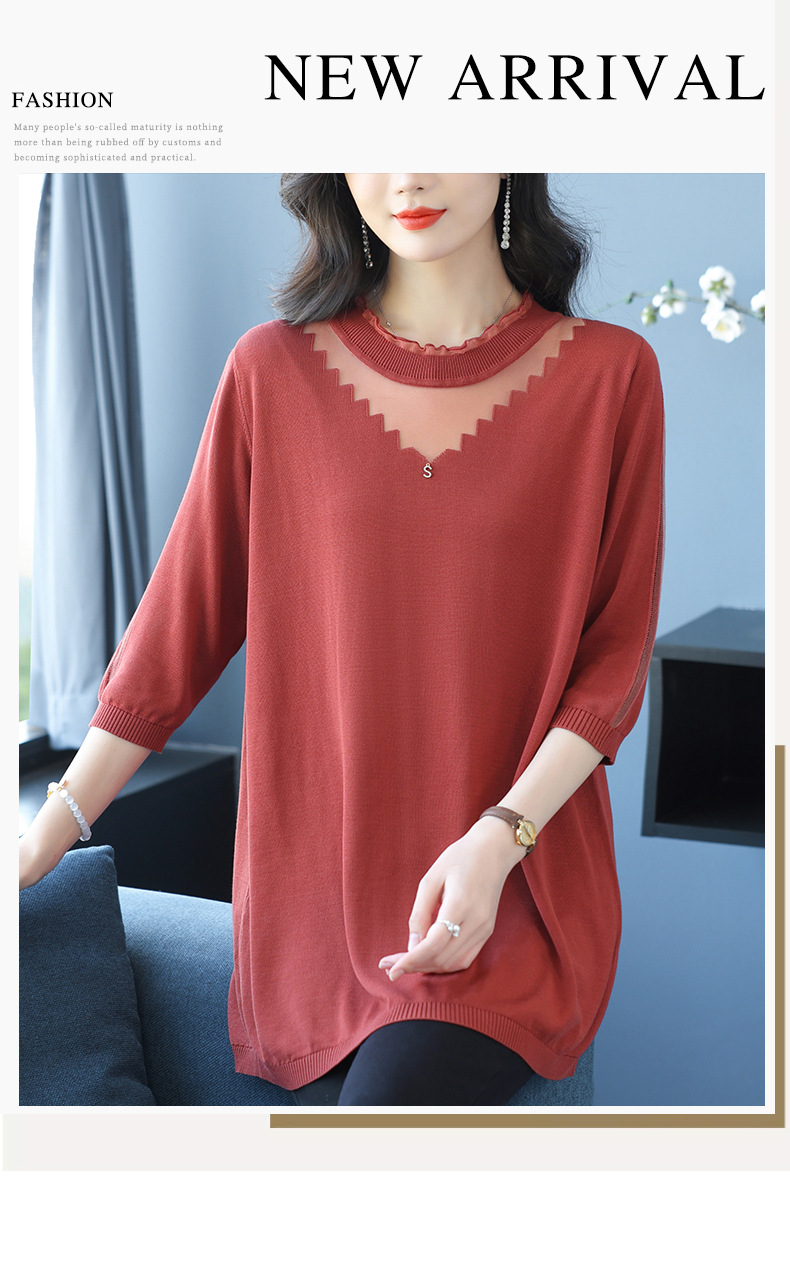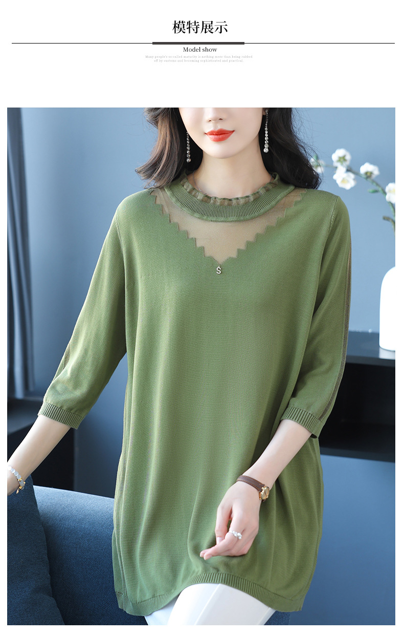 CC 19-6390大码中长款丝针织衫遮臀显瘦宽松时尚中袖薄上衣