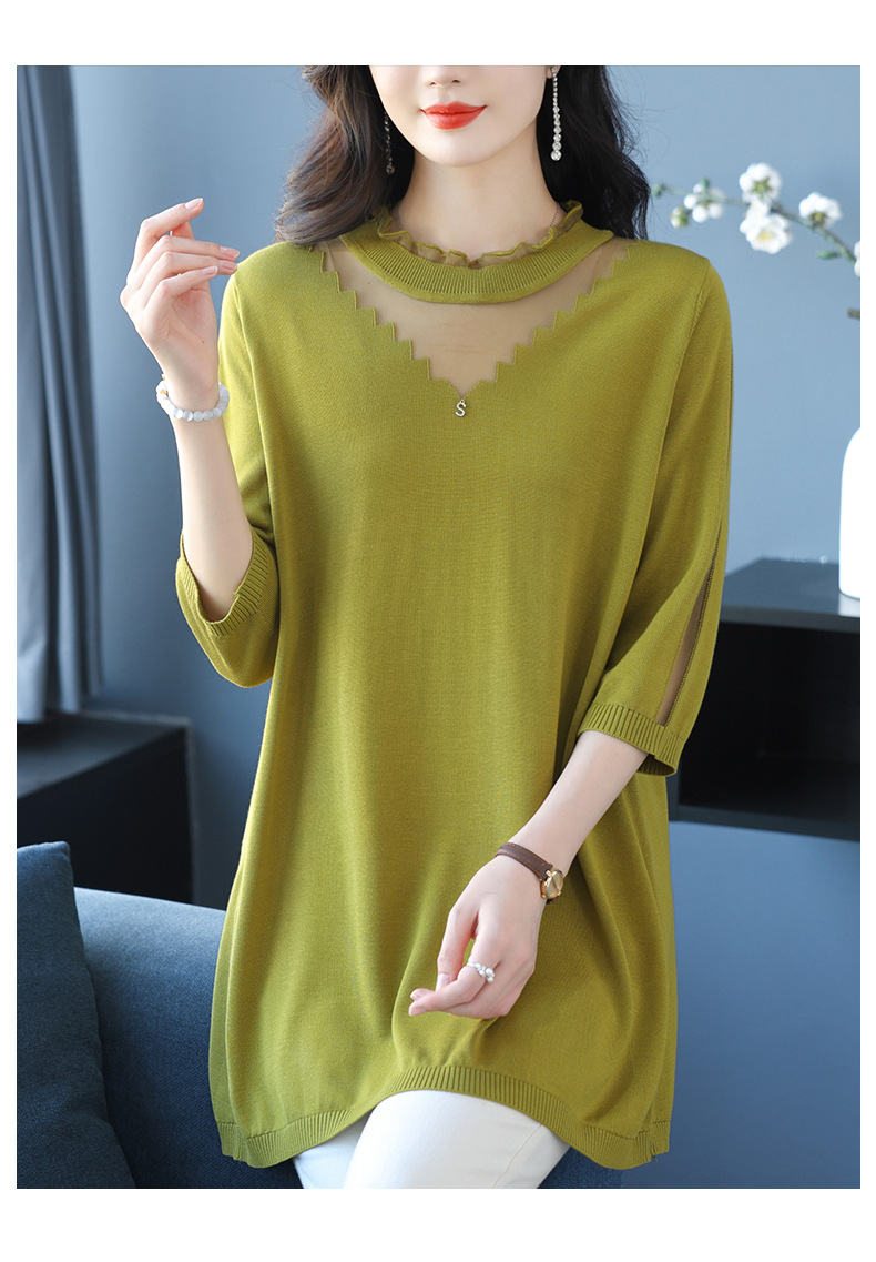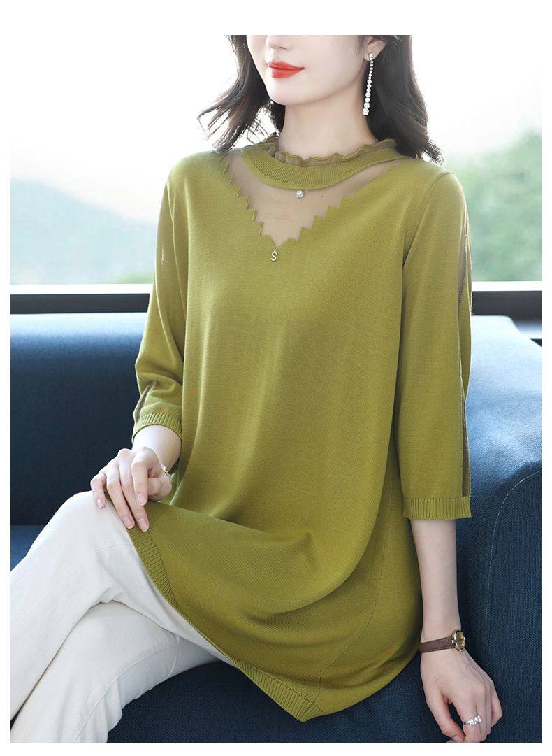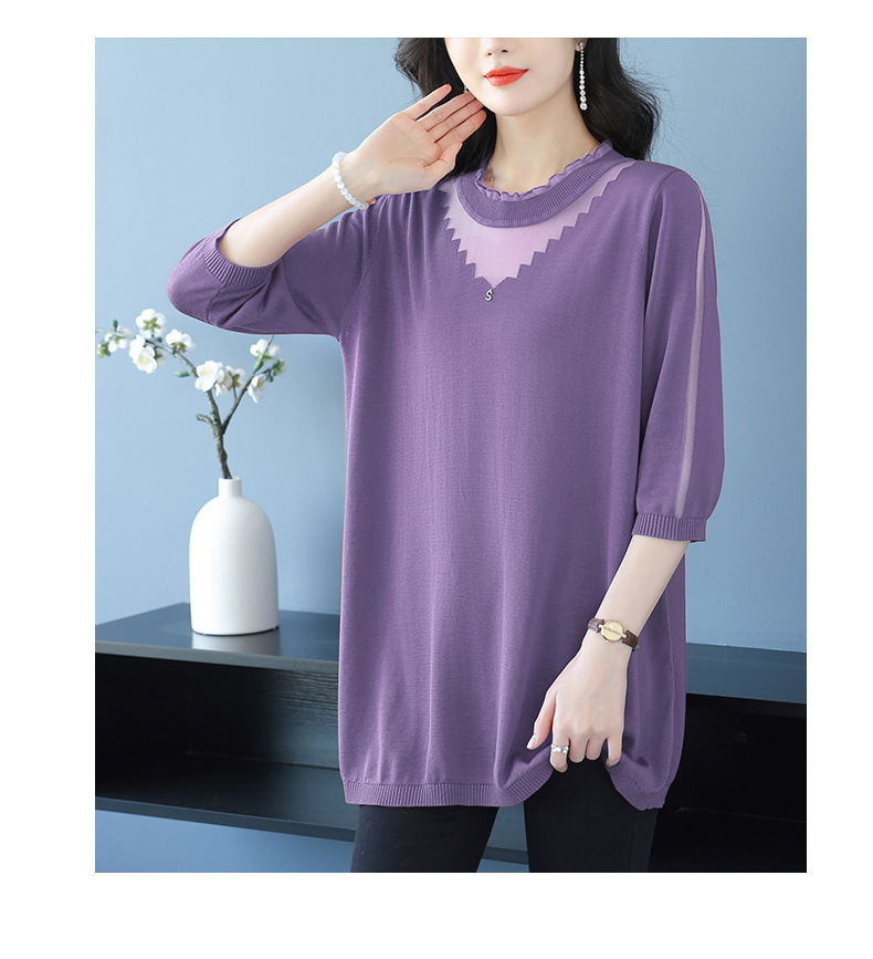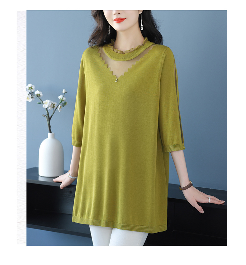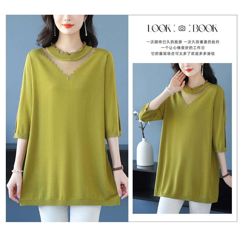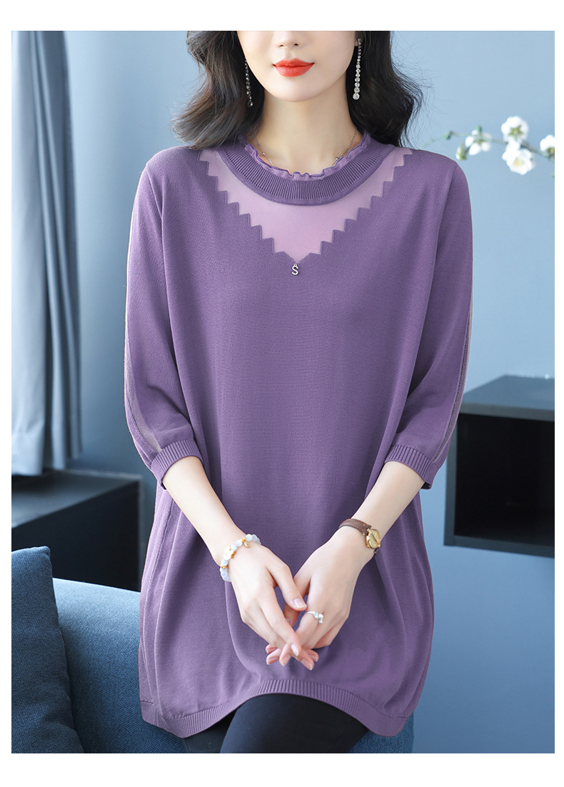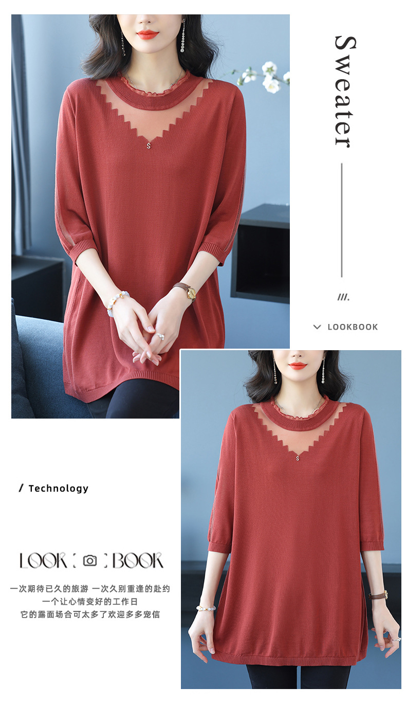 CC 19-6390大码中长款丝针织衫遮臀显瘦宽松时尚中袖薄上衣