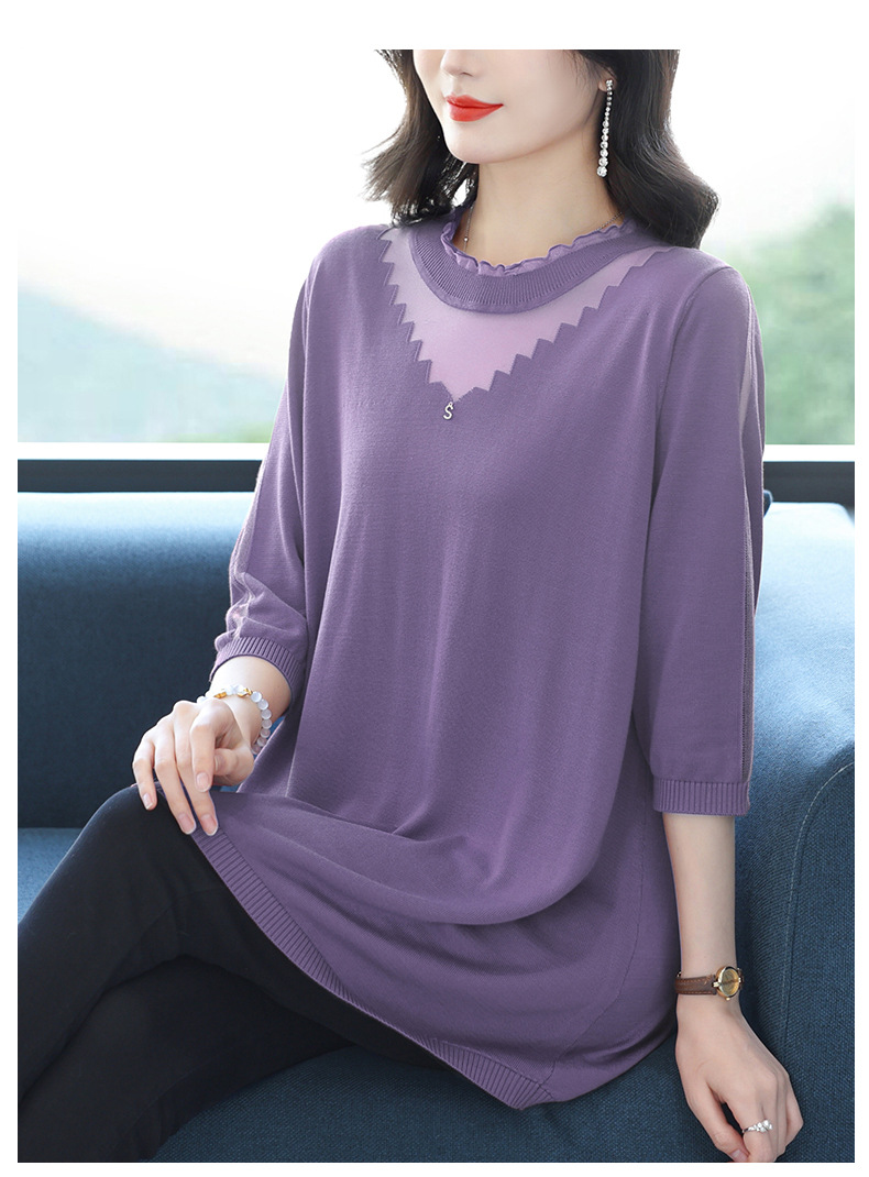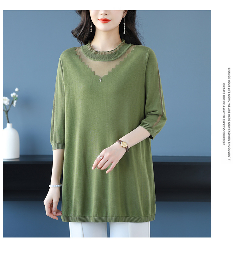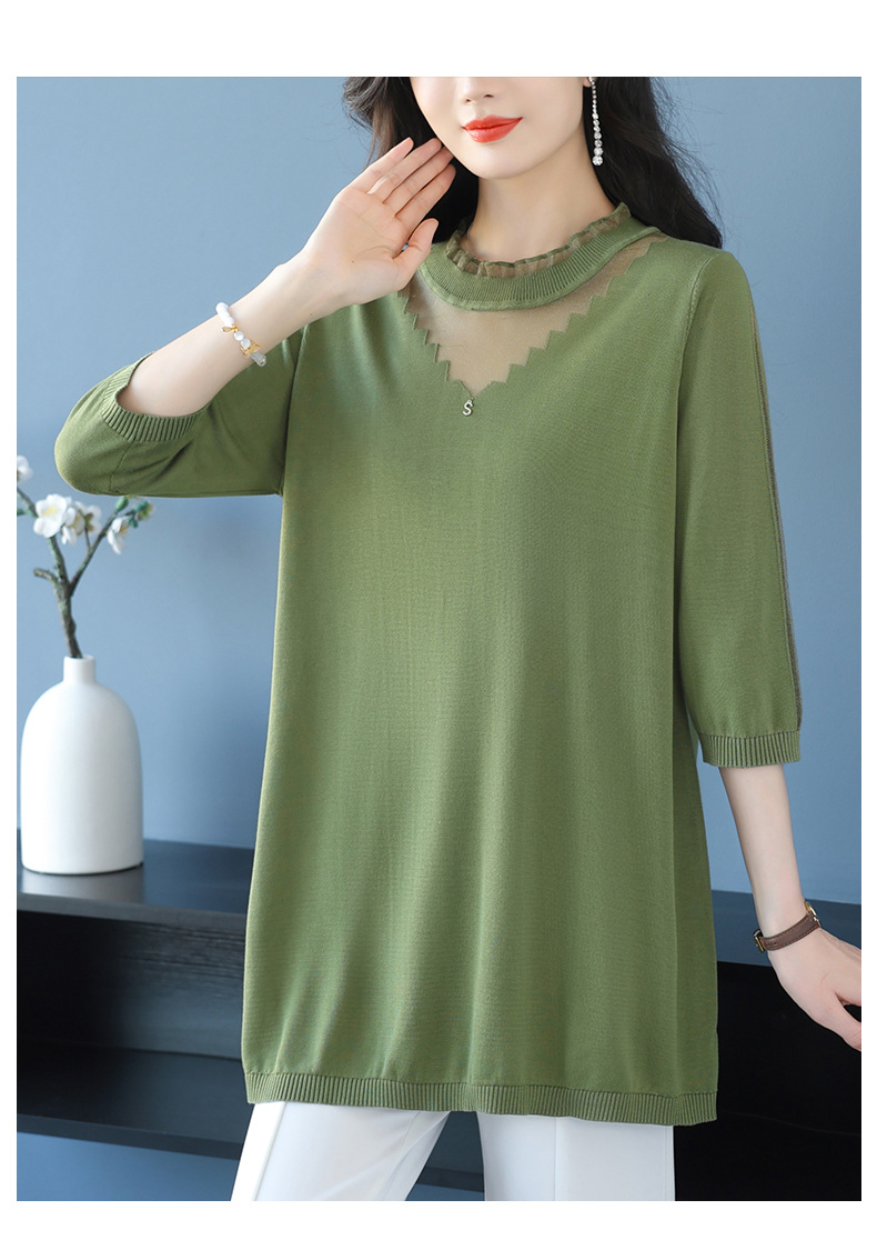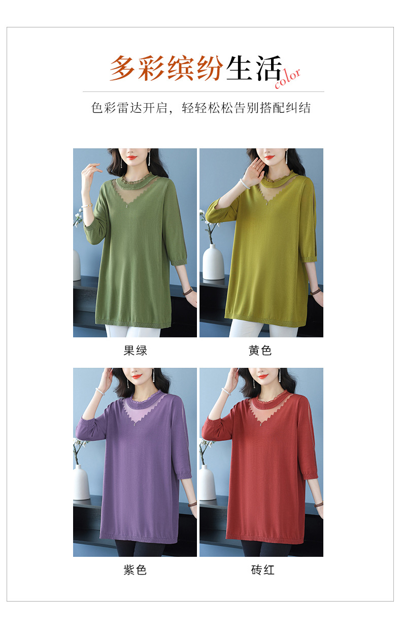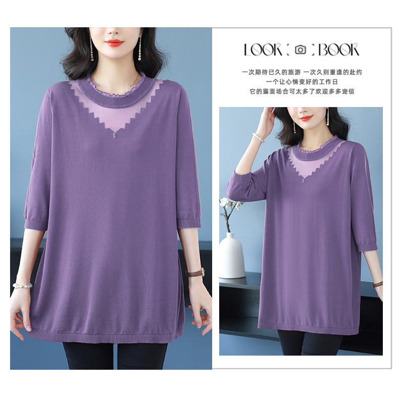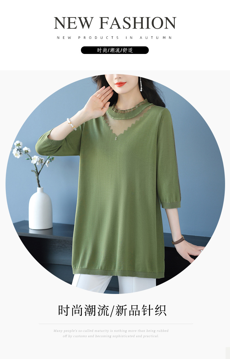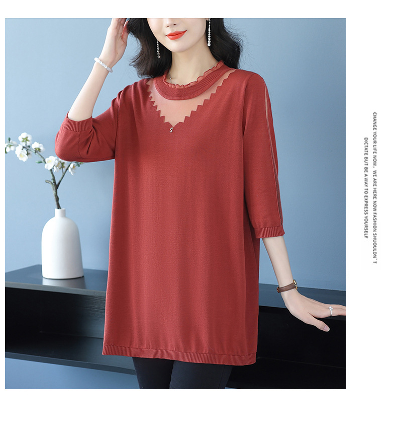CC 19-6390大码中长款丝针织衫遮臀显瘦宽松时尚中袖薄上衣