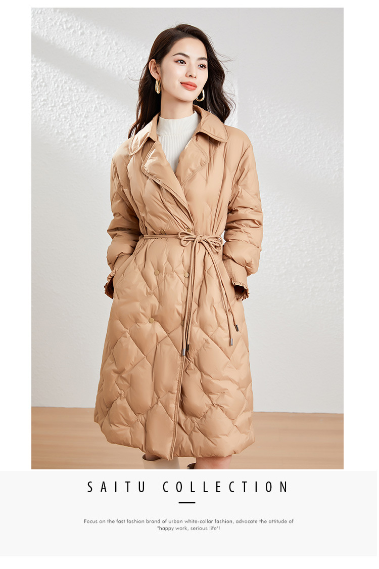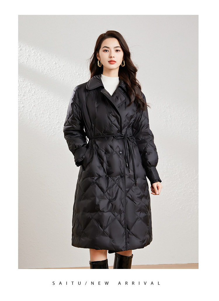 全新升级【铂金会员726/天猫989/差价263】(13845) 洛诗琳冬季新款时尚收腰过膝中长款防寒90白鸭绒羽绒股kbnq