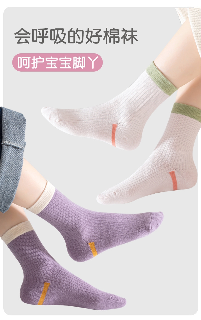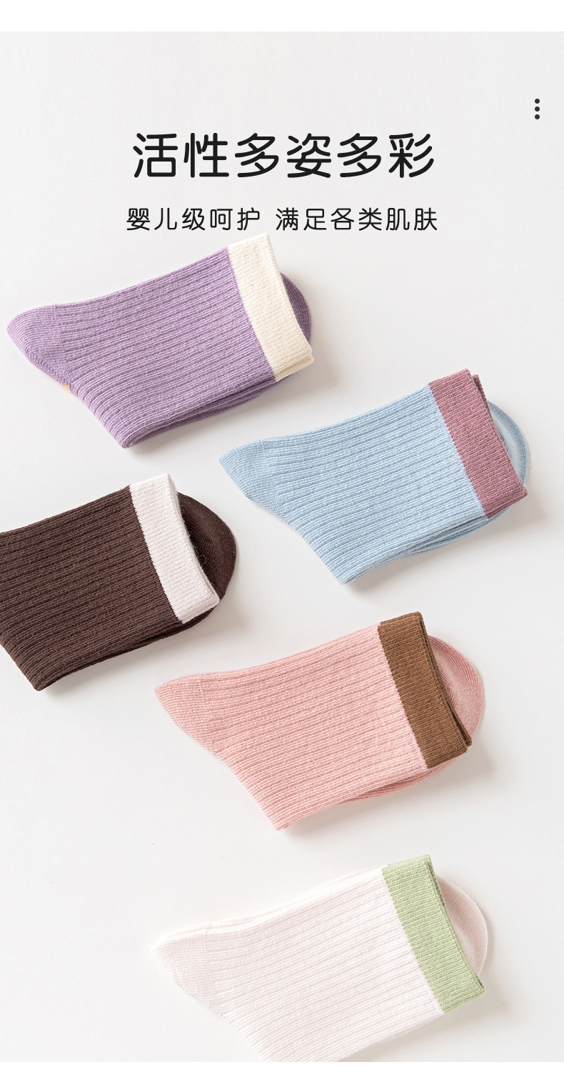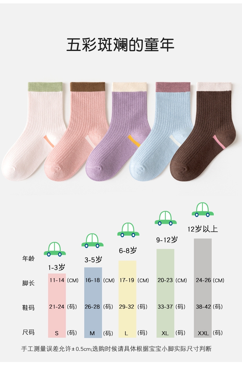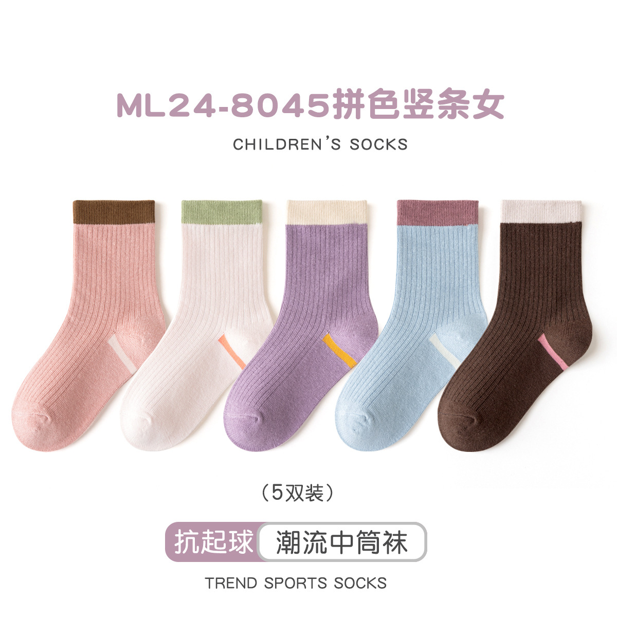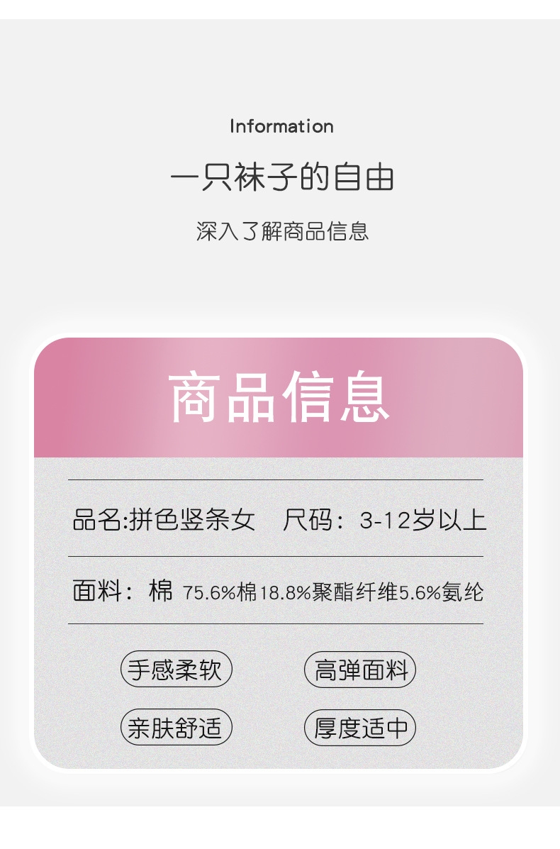 BRAND纯棉拼色竖条女童袜(5色各1)/5双(L码,适合29-32码)补单专用