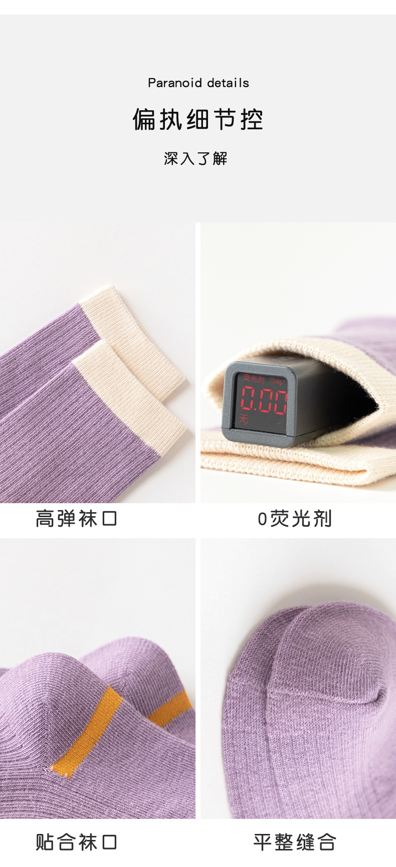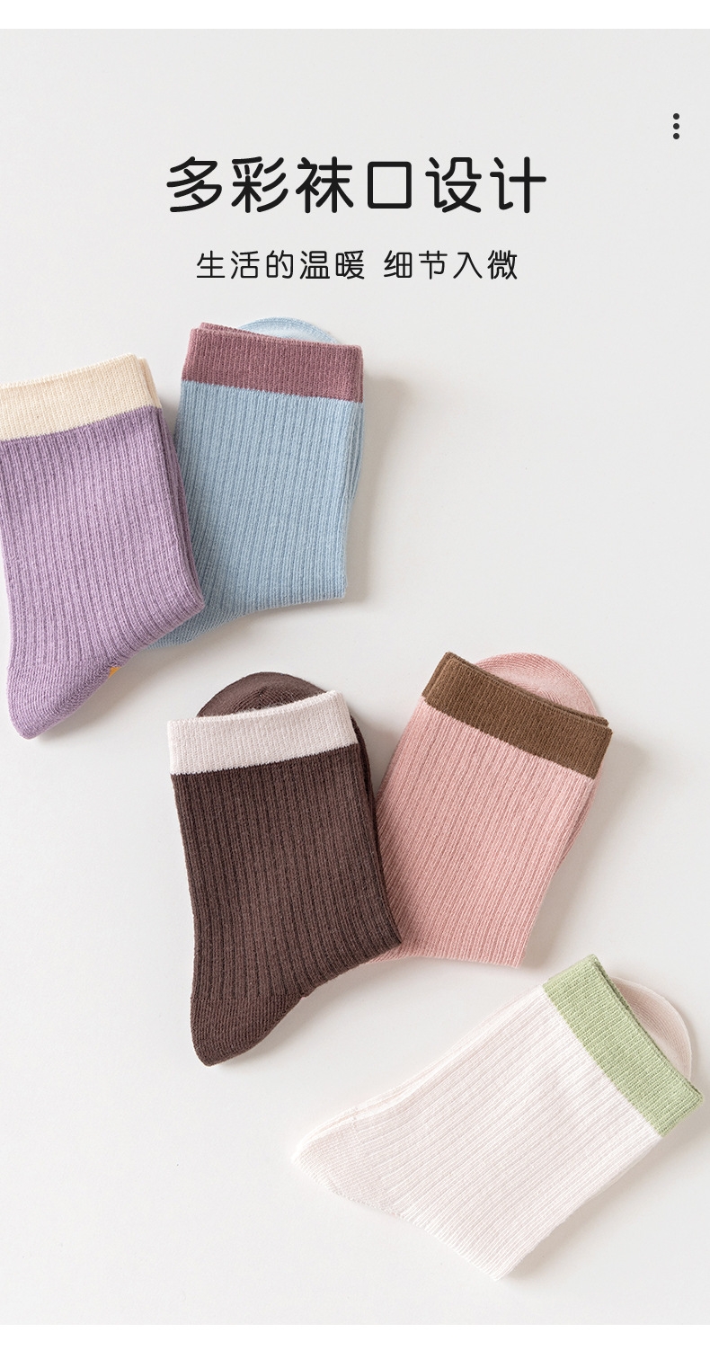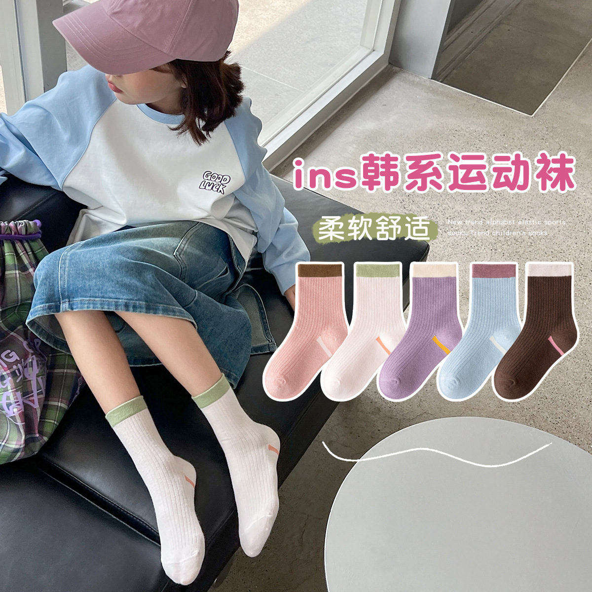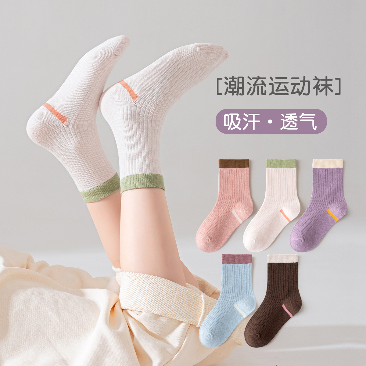 BRAND纯棉拼色竖条女童袜(5色各1)/5双(L码,适合29-32码)补单专用