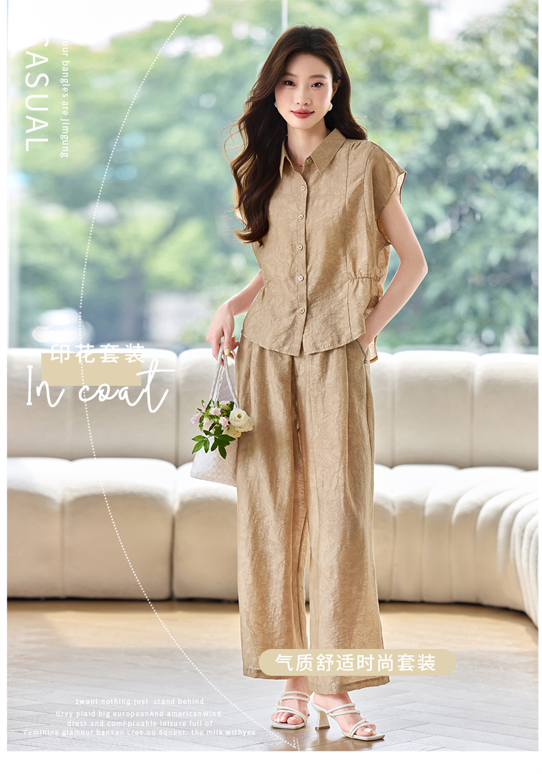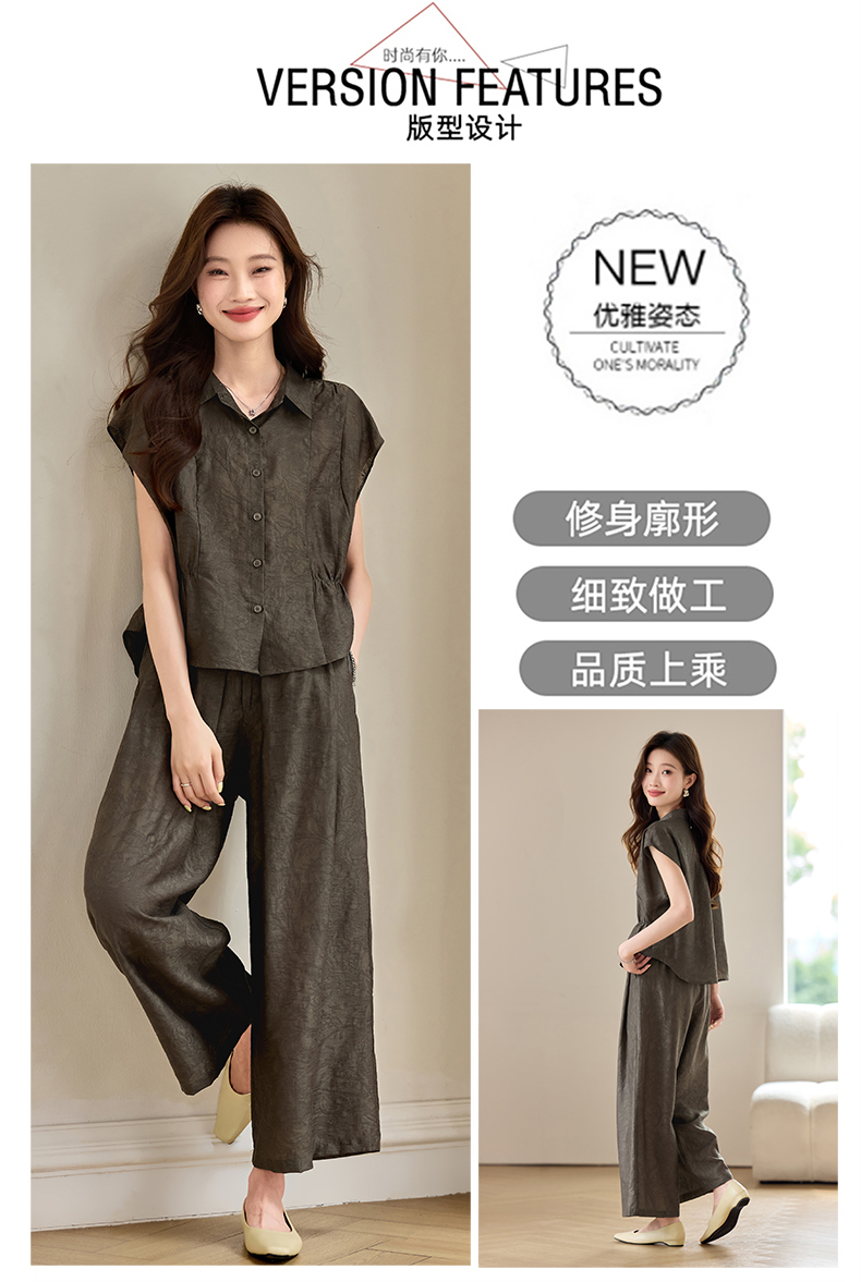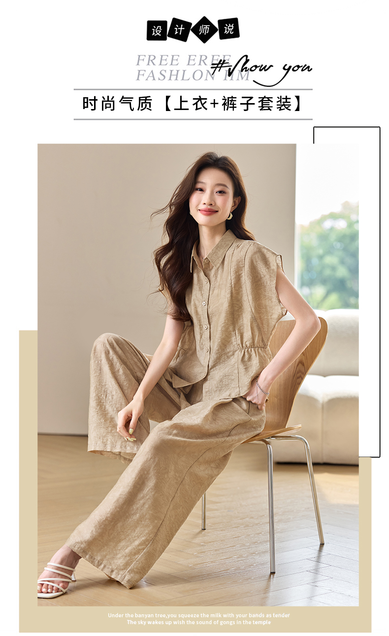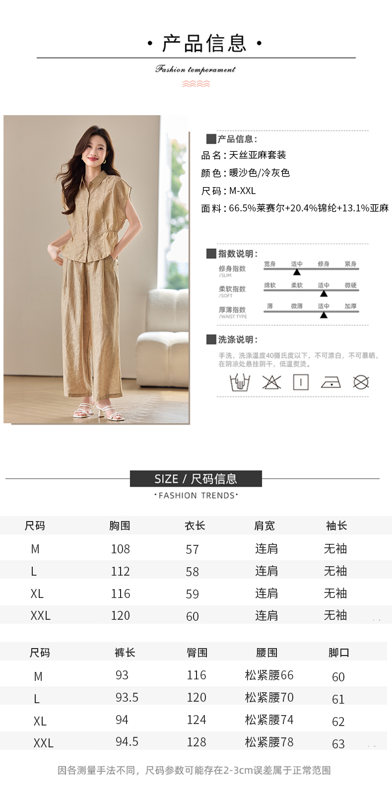 莱赛尔天丝亚麻套装,穿搭一整套40妈妈抗皱两件套HR-XXG608
