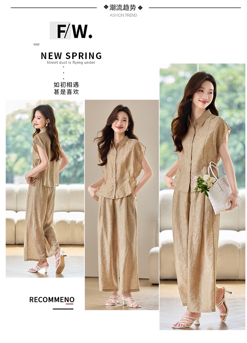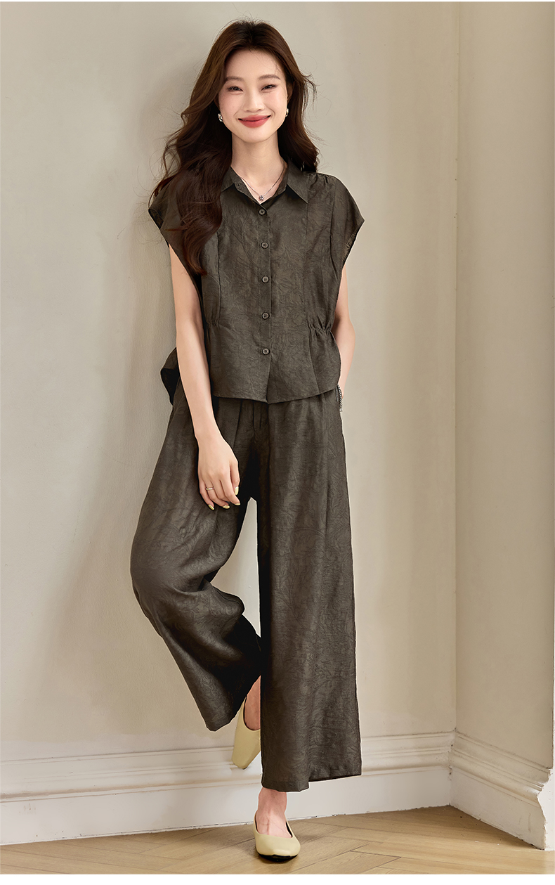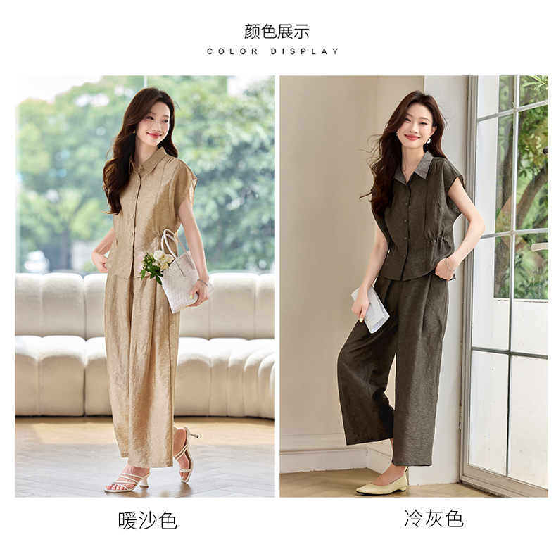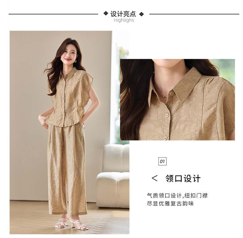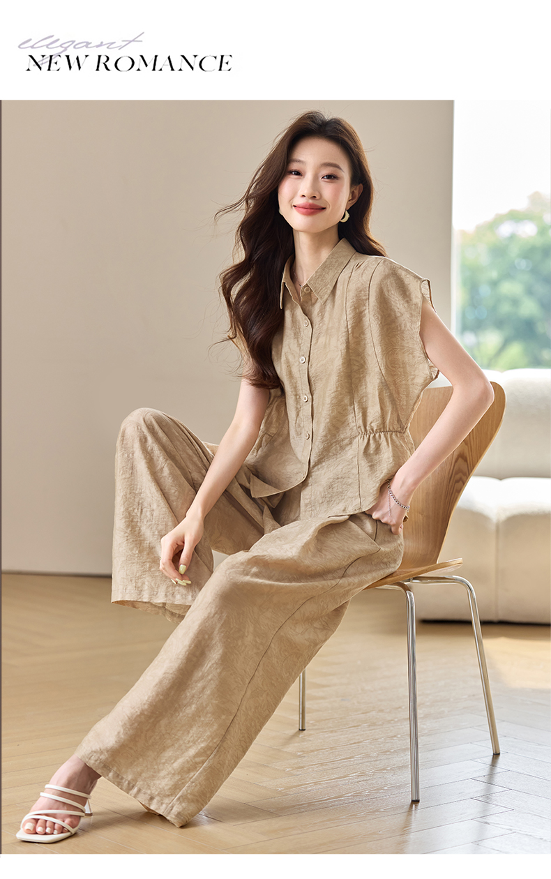 莱赛尔天丝亚麻套装,穿搭一整套40妈妈抗皱两件套HR-XXG608