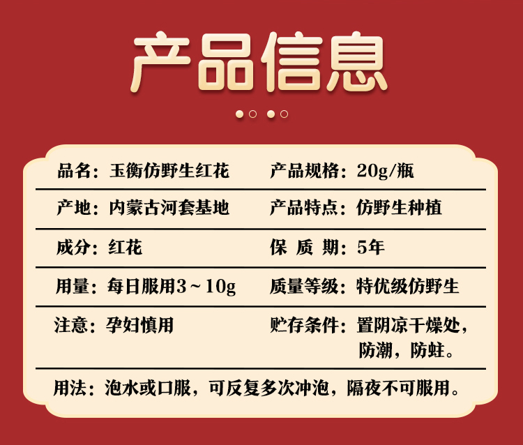 玉衡仿野生红花 女士养生佳品 内蒙古道地产区 20g/120g瓶装