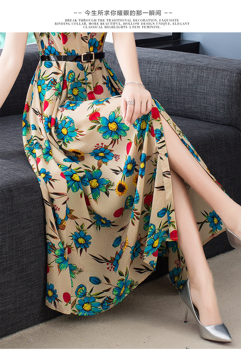 HT-06090301夏季新款无袖开叉欧美气质大摆长裙