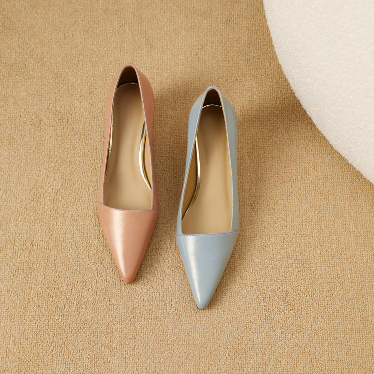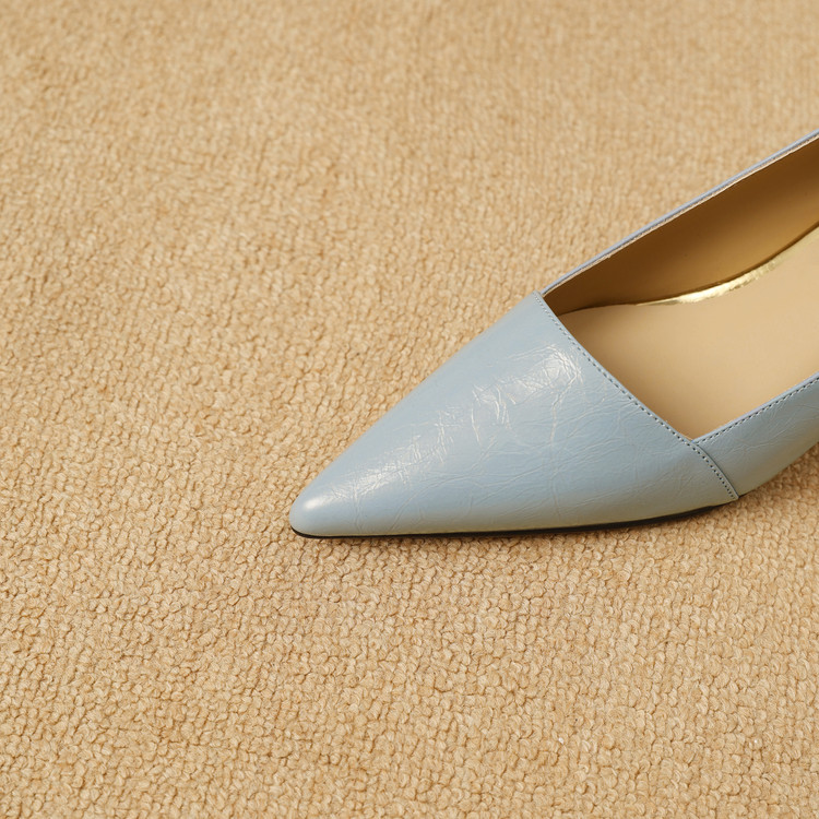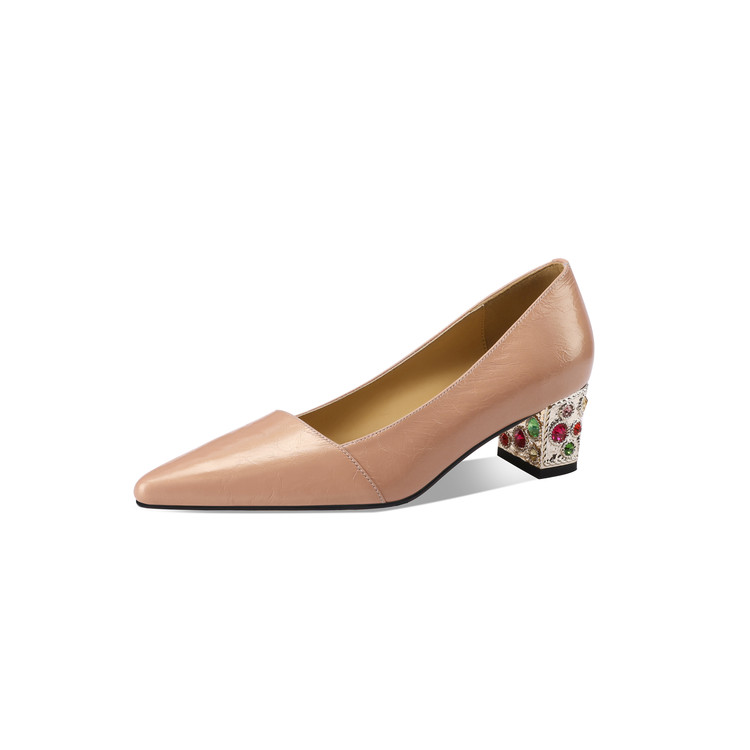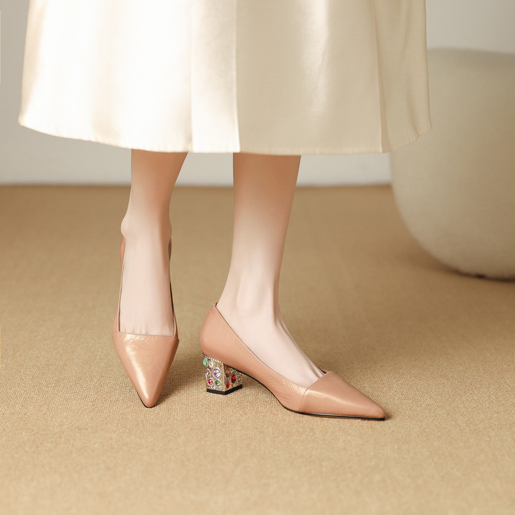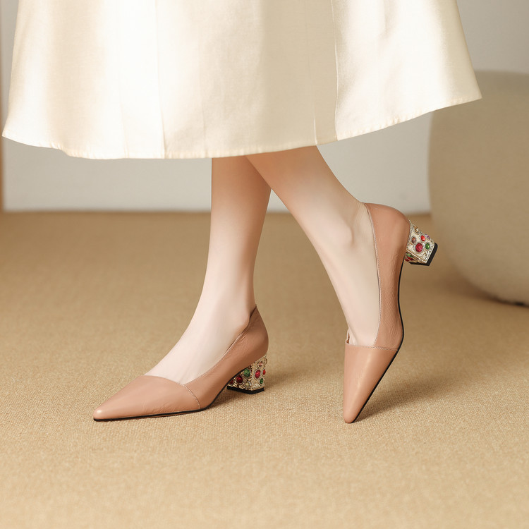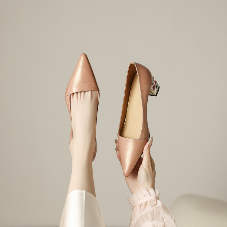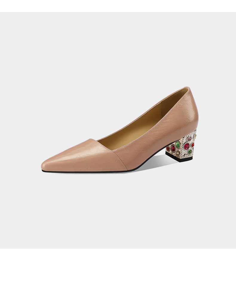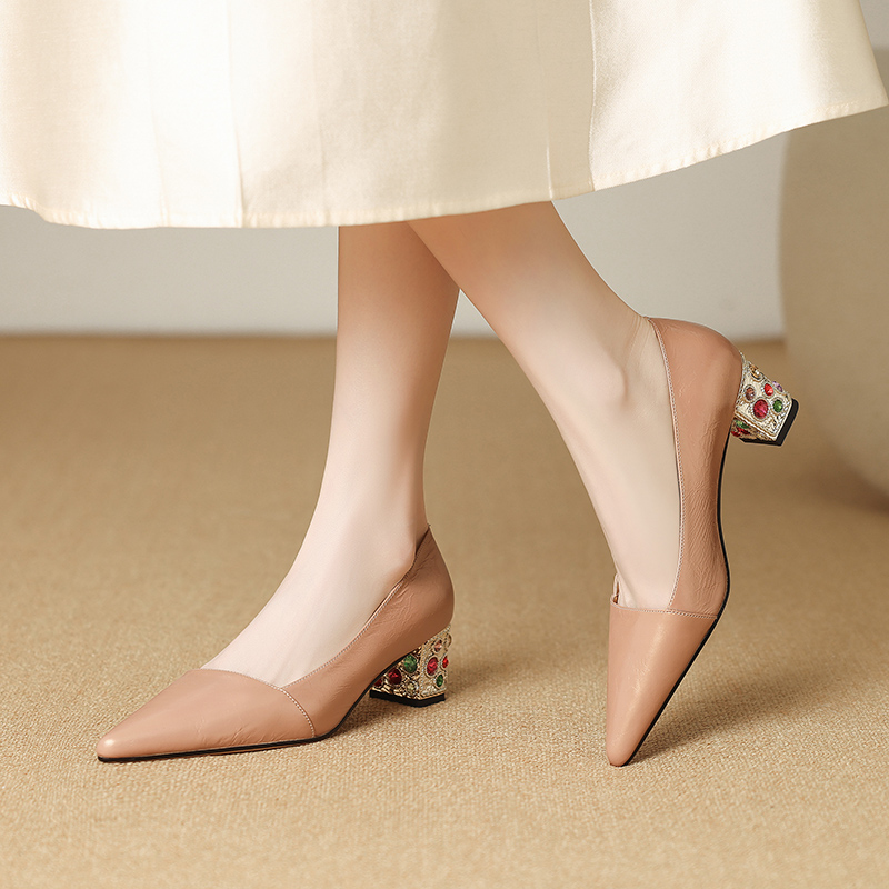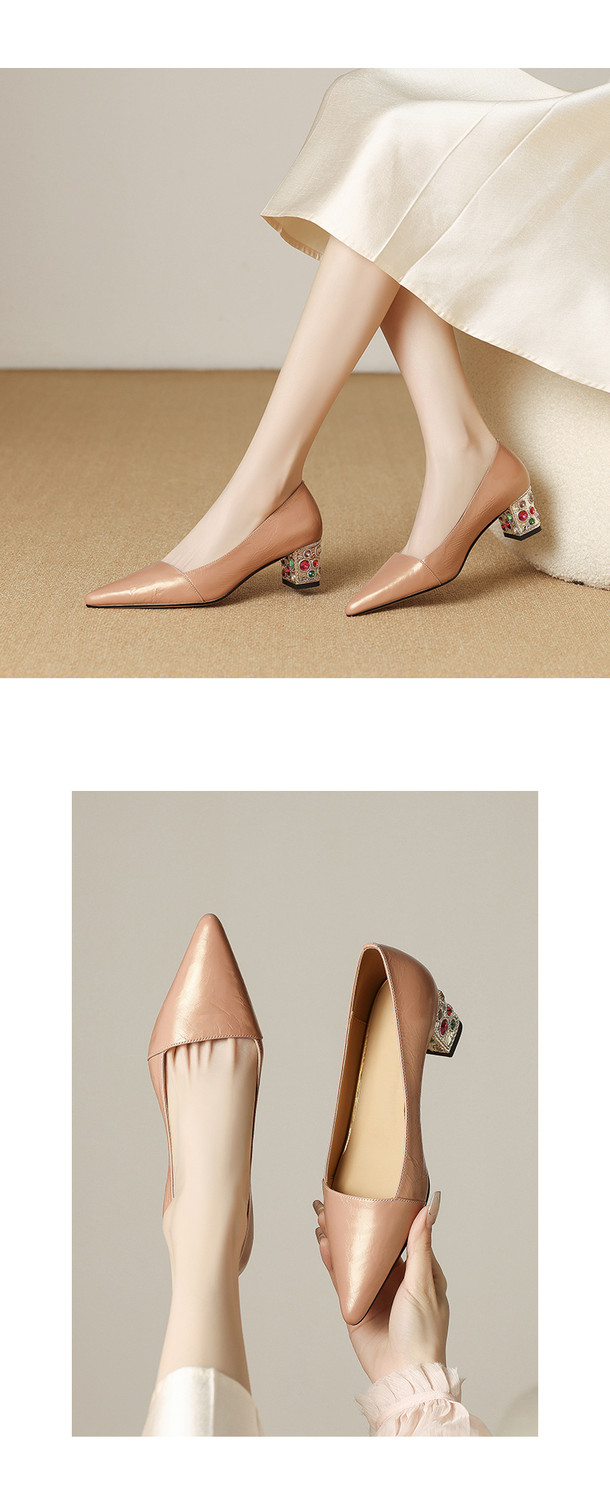 【预售5天】法式复古风粗跟单鞋真皮蓝色尖头水钻高跟鞋春夏时尚中跟单鞋MLS&A1021