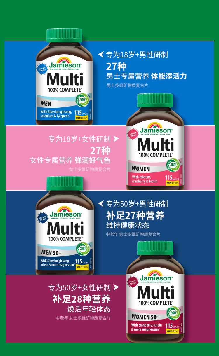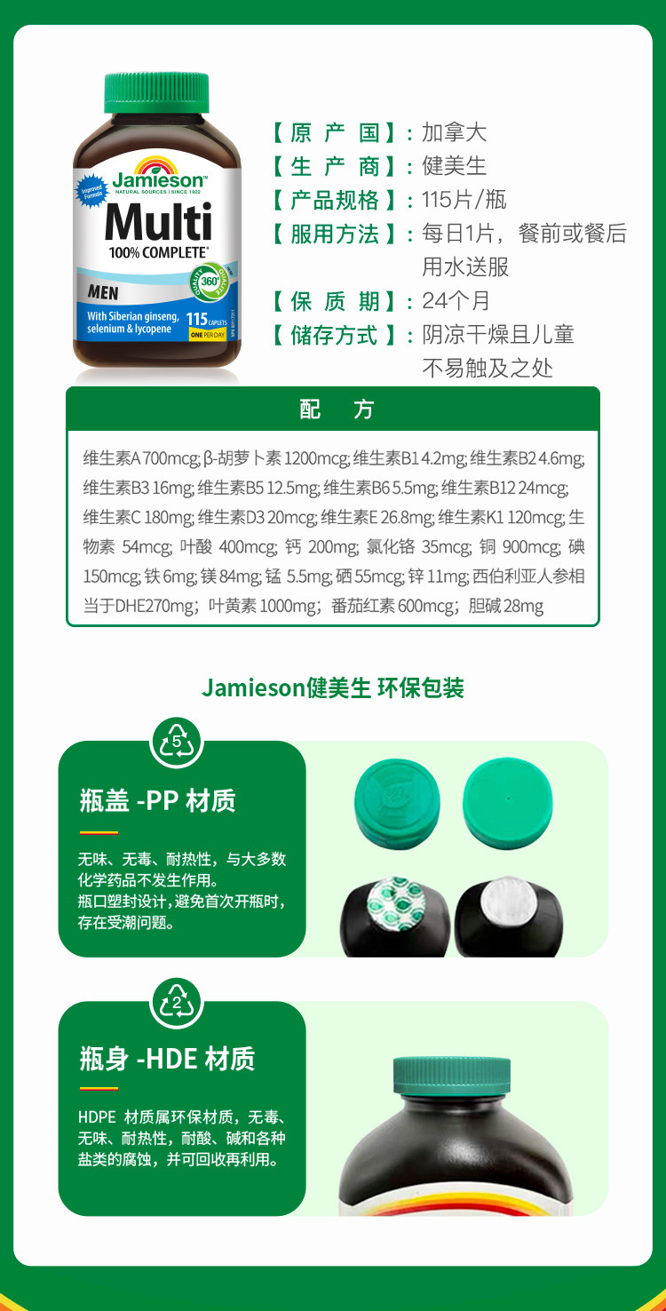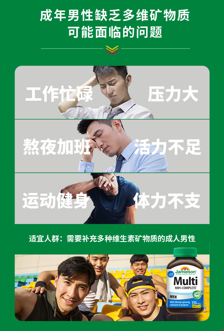 【保税直邮 义乌海关】高含量男士复合维生素含人参提取物提高元气活力全面支持健康