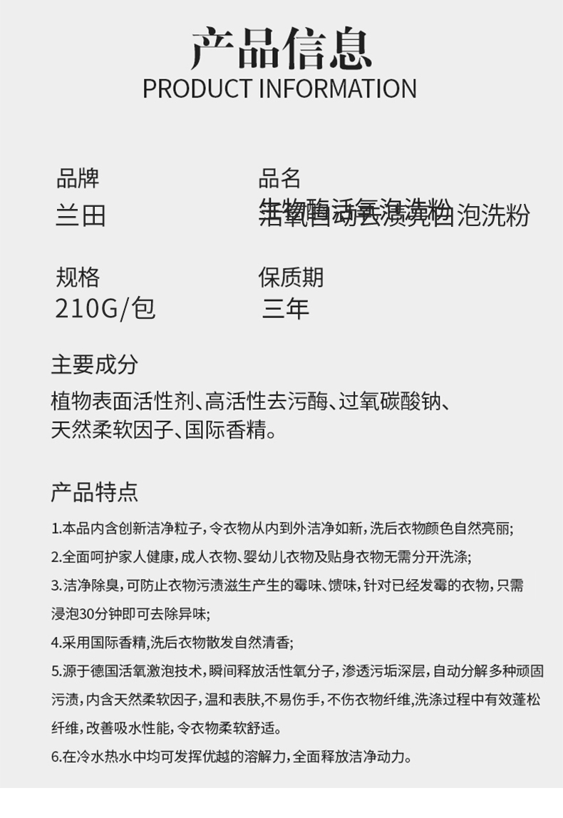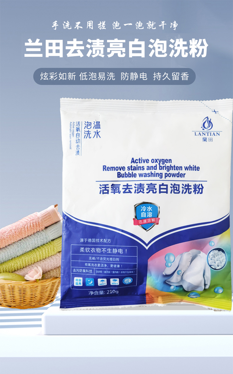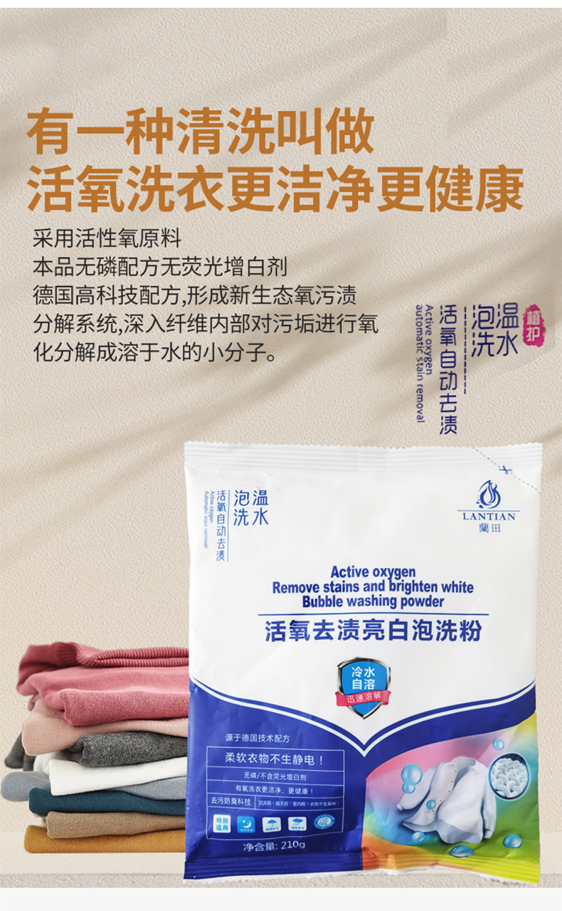 【清洁利器炫彩如新】兰田活氧自动去渍亮白泡洗粉冷水自溶低泡易洗不怕混色温和中