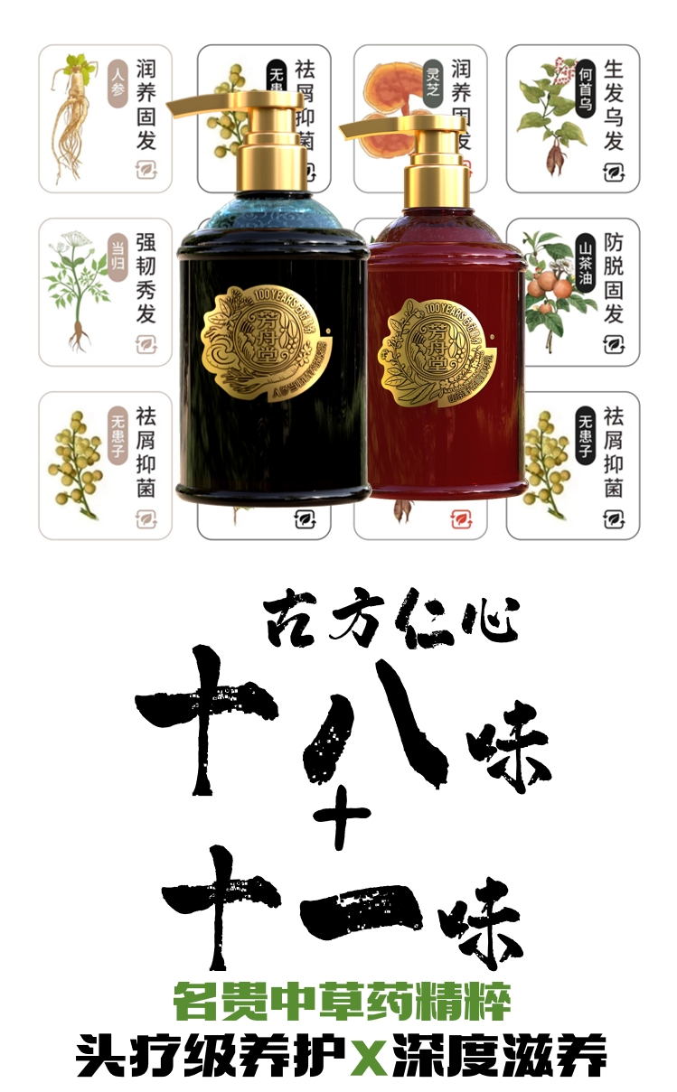 芳舟堂 人参当归精养洗发露(头疗级)古法精养高定纯中草药洗发,洗护套装 古方精养礼盒