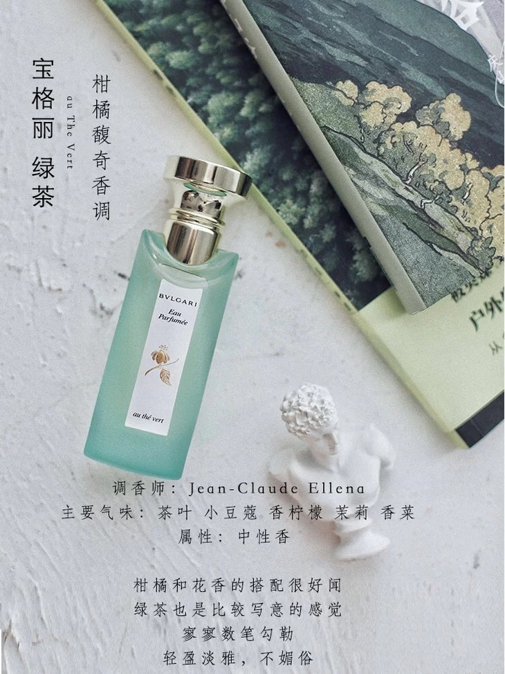 👑Bvlgari经典绿茶香水75ml 👍绿茶是宝格丽家的第1款香水,经典款小清新㊙️。 🍊以清新的柑橘为始,以沉稳的木质香为终🍂。 💐像沉浸在宁静清爽的森林里🌳,有种茶香逐渐被包围🍃,舌头上有微微的干涩感 😙整体低调内敛,淡淡茶香,接受度比较高的一款茶香💯。
