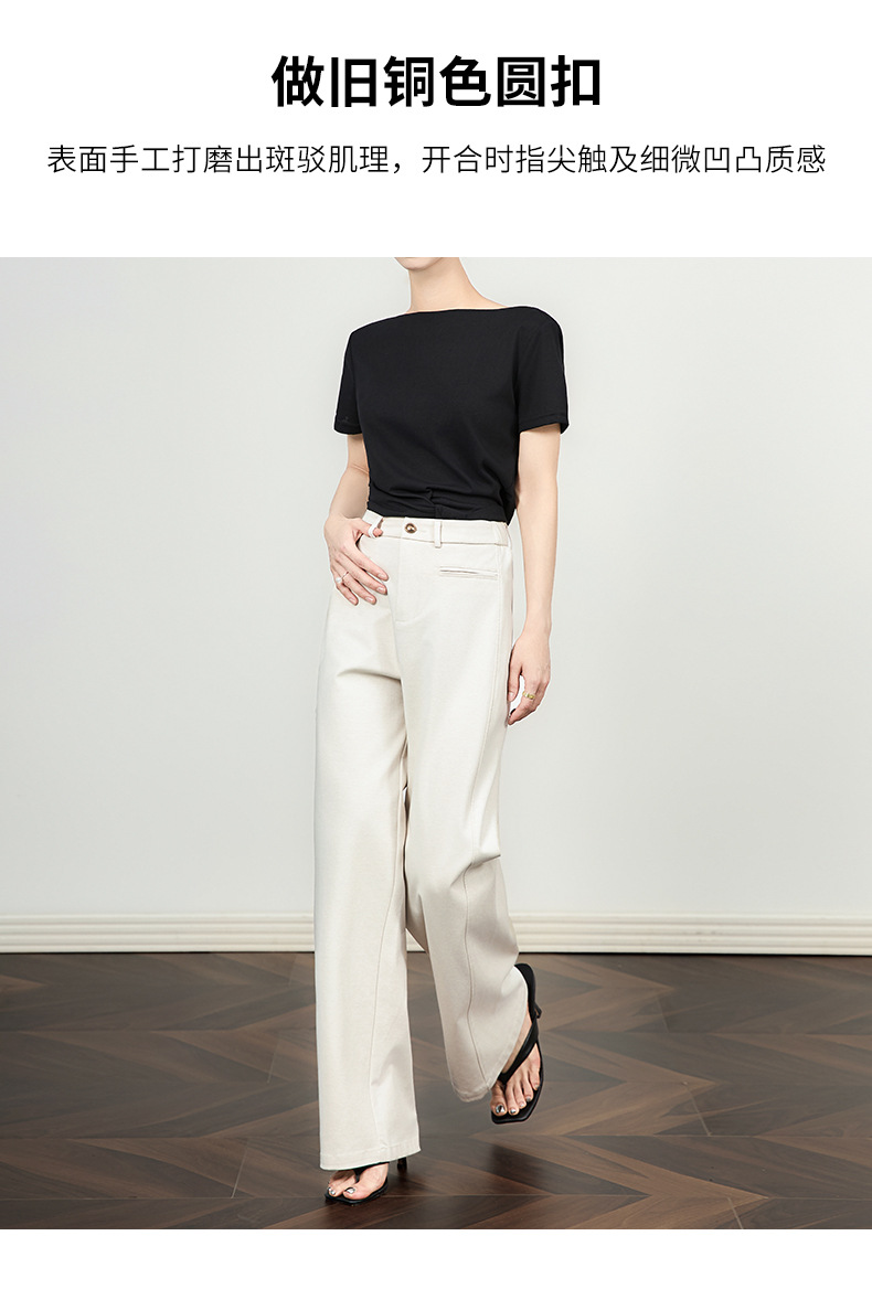 「高货wl」全新升级【铂金会员238/天猫319/差价81】(13055)洛诗琳老钱风极简通勤长裤2025夏季窄版休闲直筒阔腿裤女