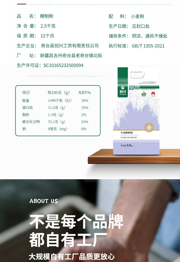 创兴·新疆奇台精制粉·2.5kg 绿色食品认证 中筋通用 品质有保障